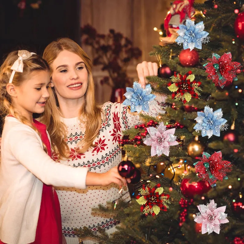 5pcs 14cm Christmas Flowers: Glitter Artifical Ornaments For Xmas Tree Decoration Navidad New Year Deco 14cm(5.51in) red Flower