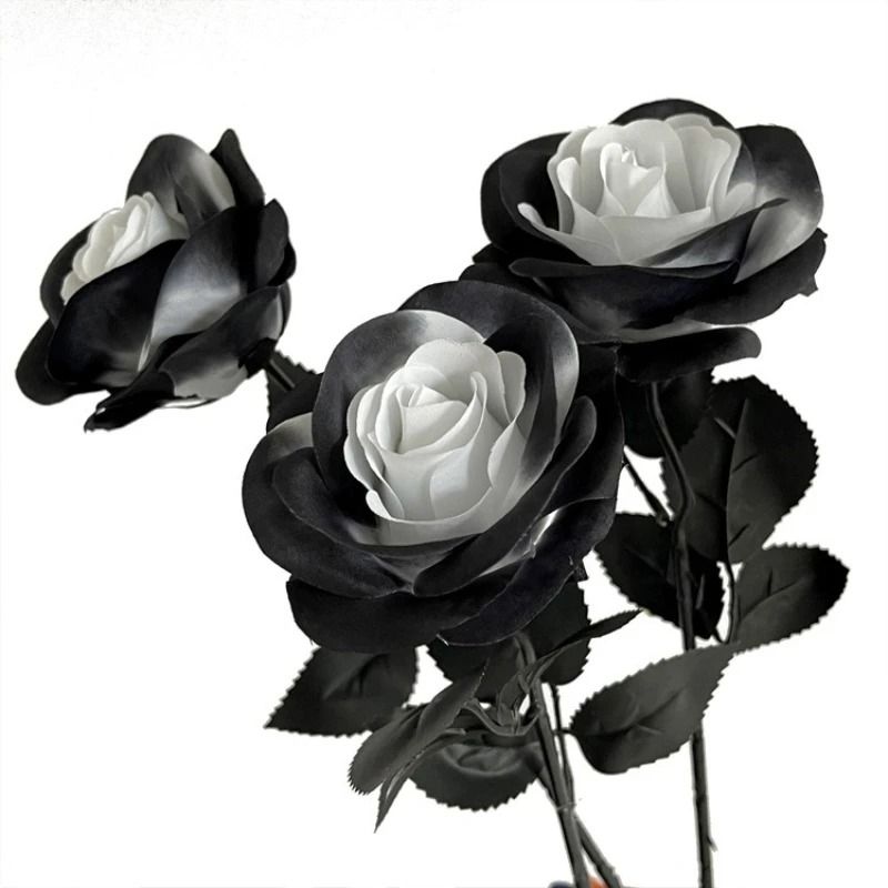 12 Piece Black Red White Artificial Silk Rose Branch Set Long Stem Decorative Flowers dark Red