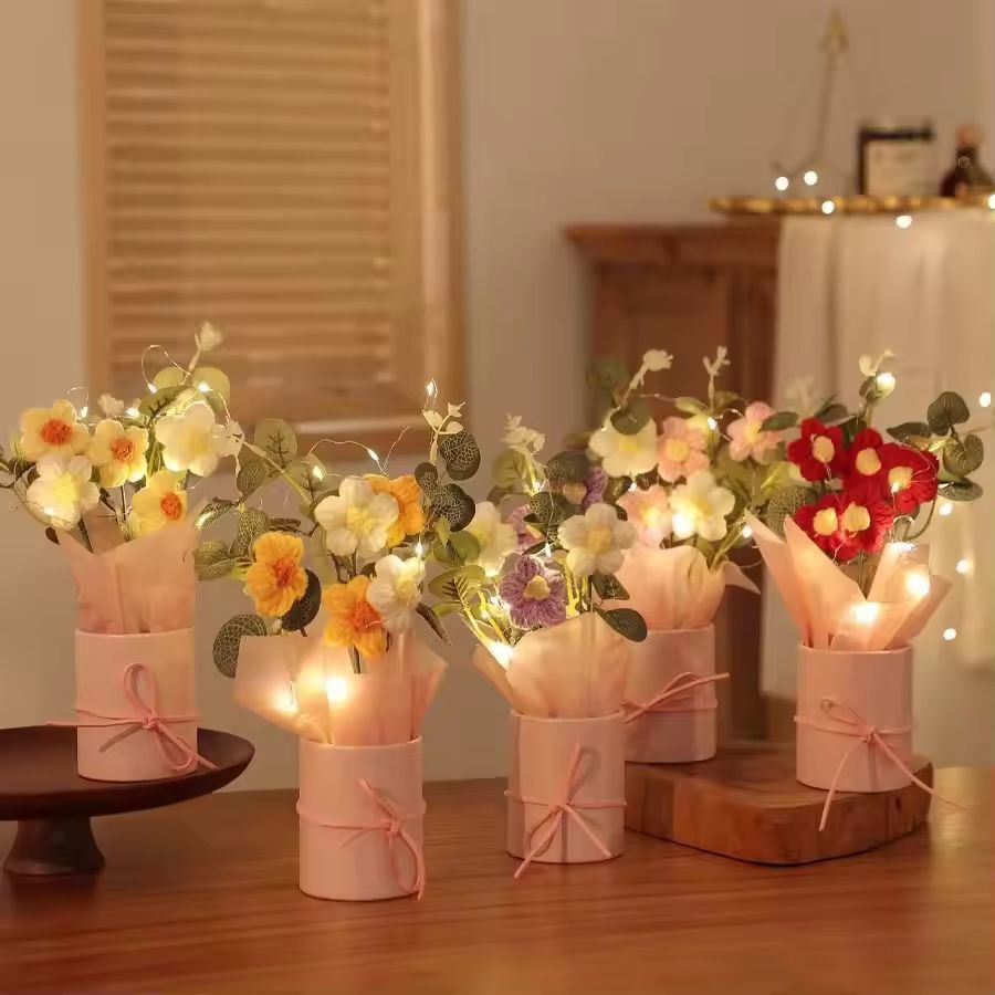 Handmade Crochet Flower Bouquet Everlasting Artificial Yarn Flowers For Home Decor & Gifts pink
