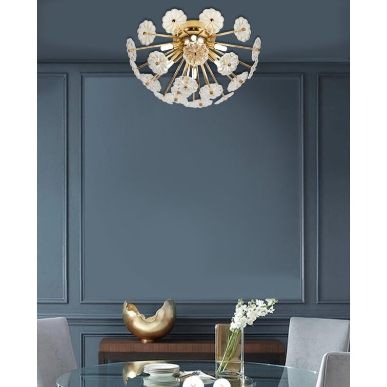 Crystal Flush Mount Ceiling Light Gold Finish 6 G9 Bulb Sockets Petal Design - Golden