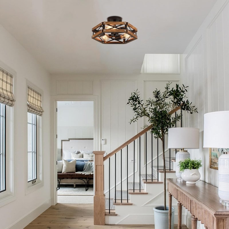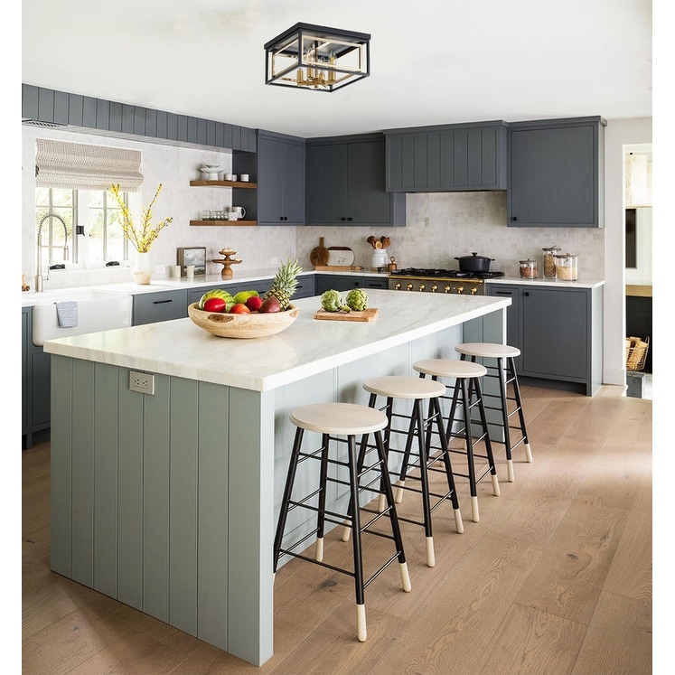 4 Light mounted light fixtures black & gold farmhouse hallway lighting metal ceiling light - N/A