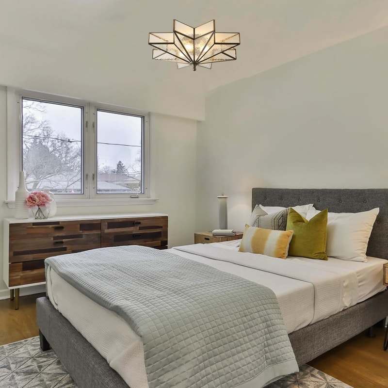 Square Flush Mount Light - 12 Inch Gold Ceiling Fixture - 2 Light Modern Interior Lighting - 5