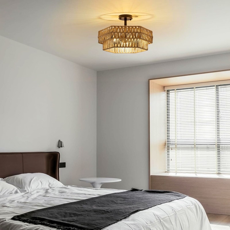 Aurelia Rattan Flush Mount - Rattan Natural 1-Light Handwoven Ceiling Light for Dining Room or Living Room in Modern, Boho Style