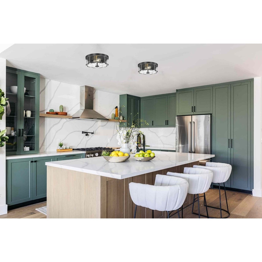 Modern Black 2-Light Metal Flush Mount Ceiling Light Fixtures for Kitchen