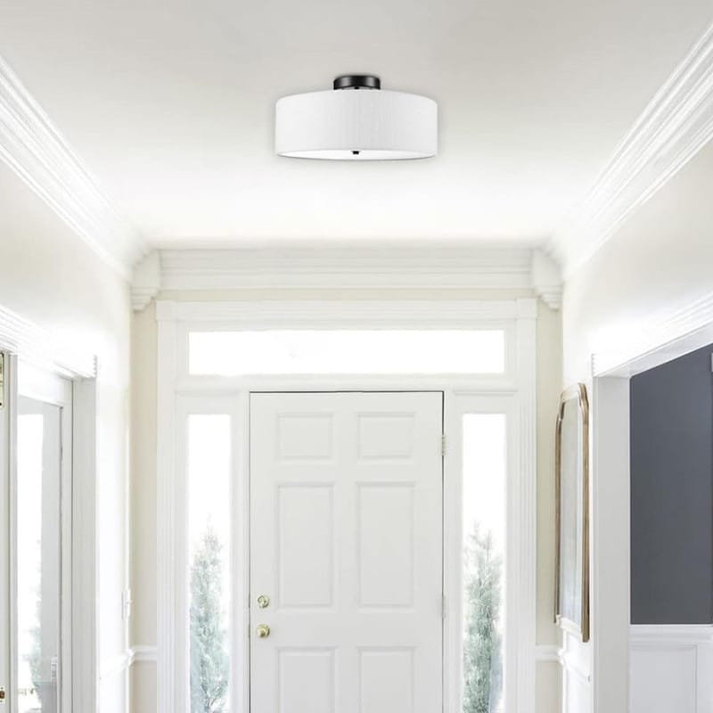 2 Light low profile flush mount light dark bronze, linen shade white light fixture metal ceiling light - N/A
