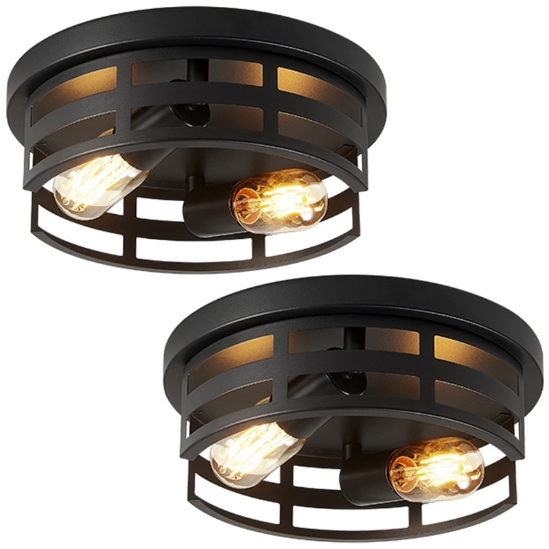 11/13 in. 2-Light Industrial Black Round Cage Flush Mount Ceiling Light with Turnable Light Cap,No Bulbs Included (2-Pack)