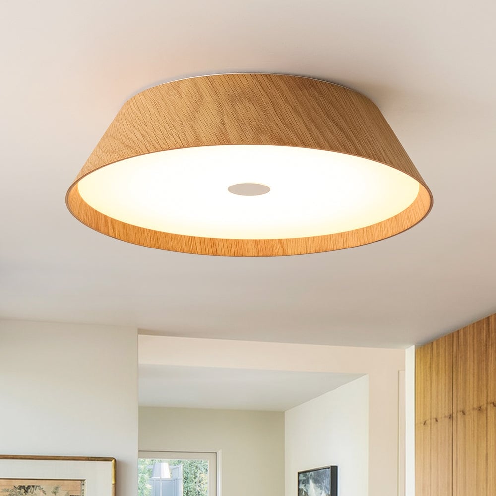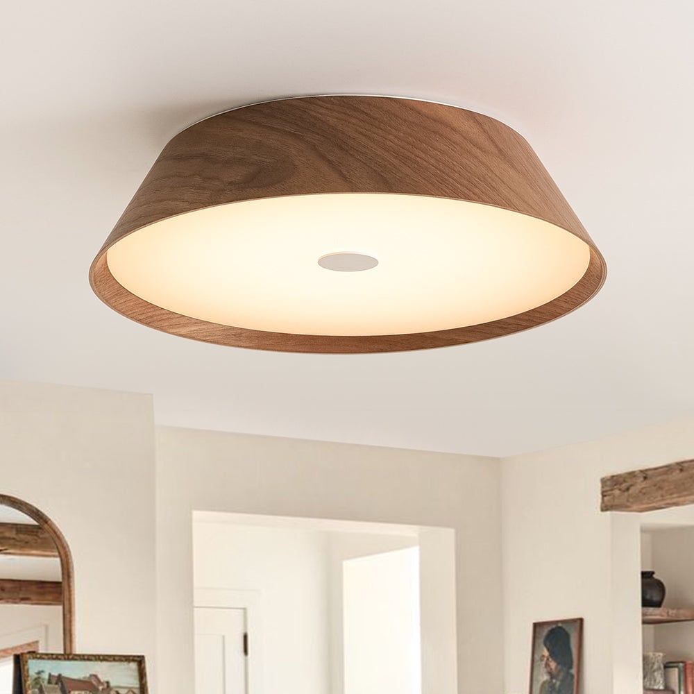 Scandinavian Wood Style Dimmable LED Flush Mount Ceiling Light 13.2in