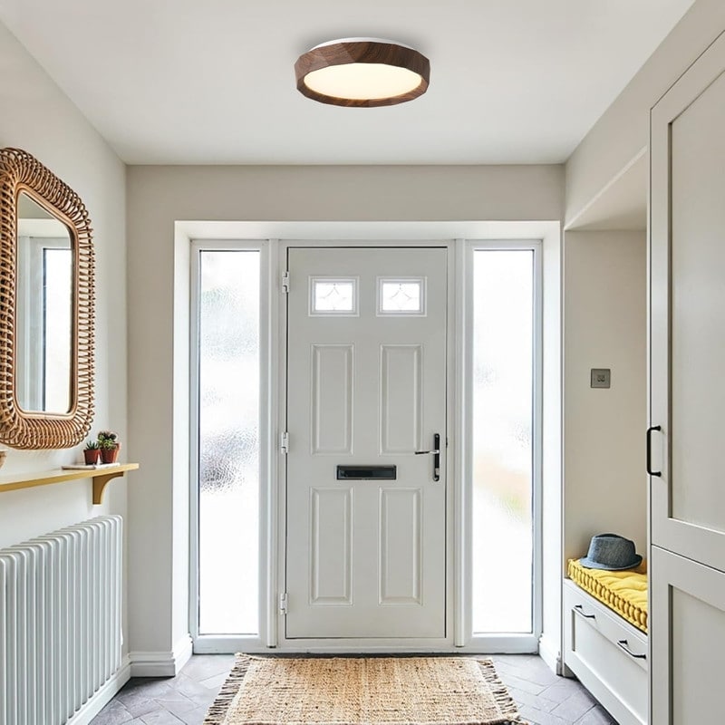 15 inch led light plastic wood light fixture walnut wood grain ceiling light - N/A