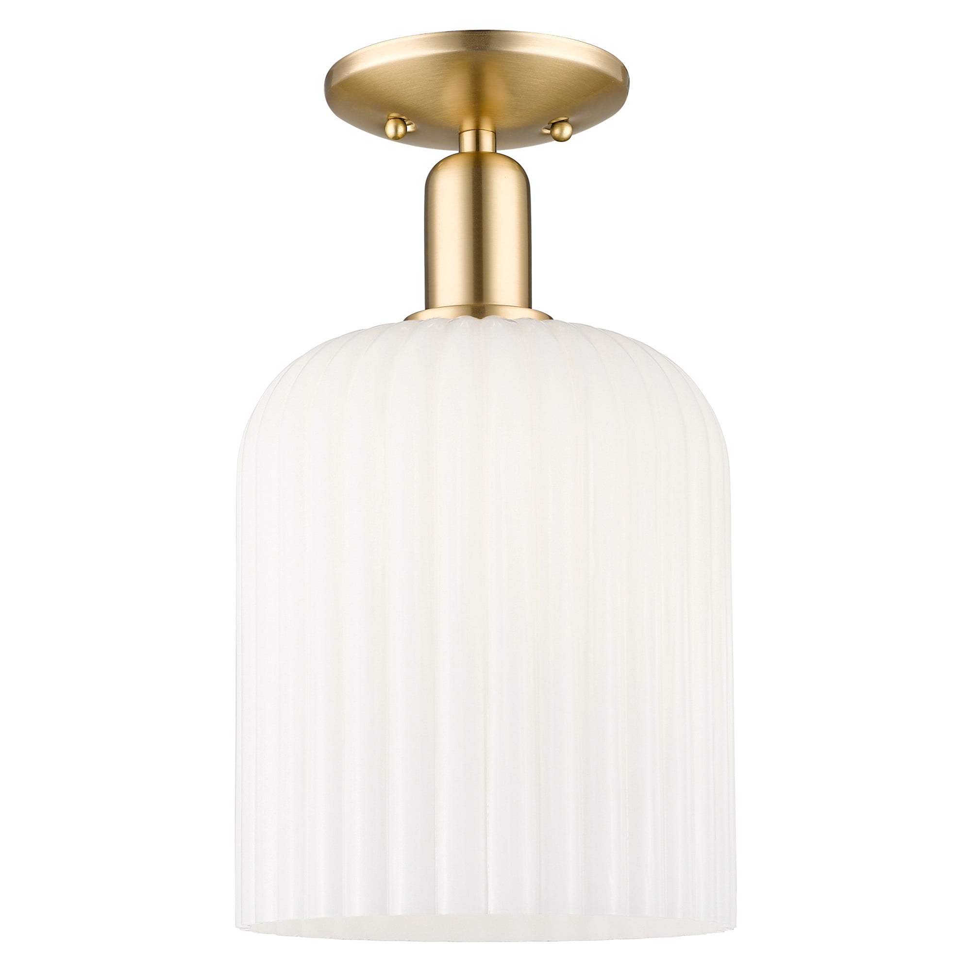 Vintage Gold 1-Light White Glass Semi Flush Mount Lighting Fixture