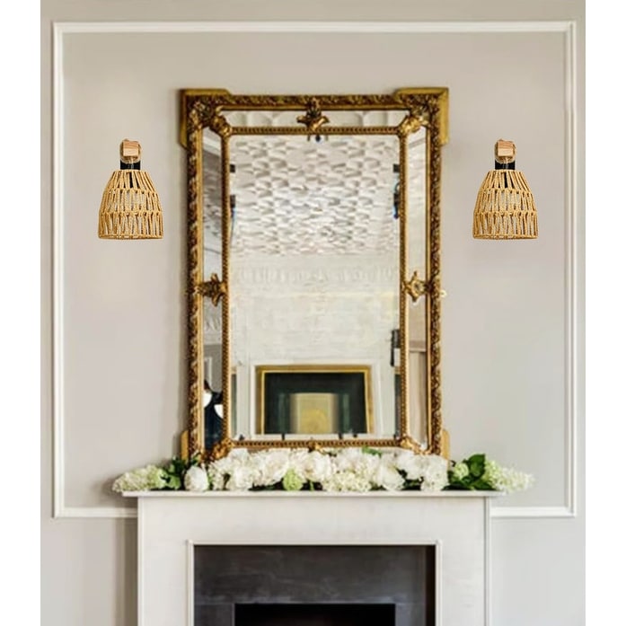 1 Light wall sconces gold wall lighting metal, rattan wall light fixture