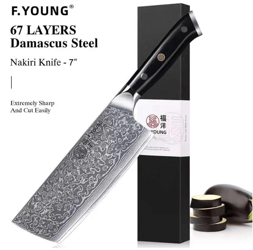F.YOUNG Damascus Steel Japanese Chef Knife Precision Crafted For Pro Level Slicing nakiri Knife