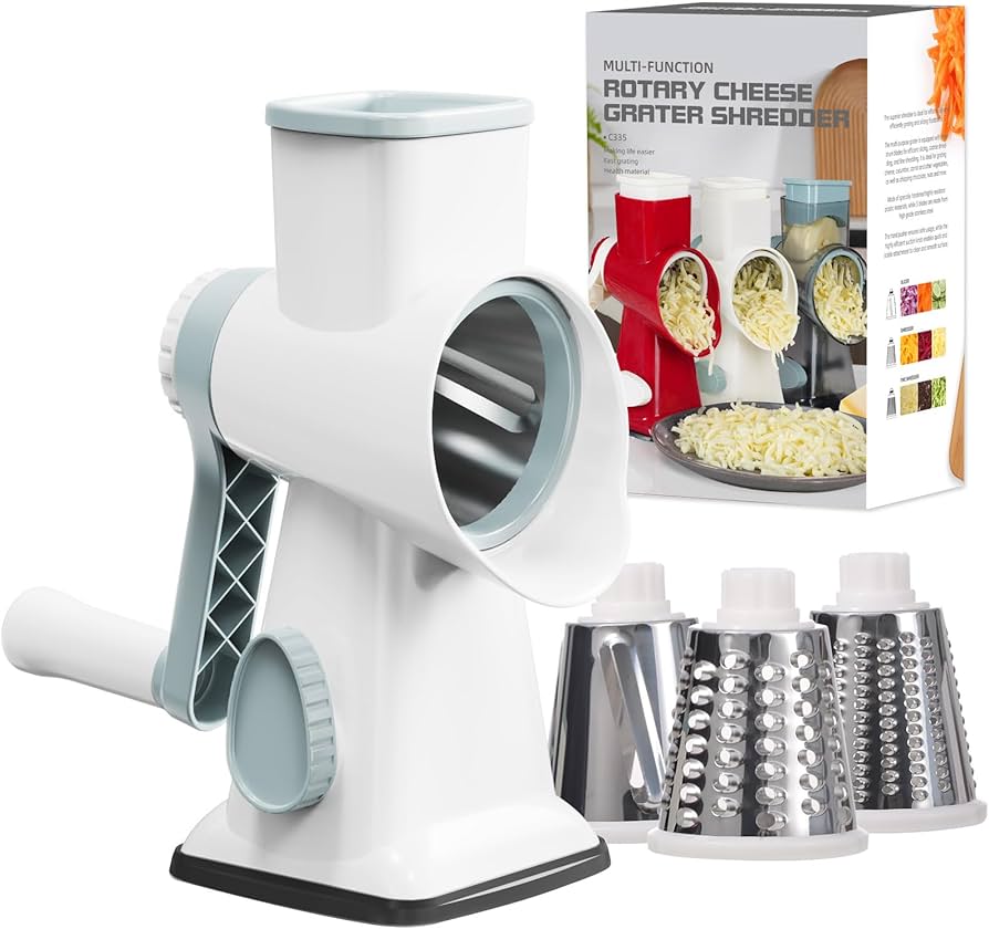 GrateMate 3 in 1 Rotary Cheese Grater Manual Vegetable Slicer & Nut Grinder red