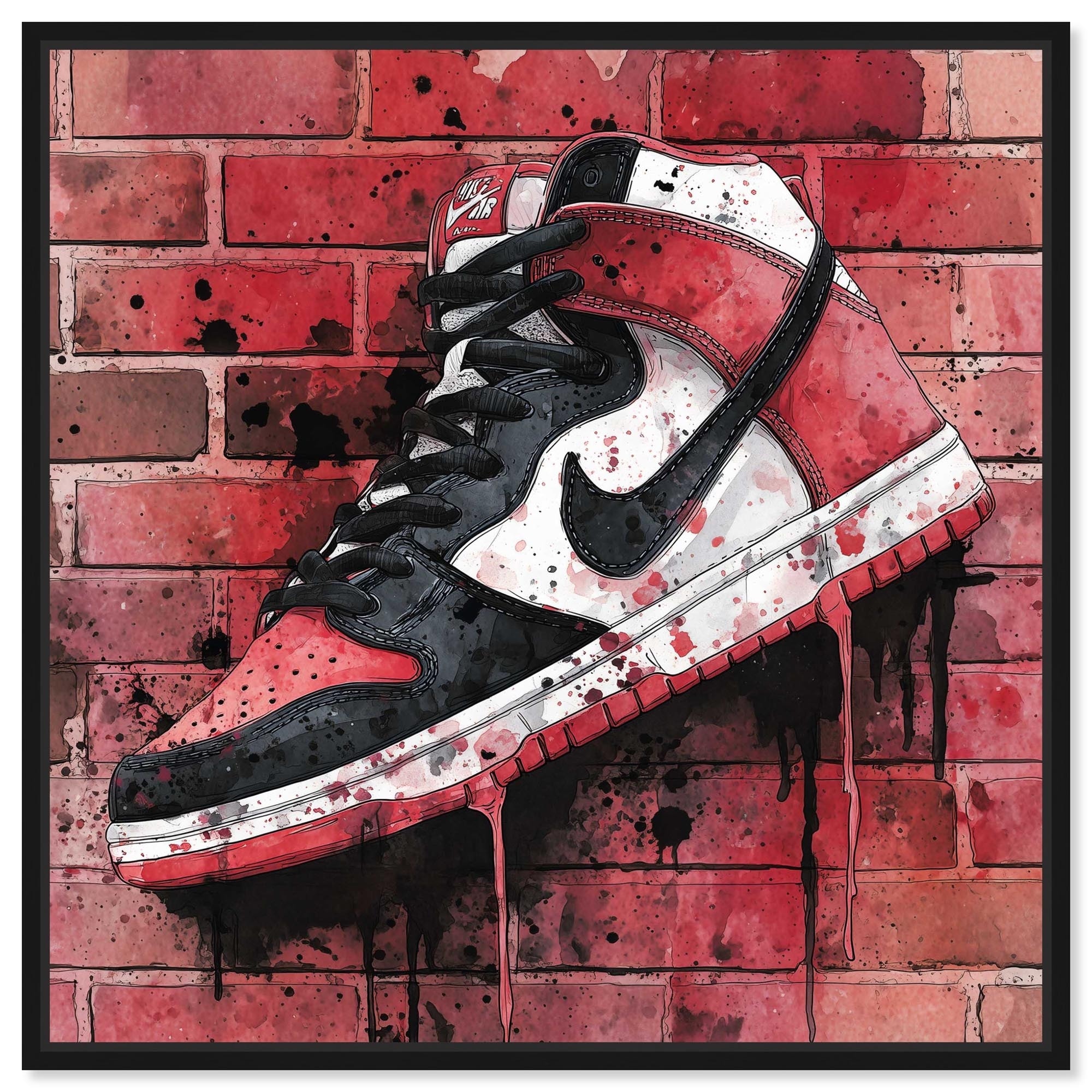 Black Sneaker Drip Wall Sports Art Framed Canvas Print by Art Remedy