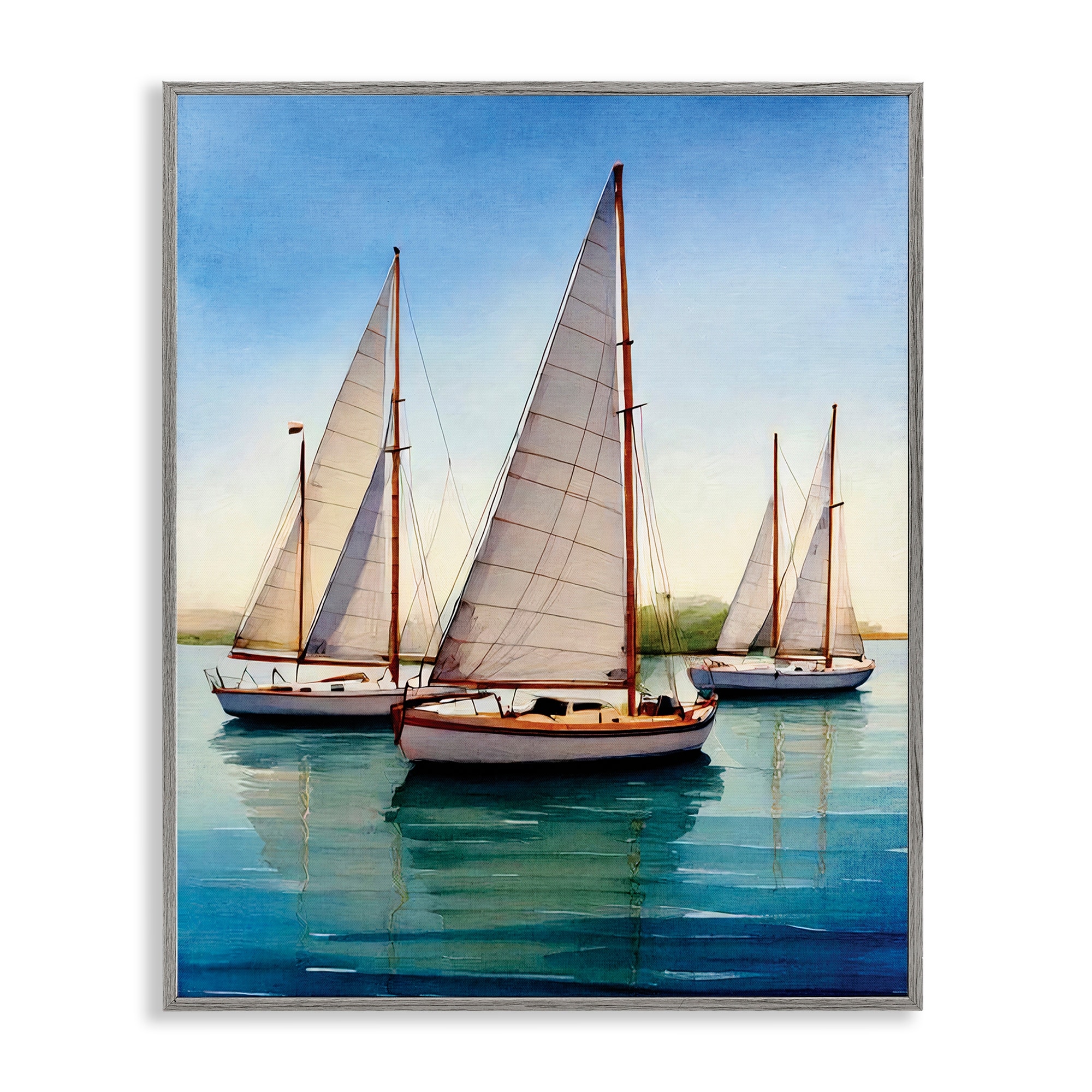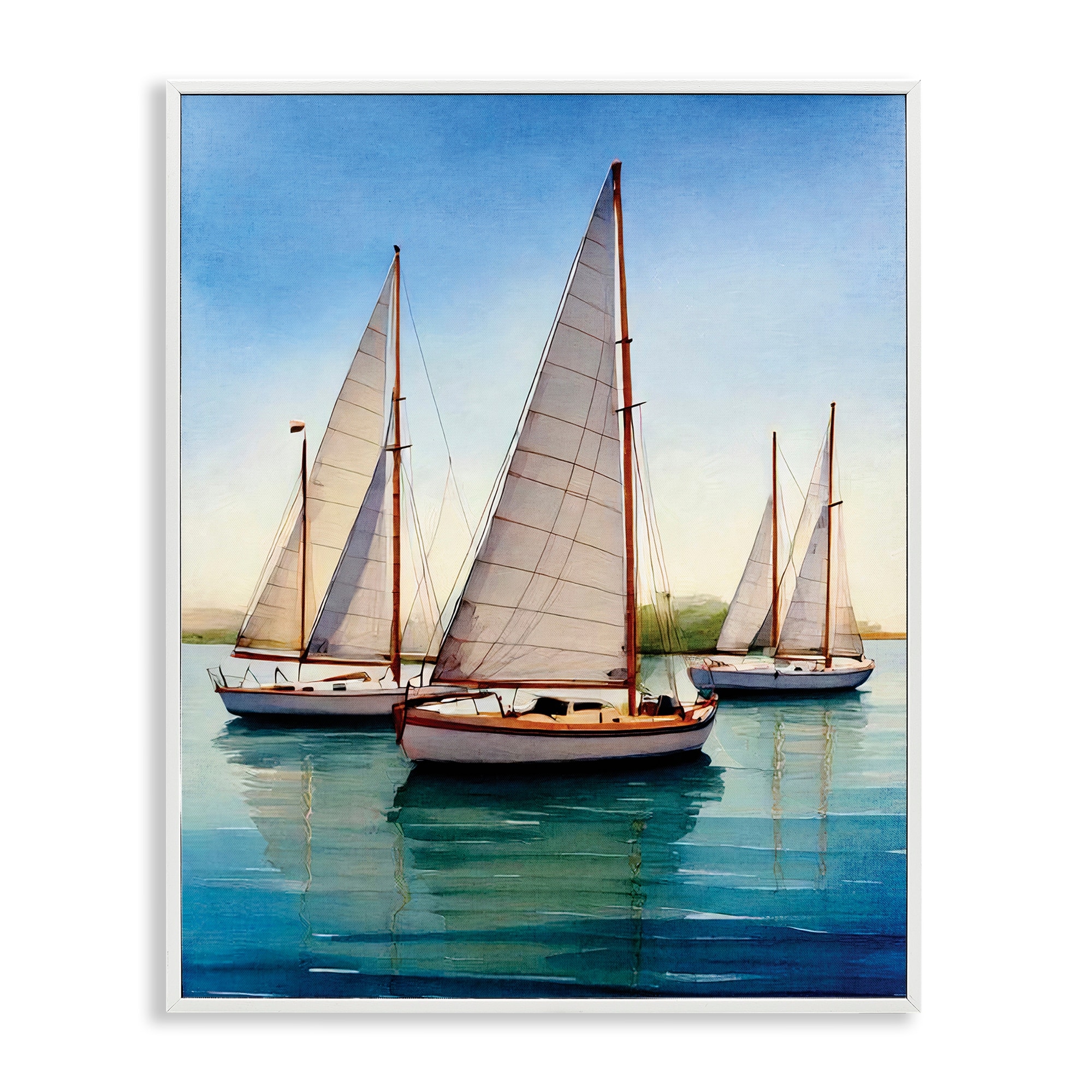 Stupell Sailboat Trio on Calm Sea Framed Giclee Art Design By Seven Trees Design