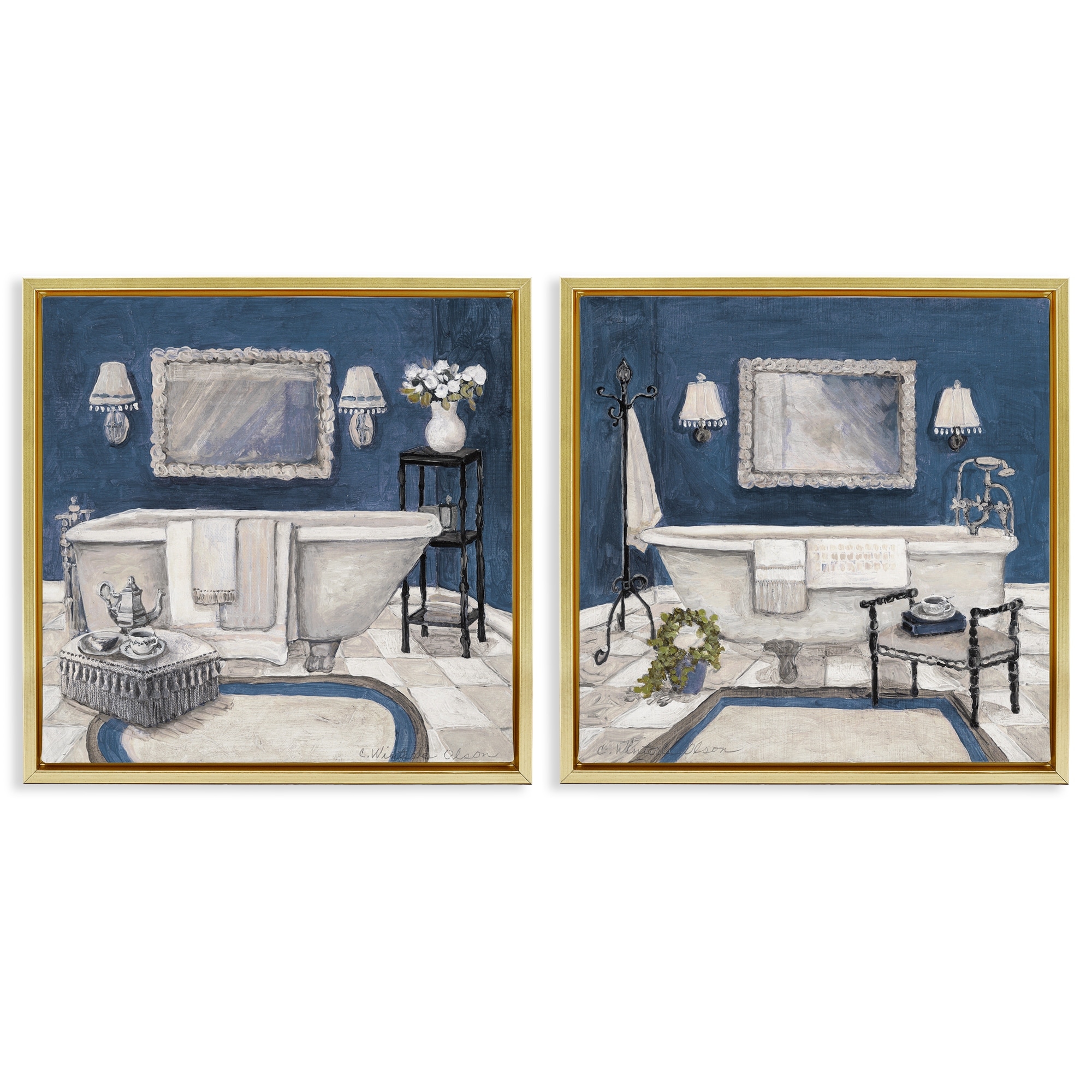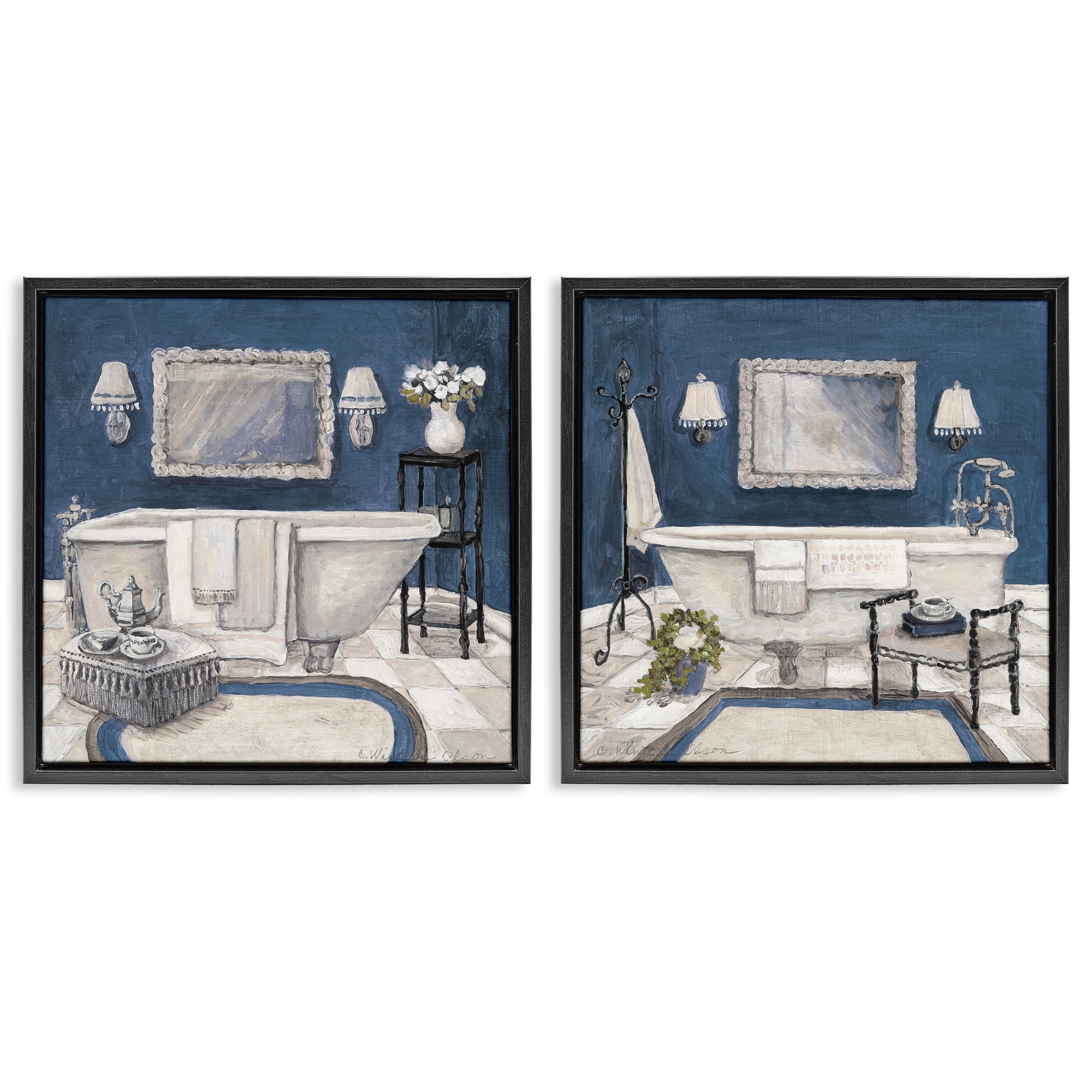 Stupell Elegant Blue Bath Framed Floater Canvas Wall Art Design By Charlene Olson (Set of 2)
