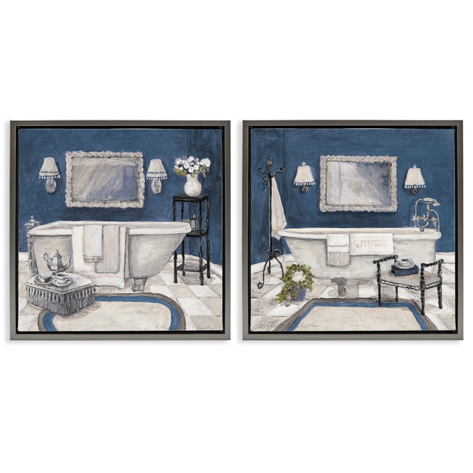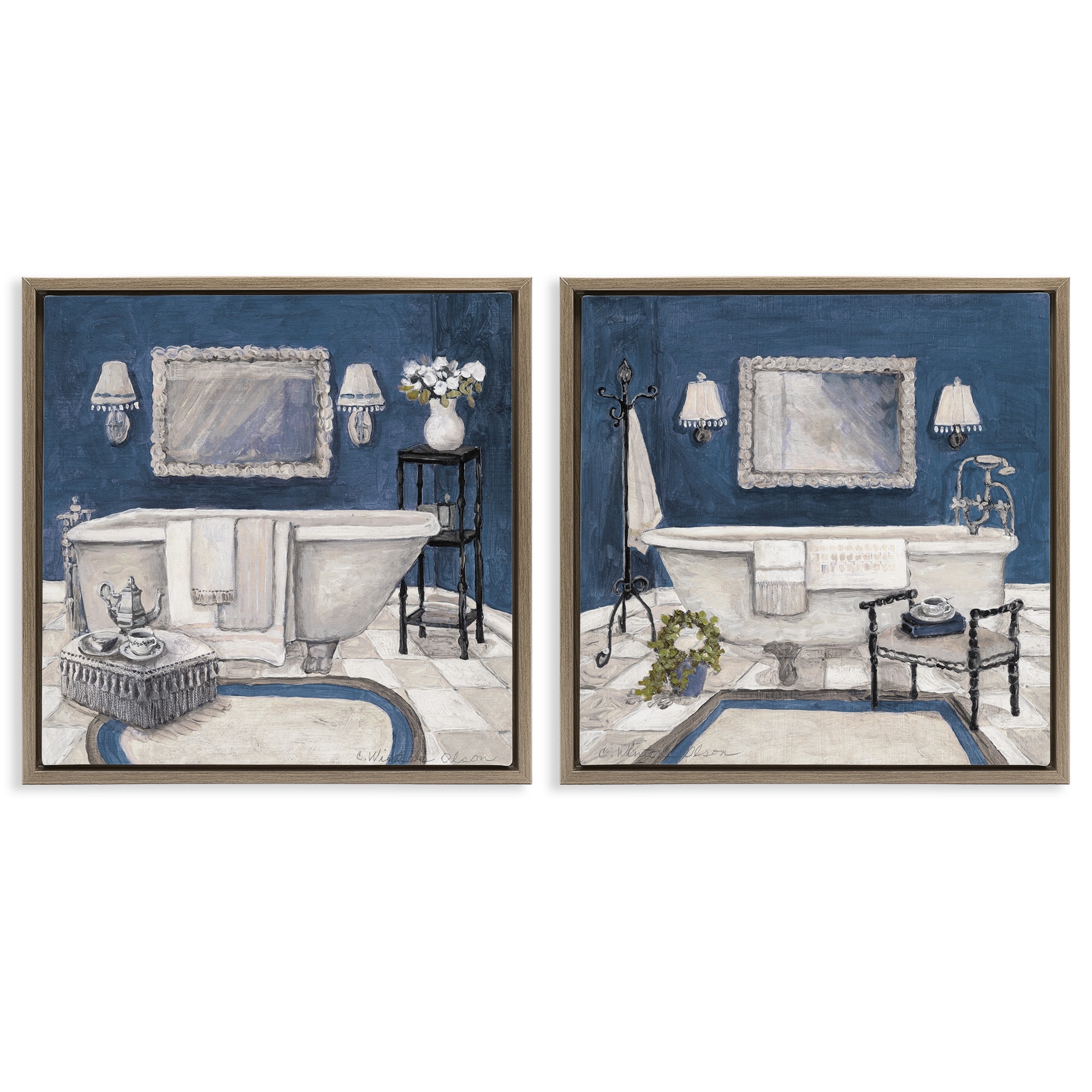 Stupell Elegant Blue Bath Framed Floater Canvas Wall Art Design By Charlene Olson (Set of 2)