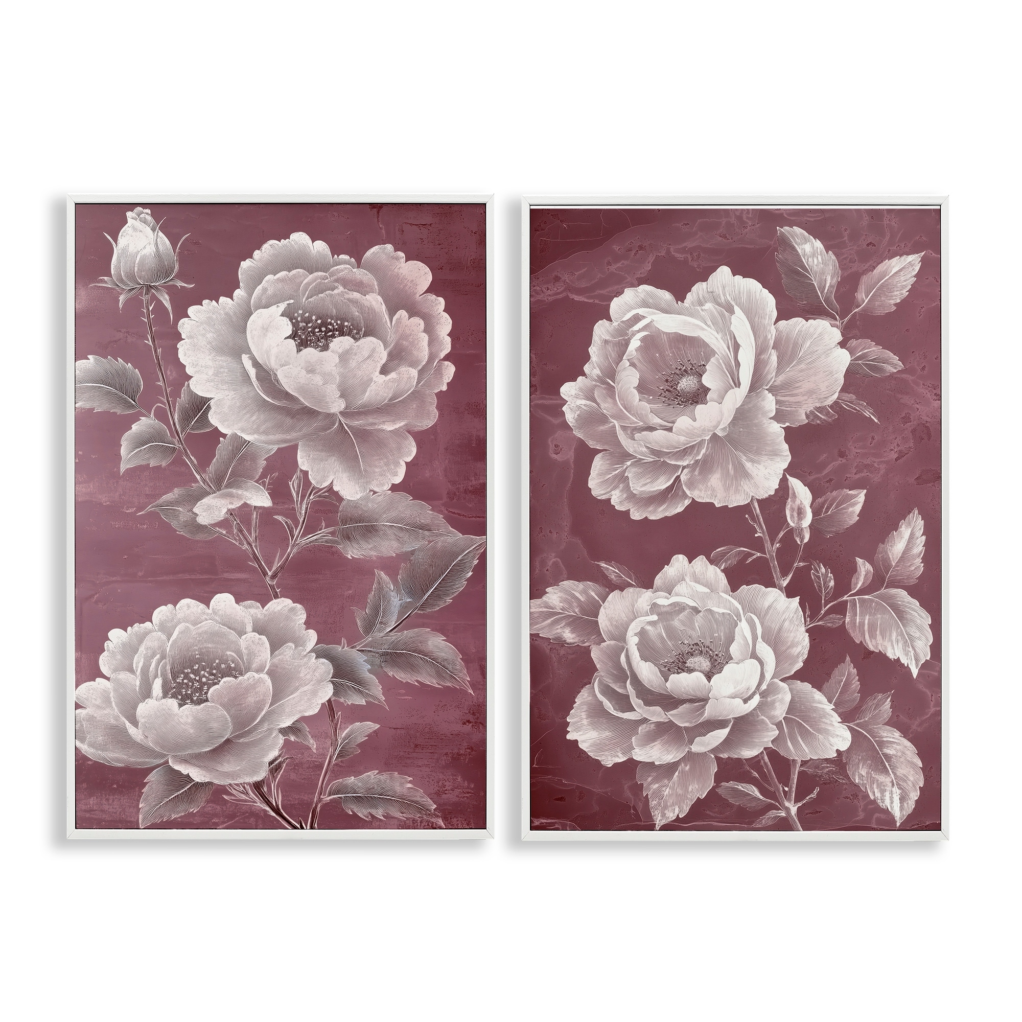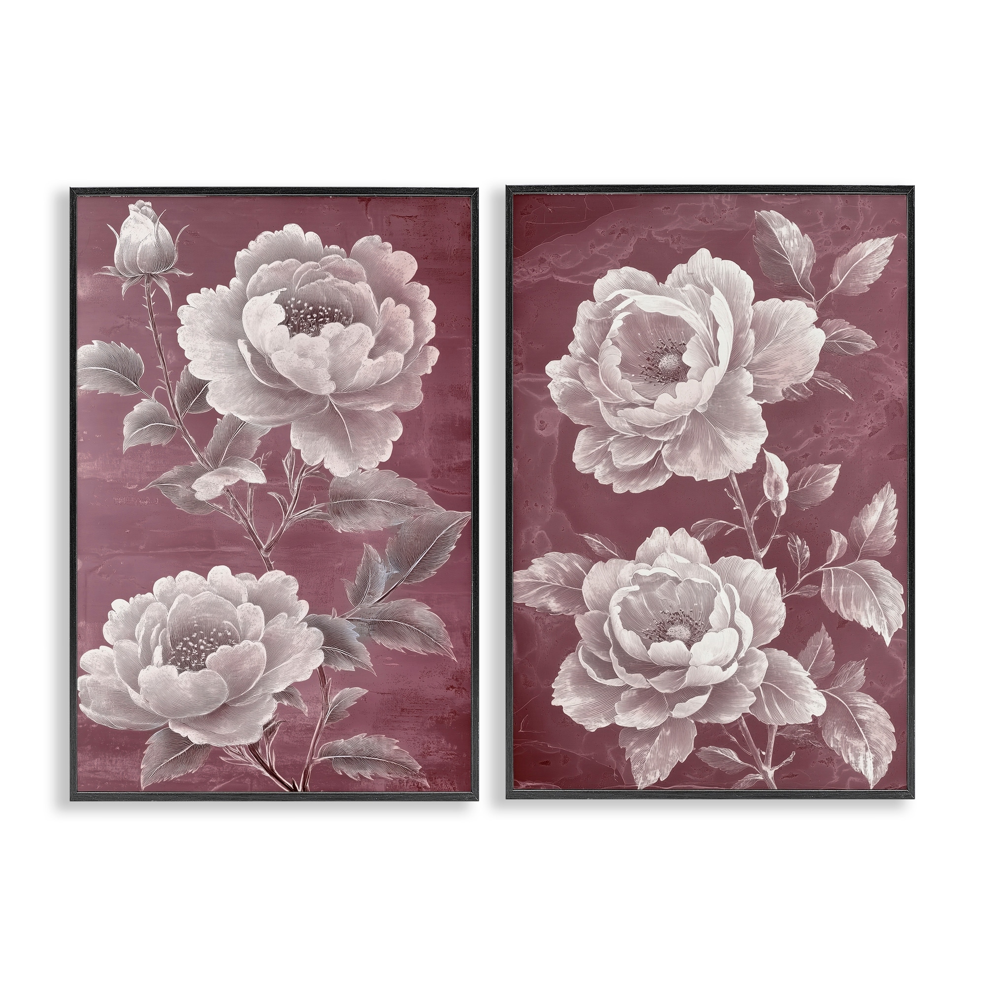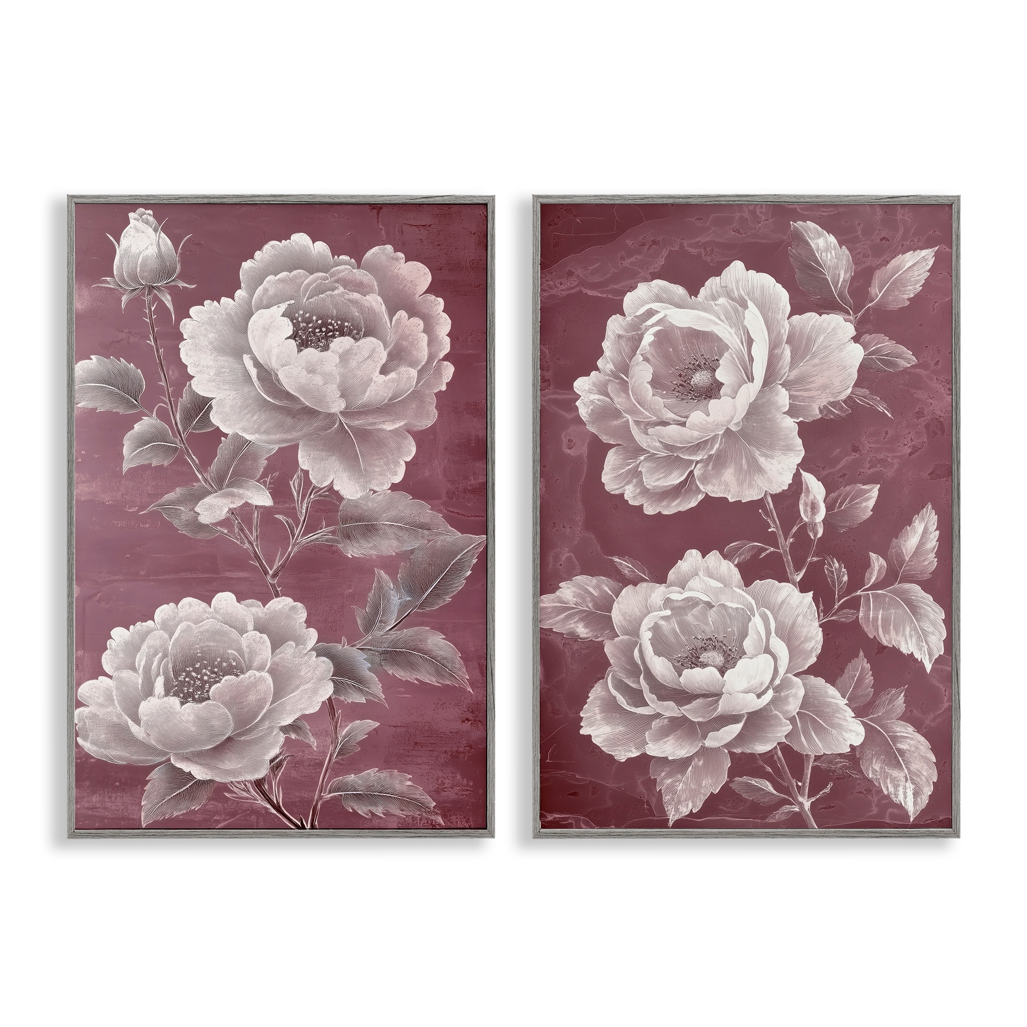 Stupell Burgundy Chambermaid Blossoms Framed Giclee Art Design By Annabelle Hall (Set of 2)