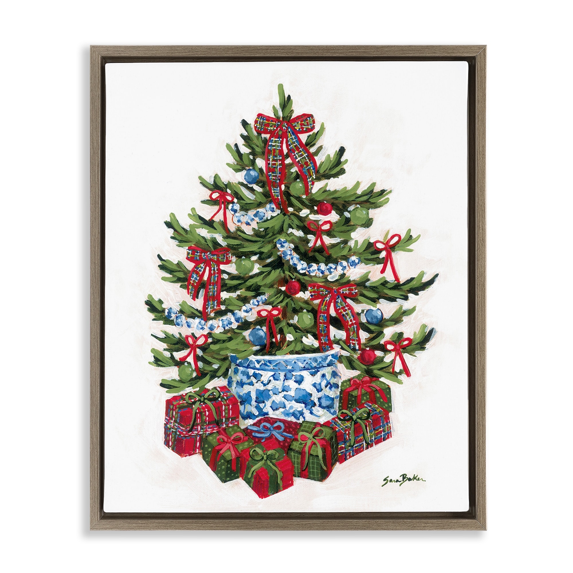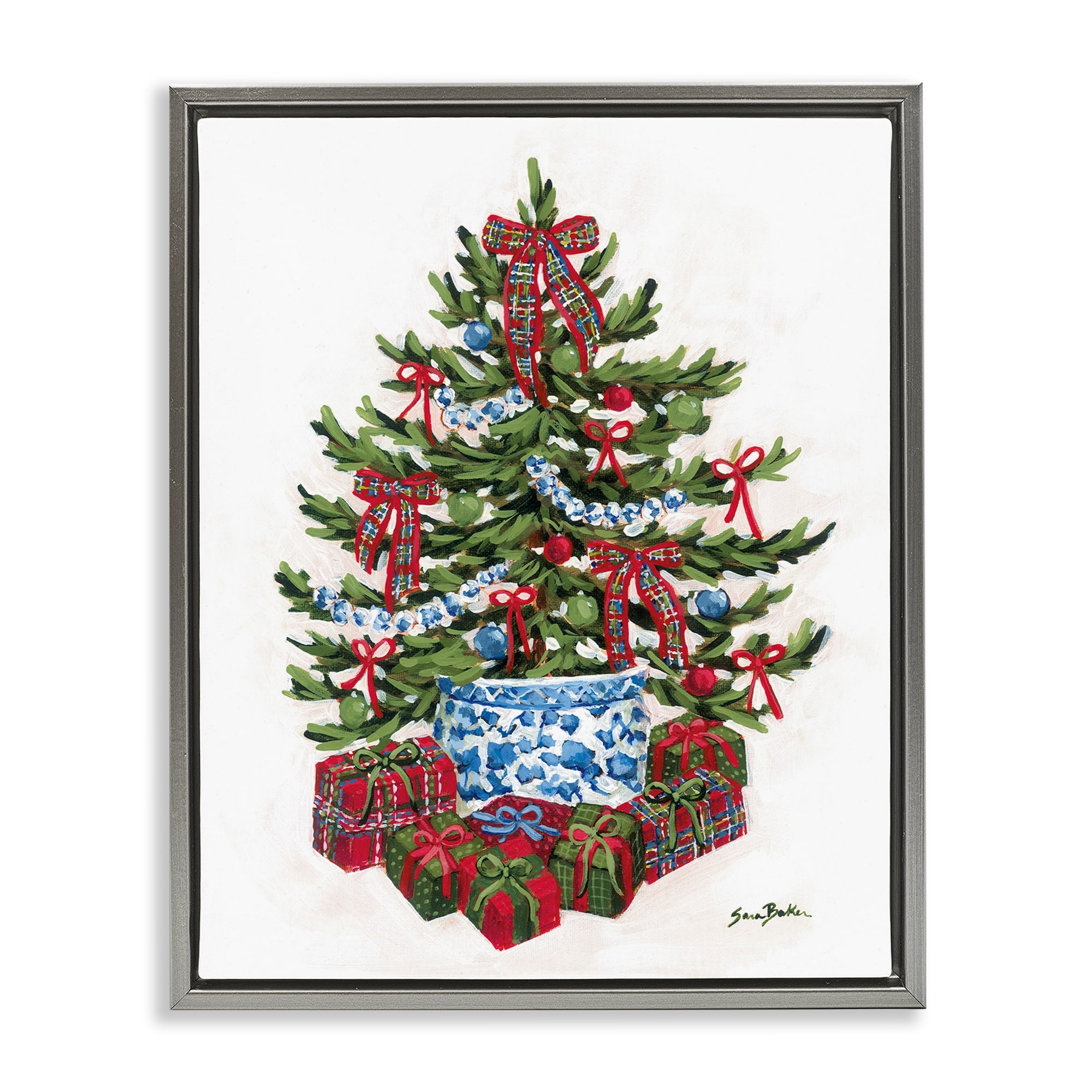 Stupell Festive Celebration Tree Framed Floater Canvas Wall Art Design By Sara Baker
