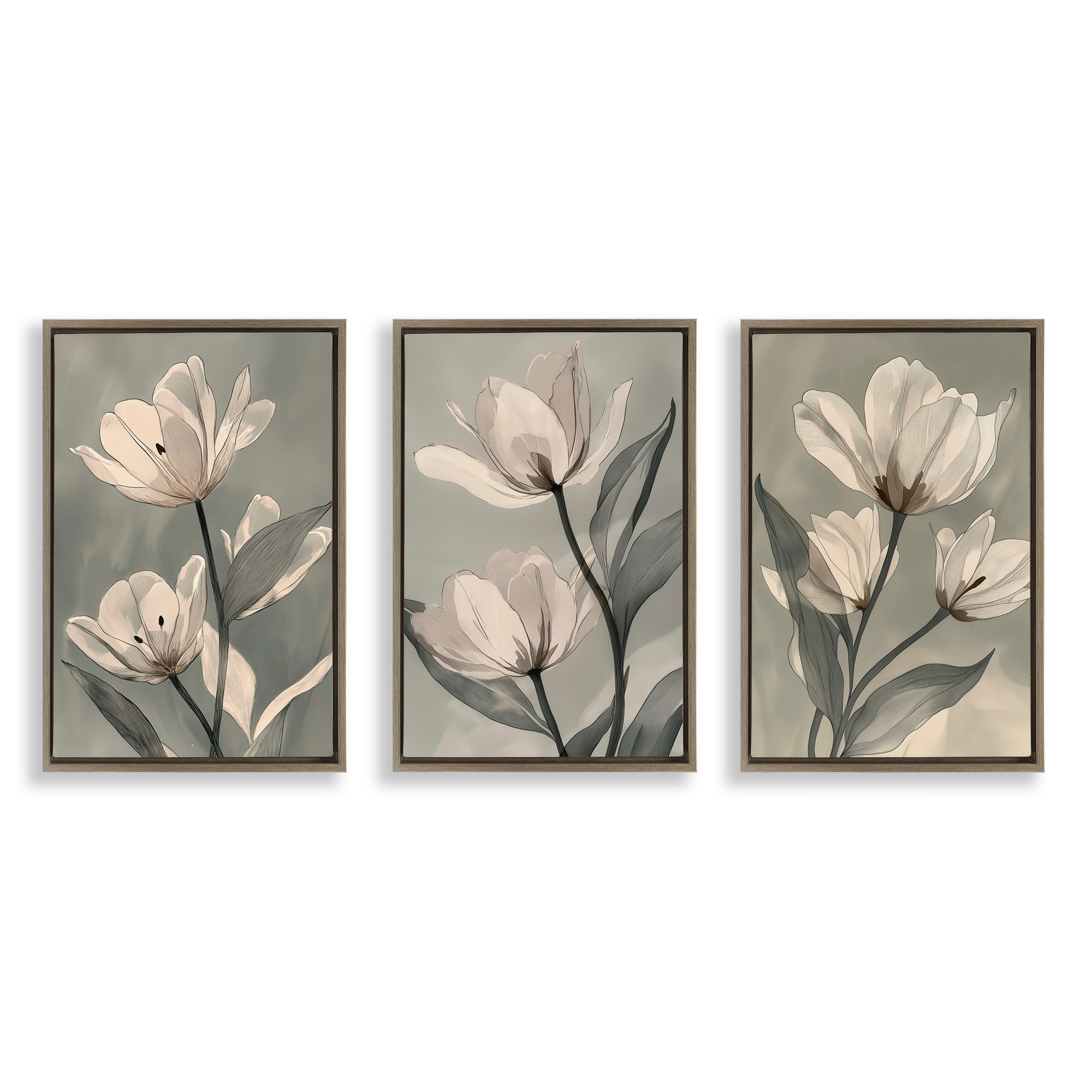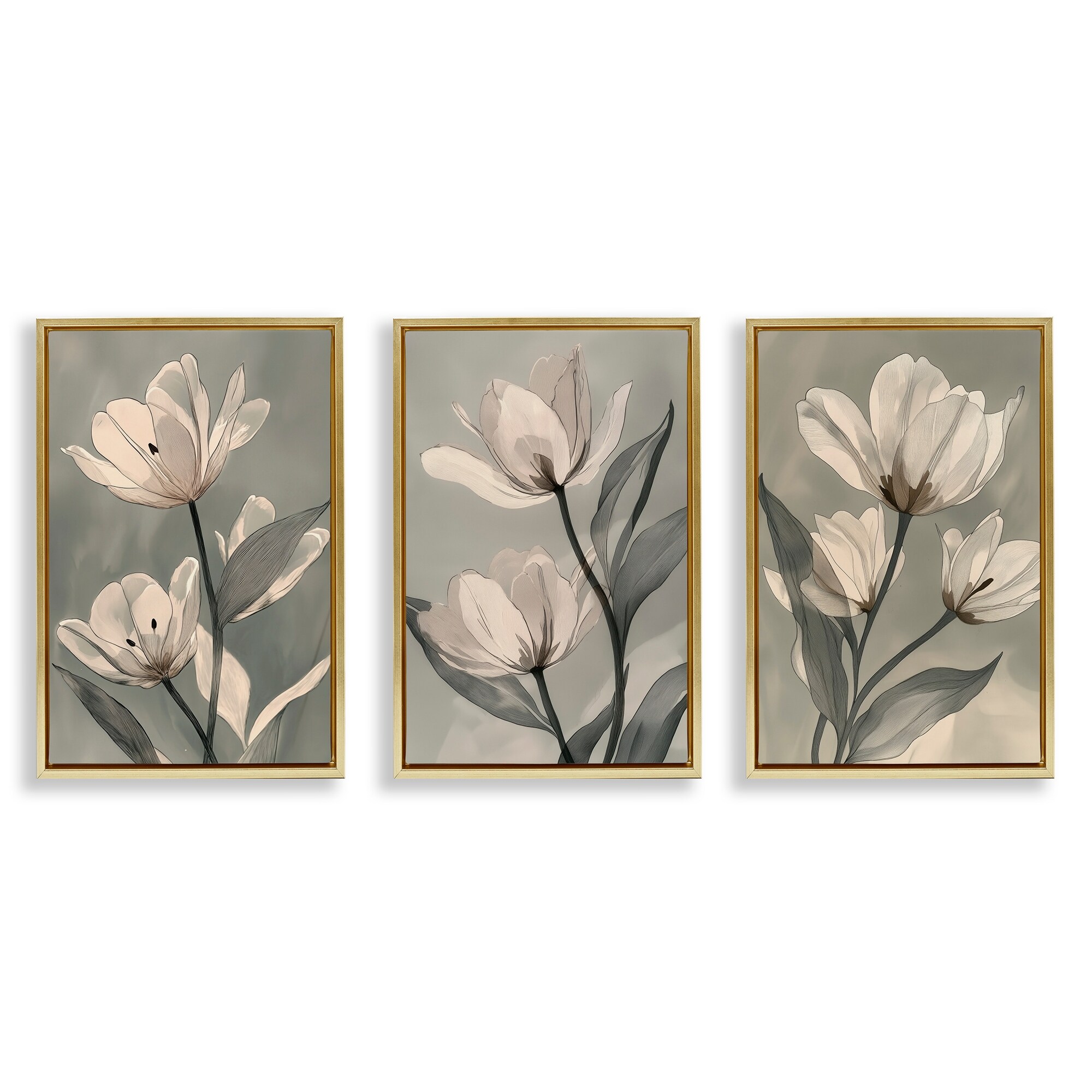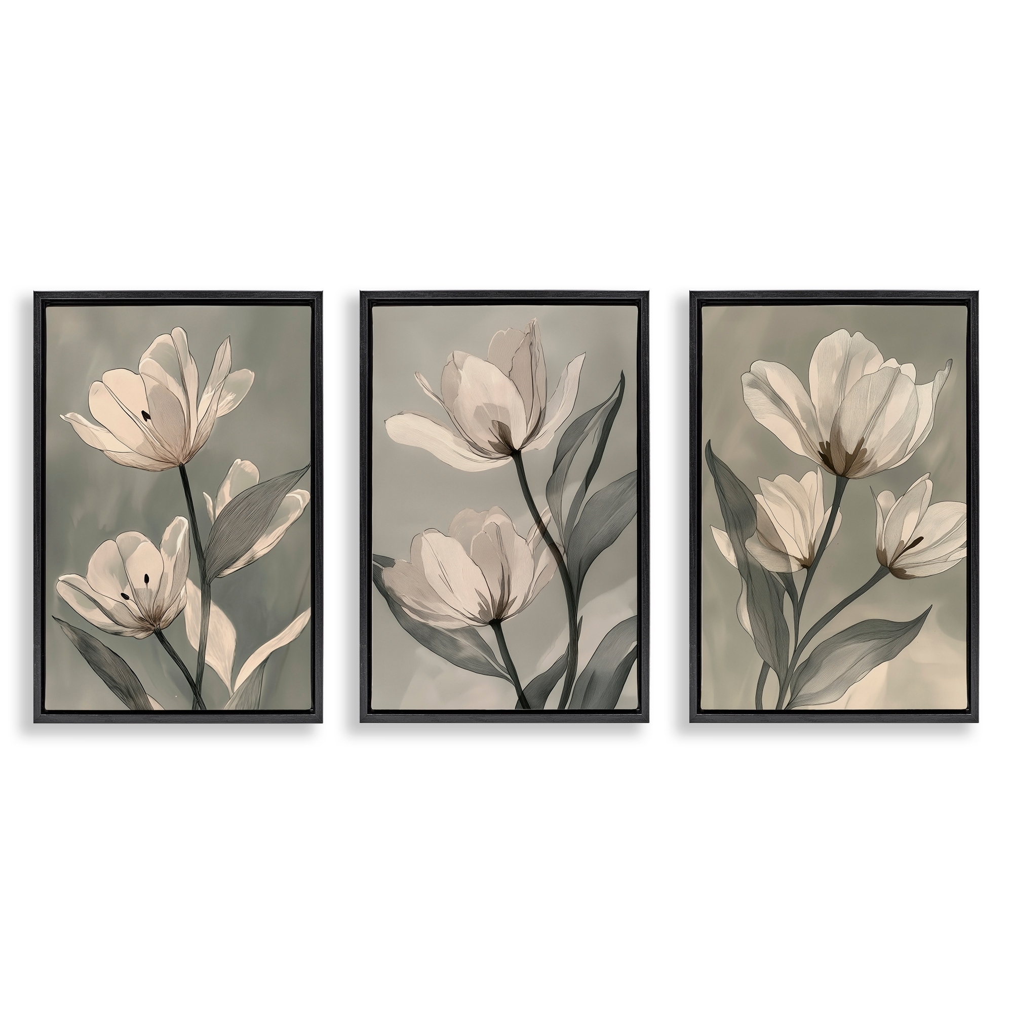 Stupell Flower Trios Portraits Framed Floater Canvas Wall Art Design By Annabelle Hall (Set of 3)