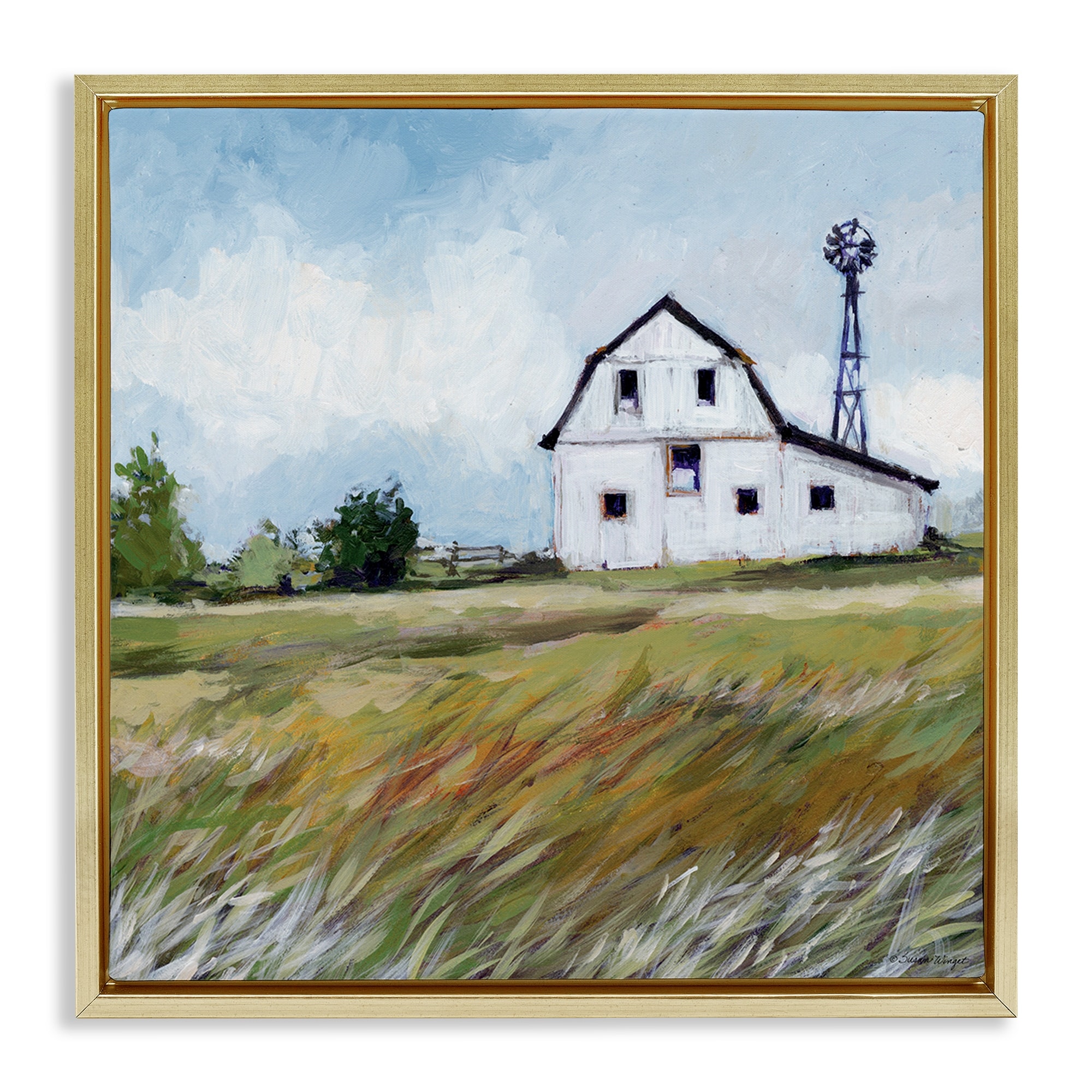 Stupell Barn with Windmill & Grass Framed Floater Canvas Wall Art Design By Susan Winget