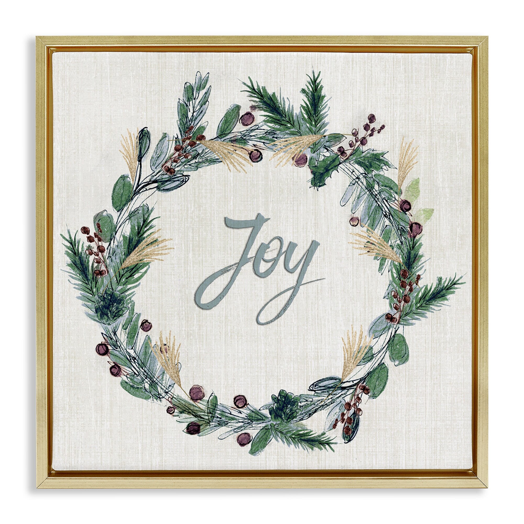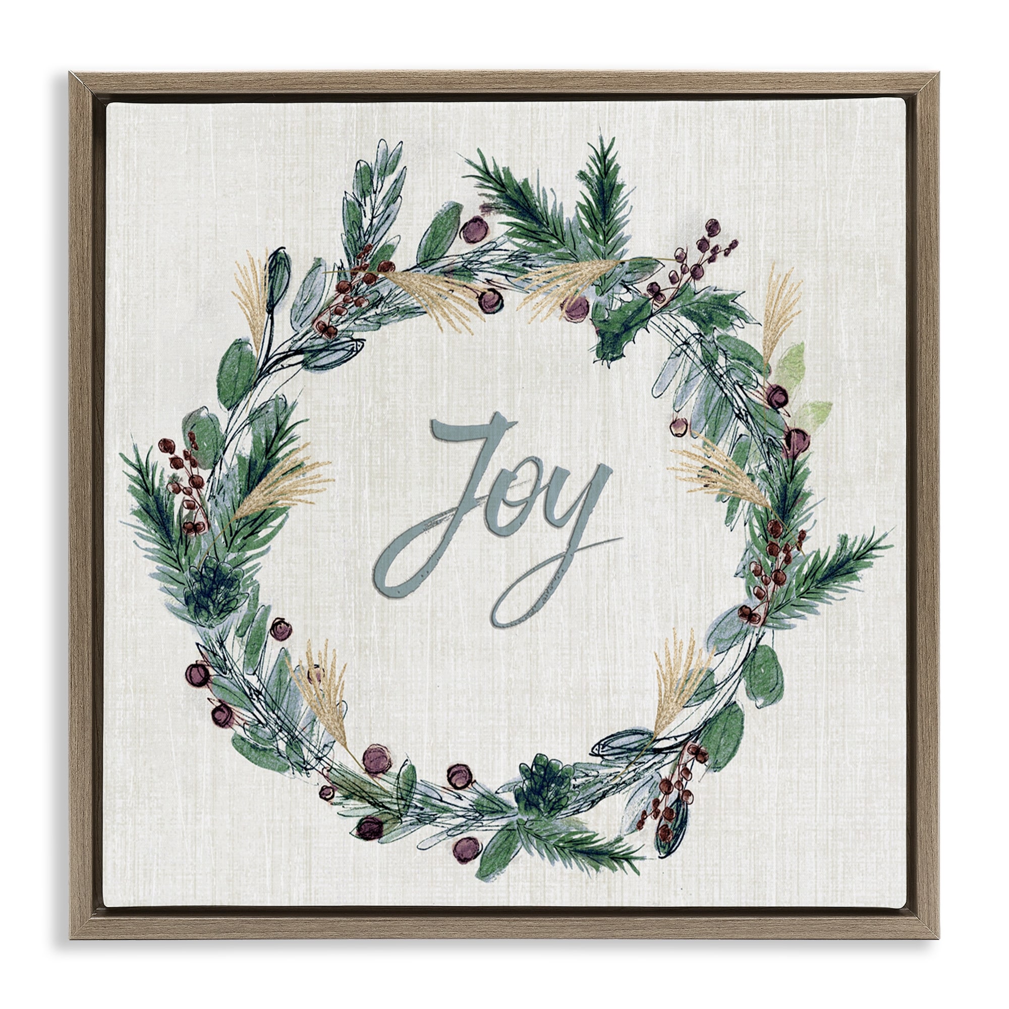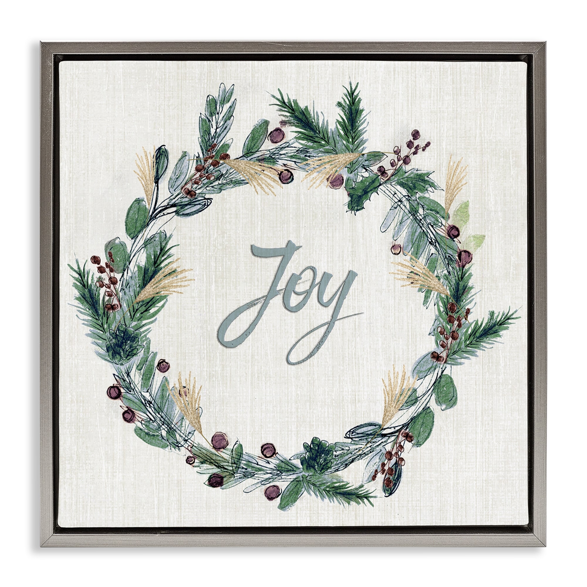 Stupell Joy Seasonal Greenery Wreath Framed Floater Canvas Wall Art Design By Susan Jill
