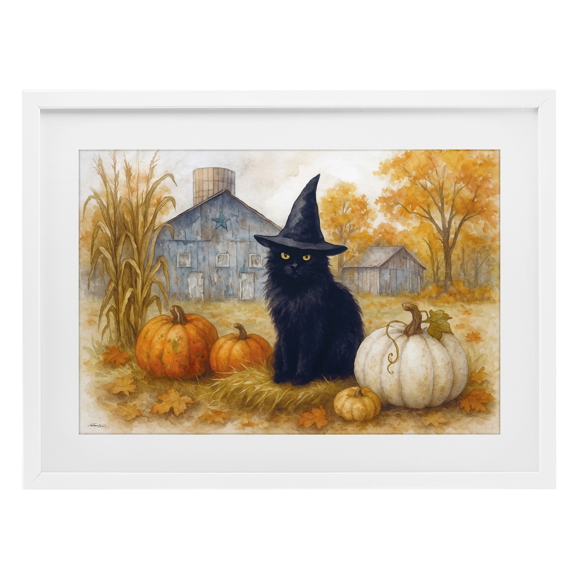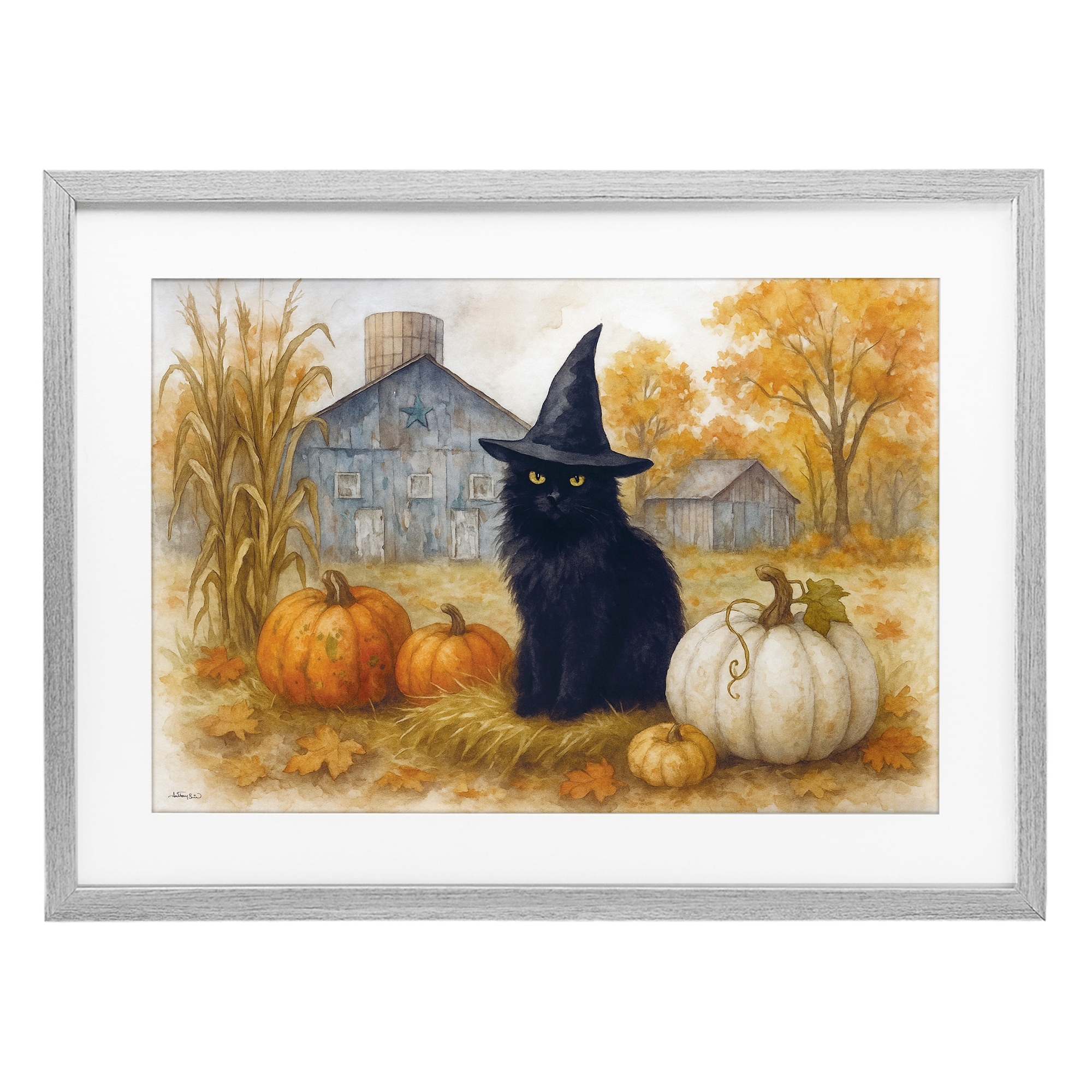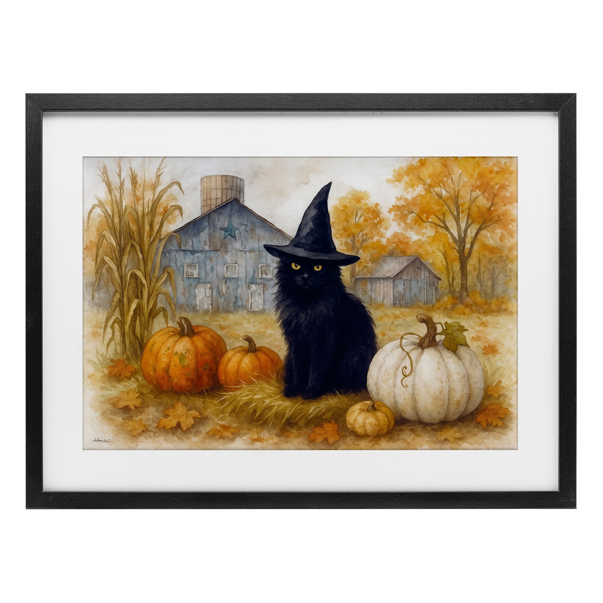 Stupell Witch Cat Autumnal Farm Under Glass Framed Design By Antony Smith