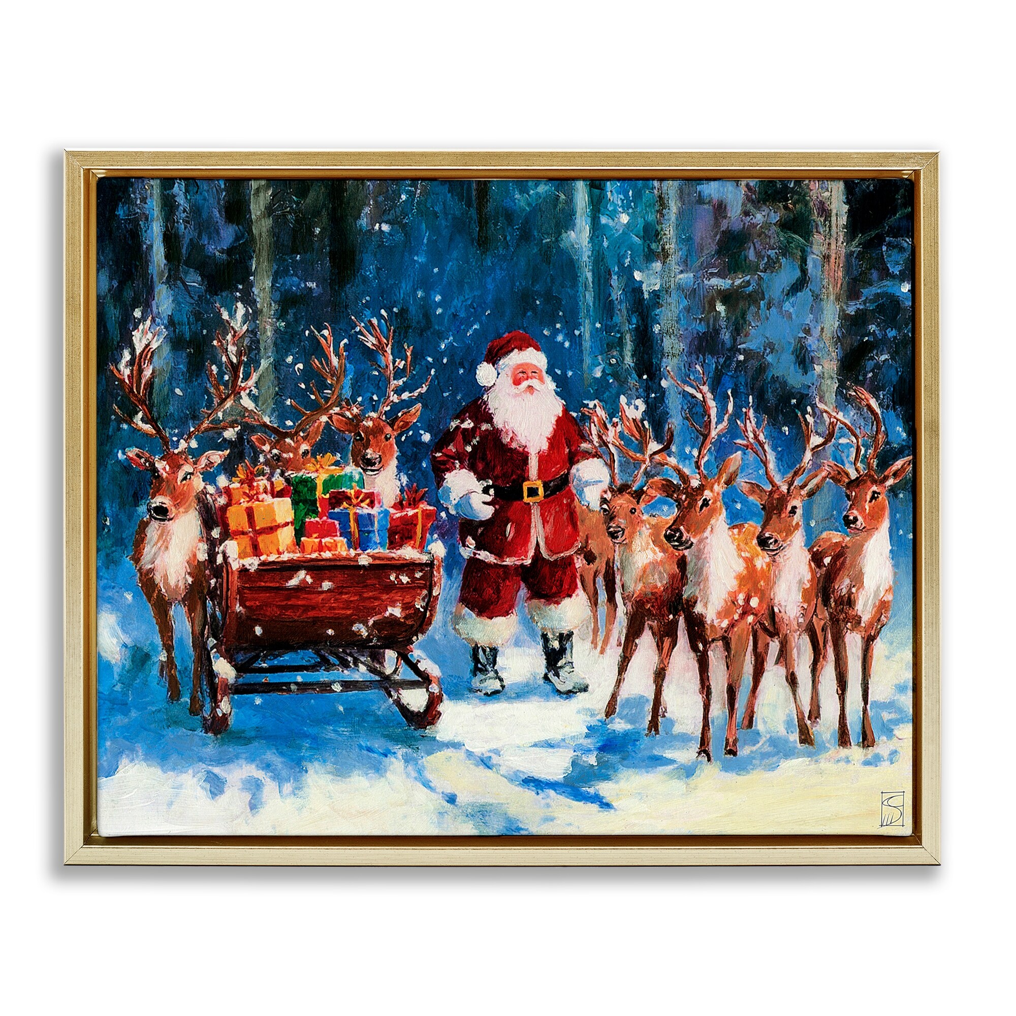 Stupell Santa Reindeer & Sleigh Framed Floater Canvas Wall Art Design By Sara Culpepper