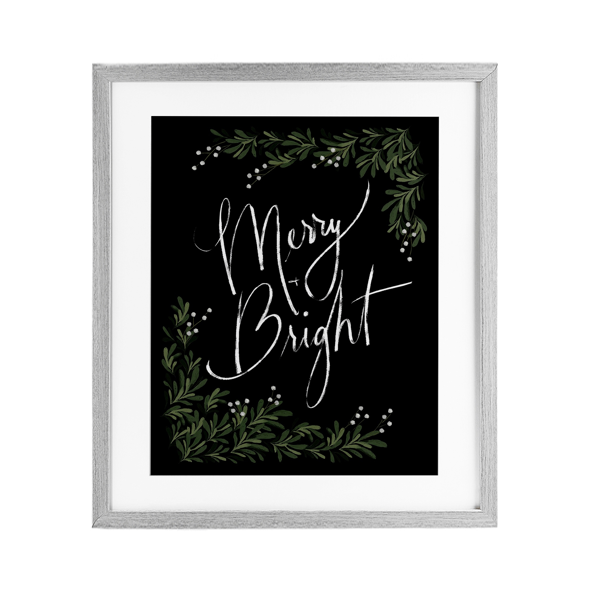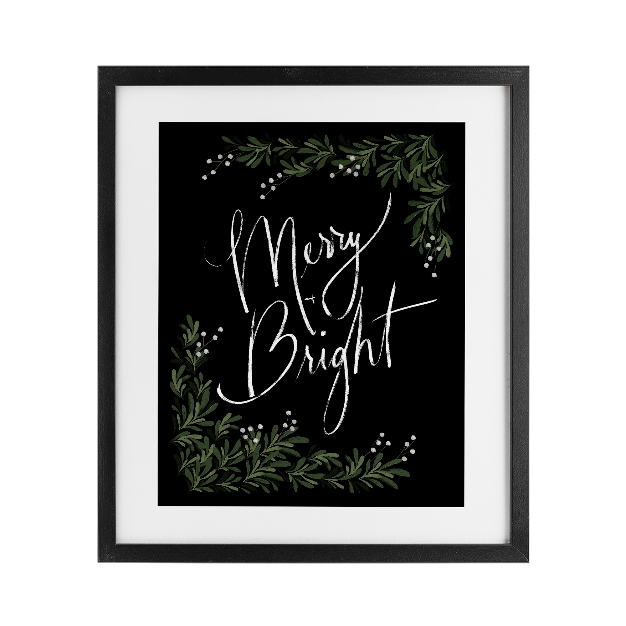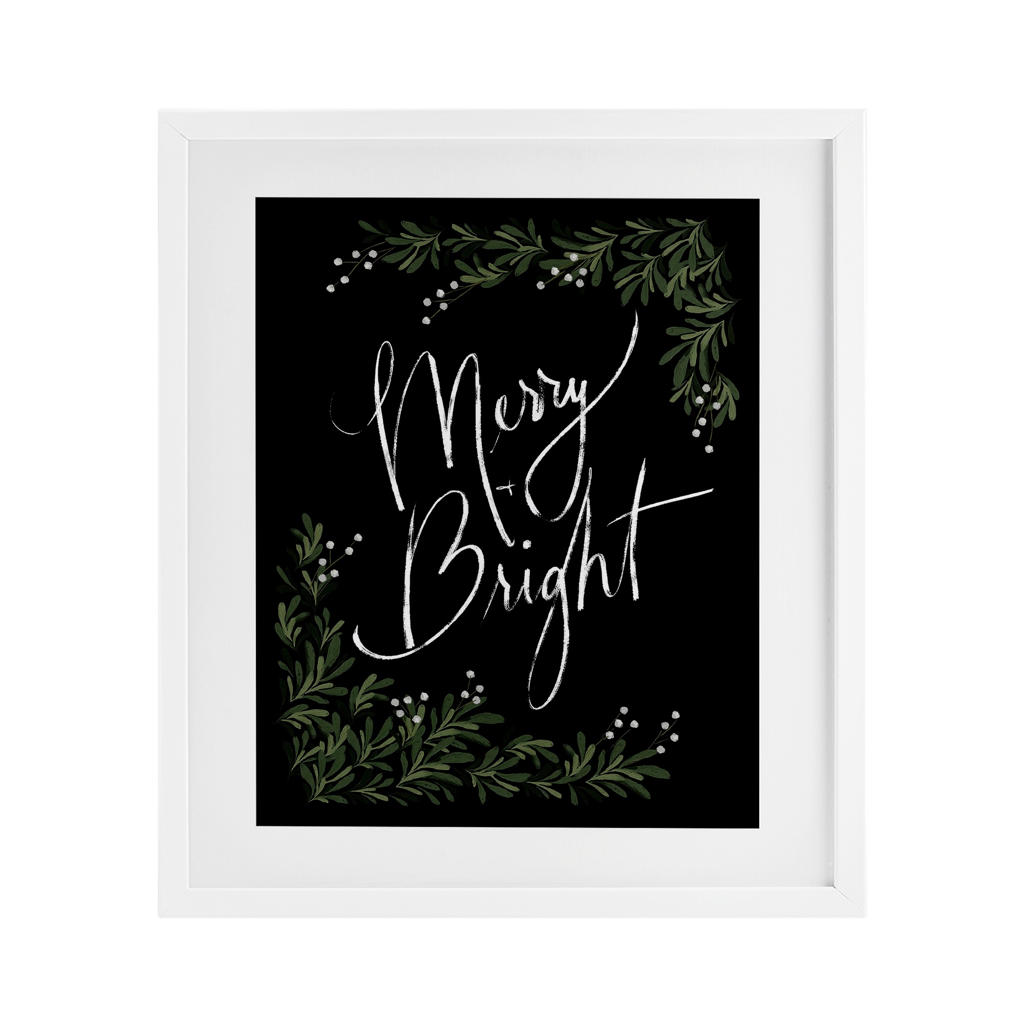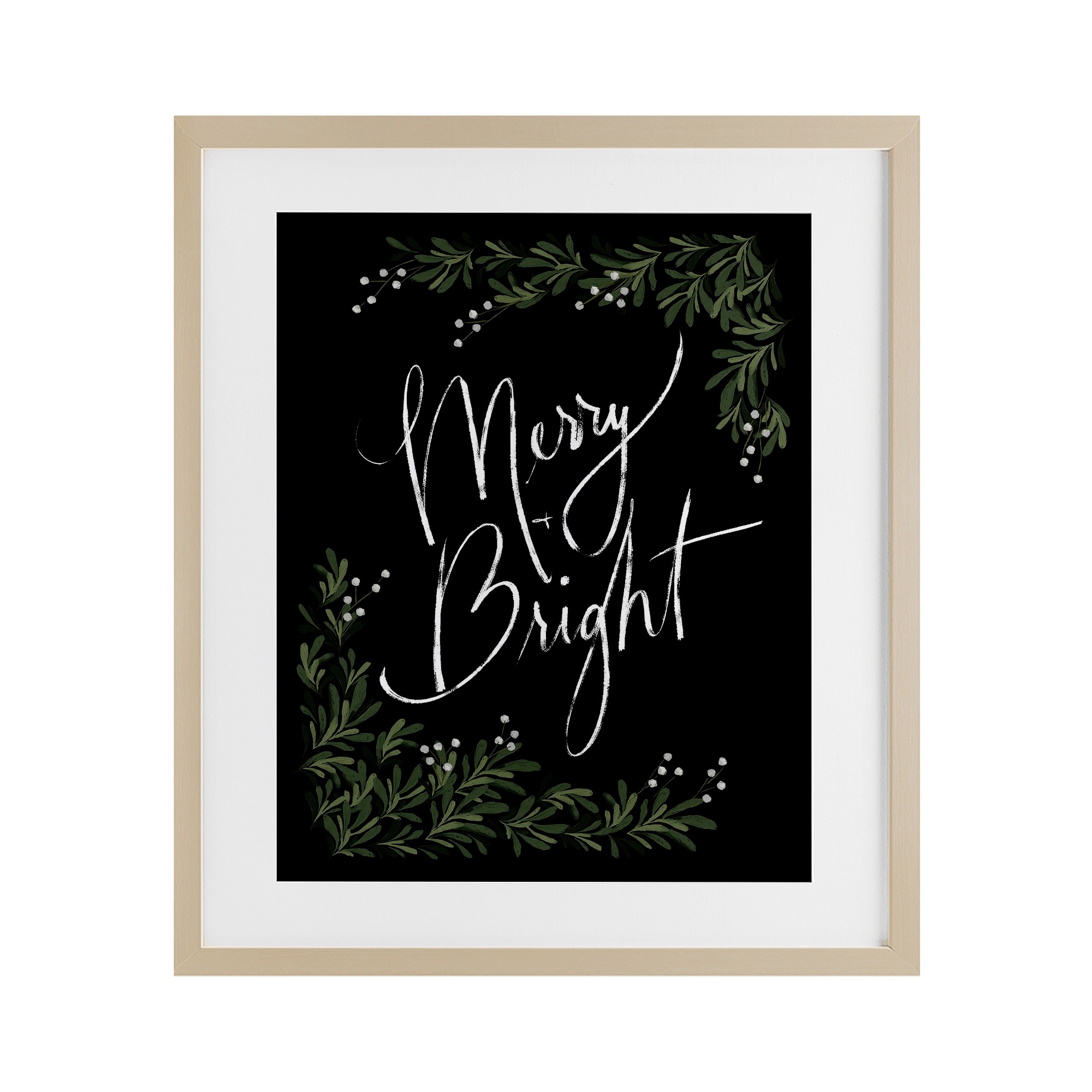 Stupell Minimal Merry & Bright with Botanicals Under Glass Framed Design By Dogwood Portfolio