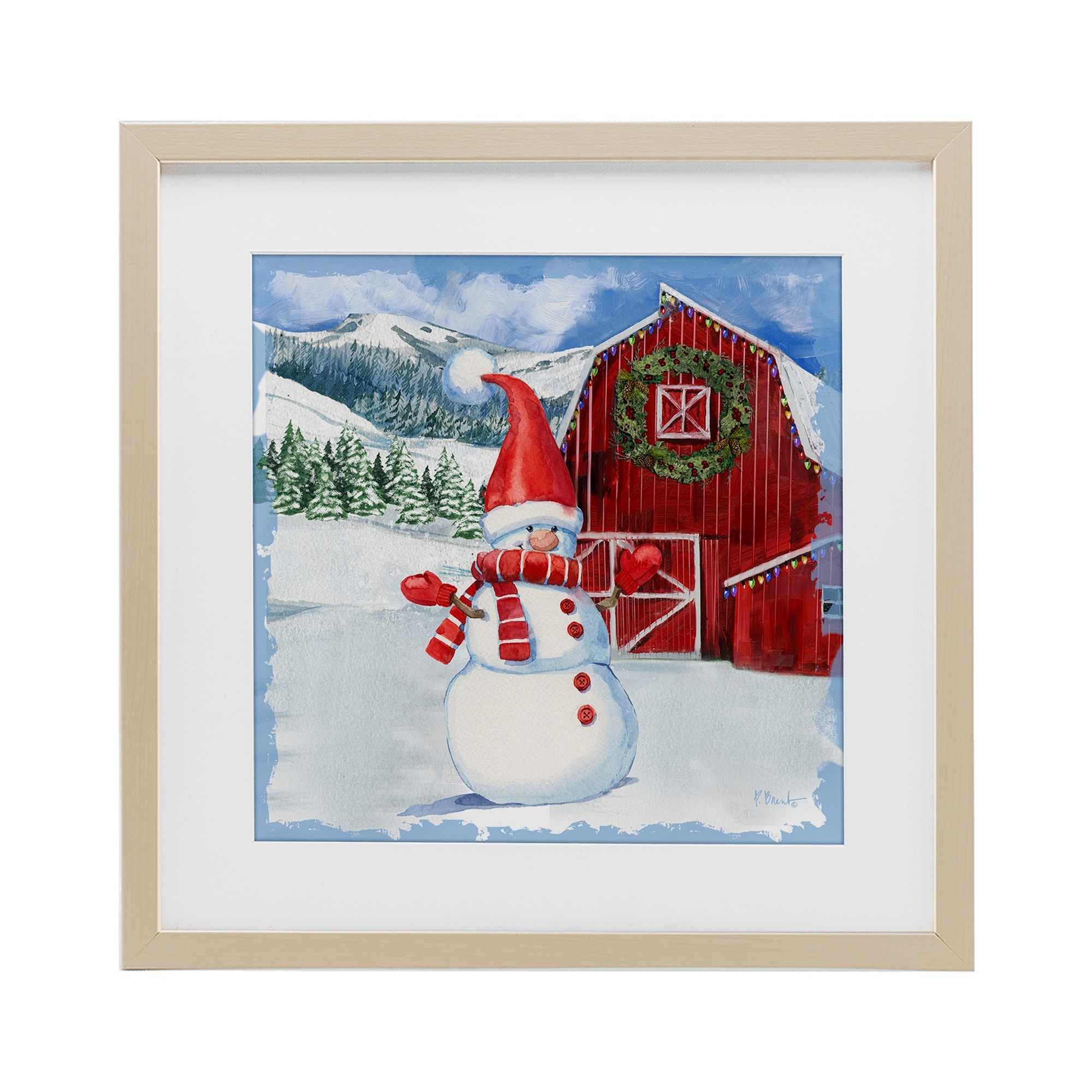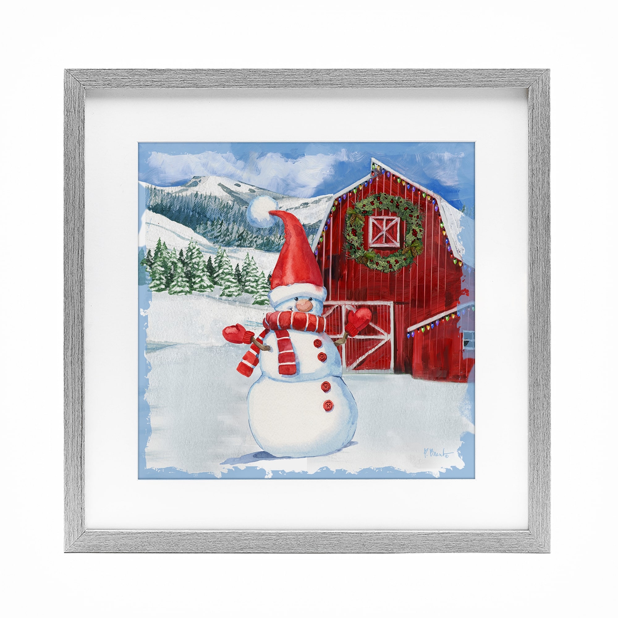 Stupell Frosty Barn Snowman Under Glass Framed Design By Paul Brent