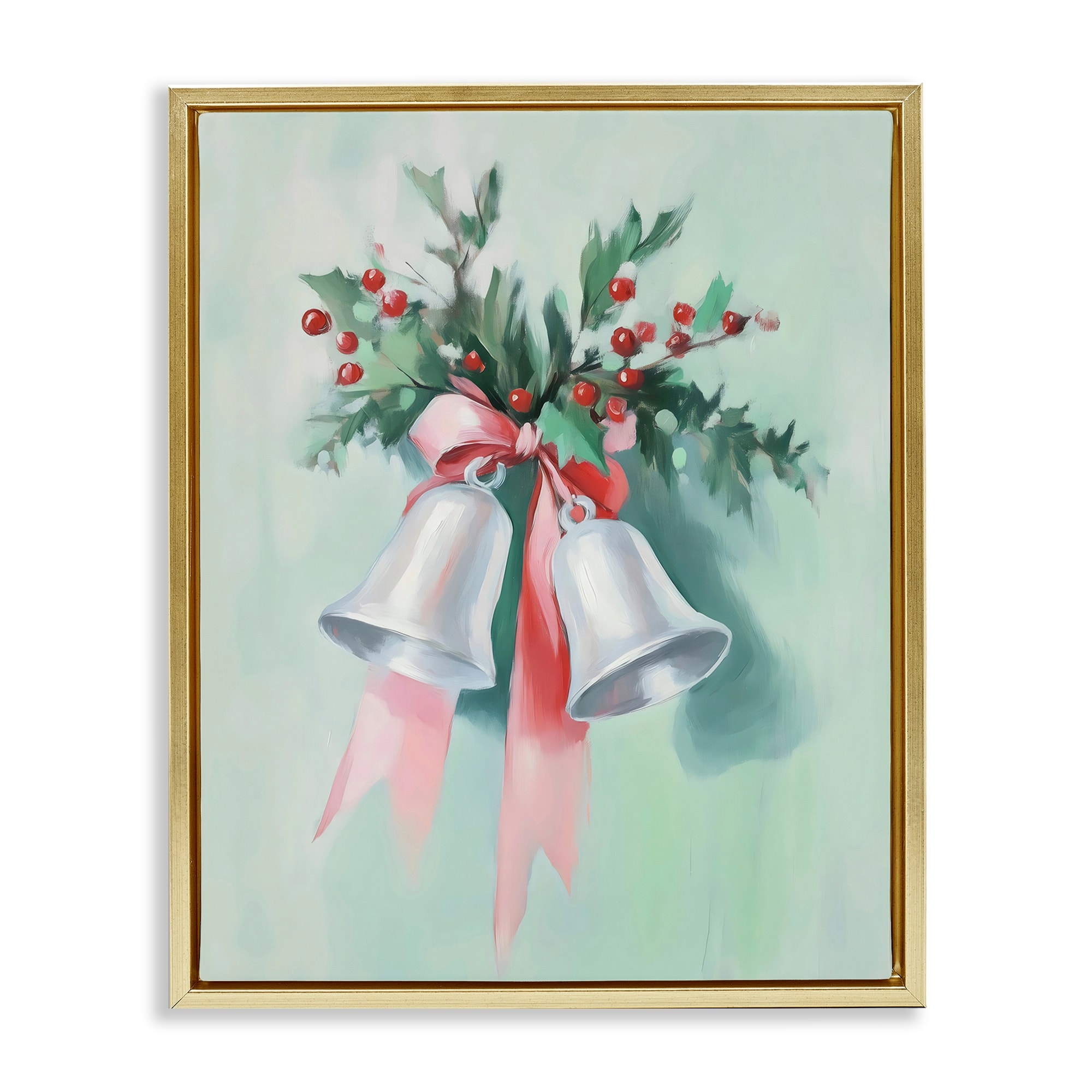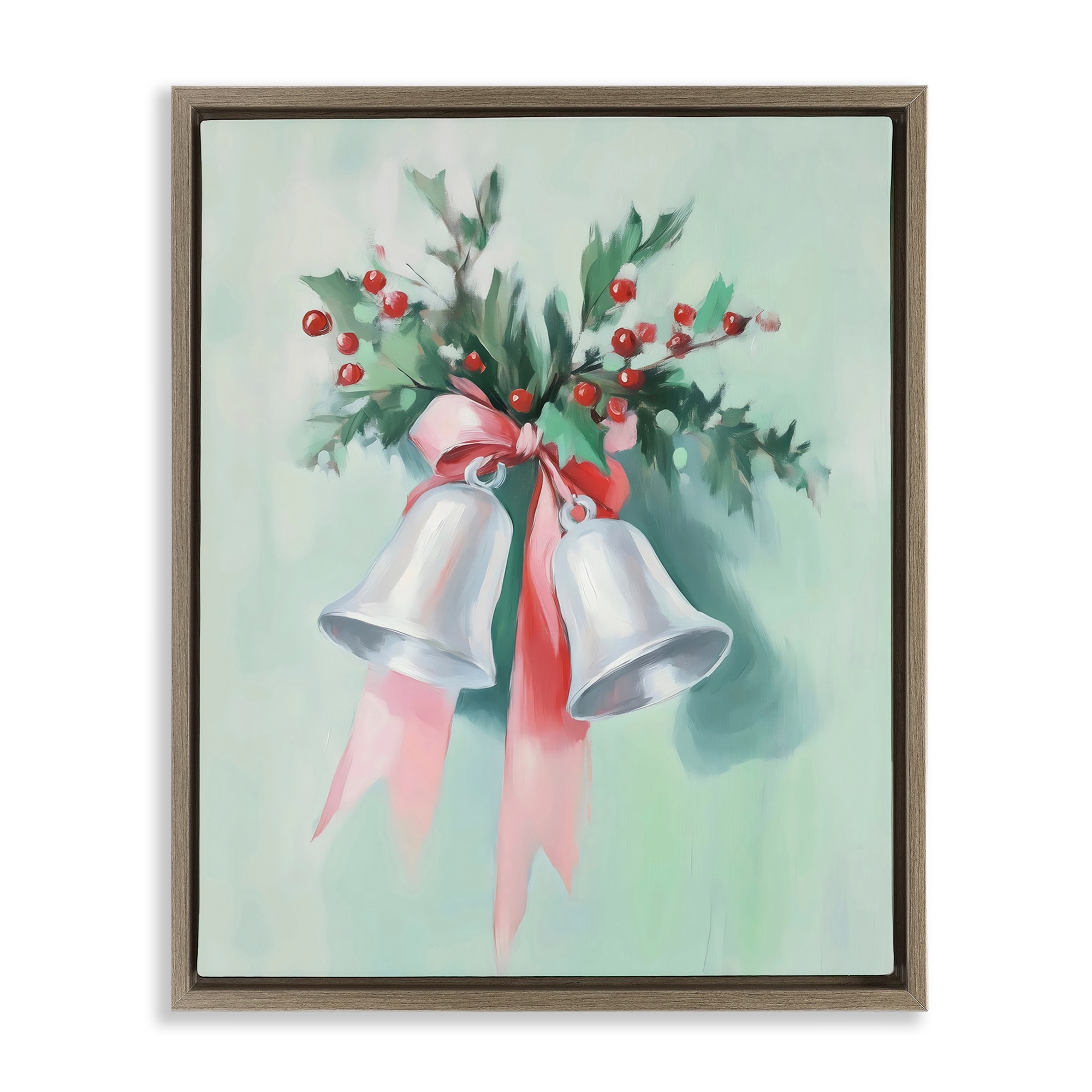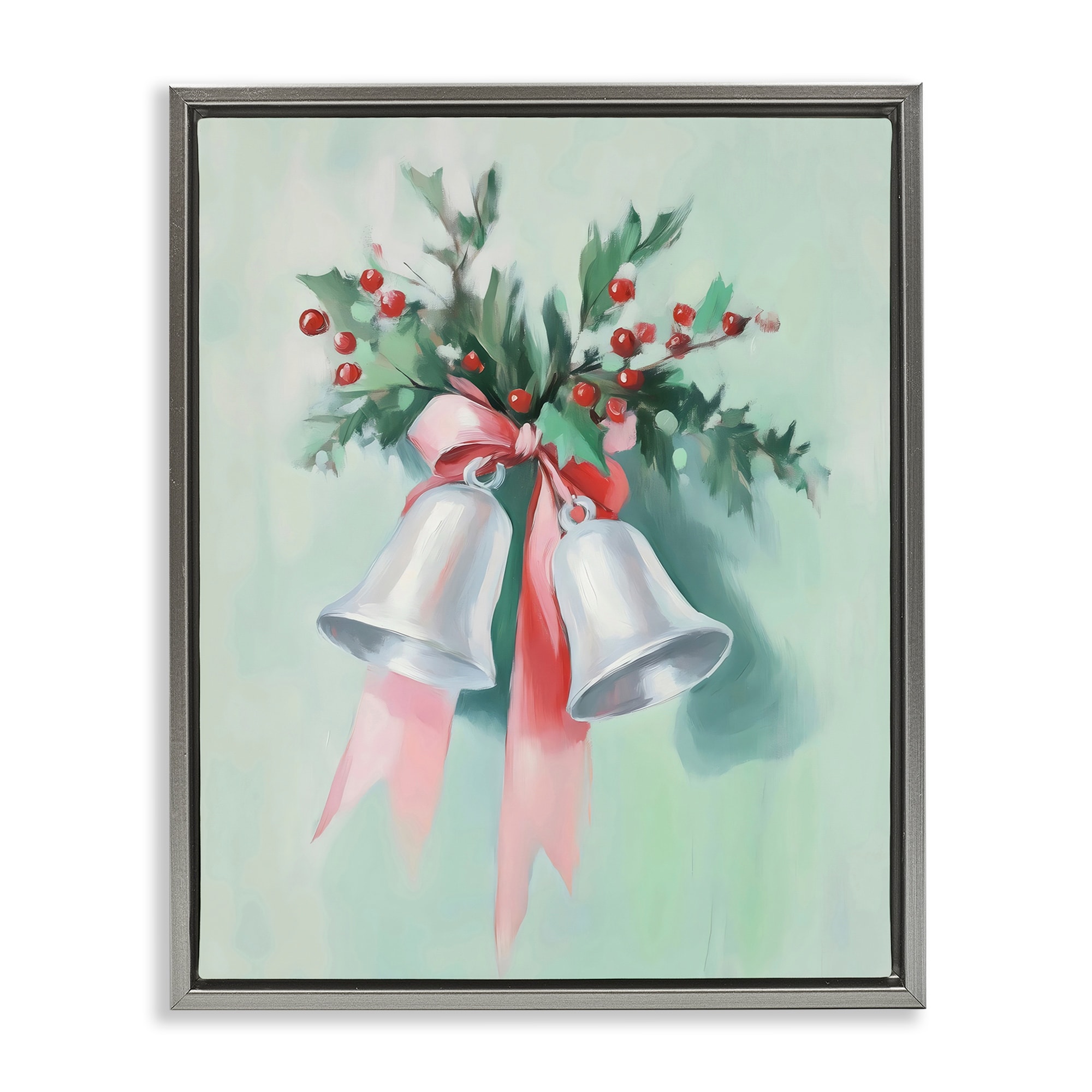 Stupell Festive Silver Bells Framed Floater Canvas Wall Art Design By Arlington Prints
