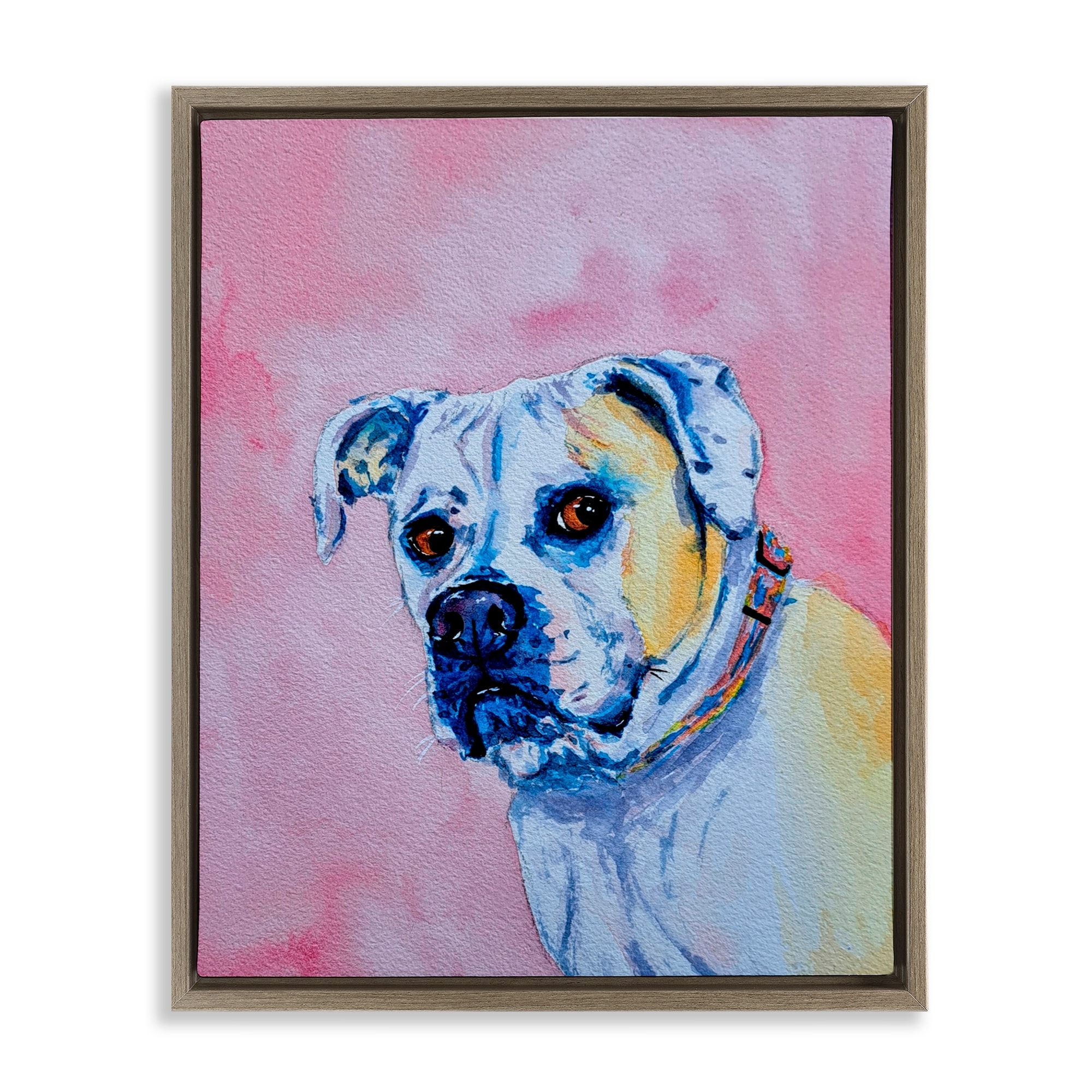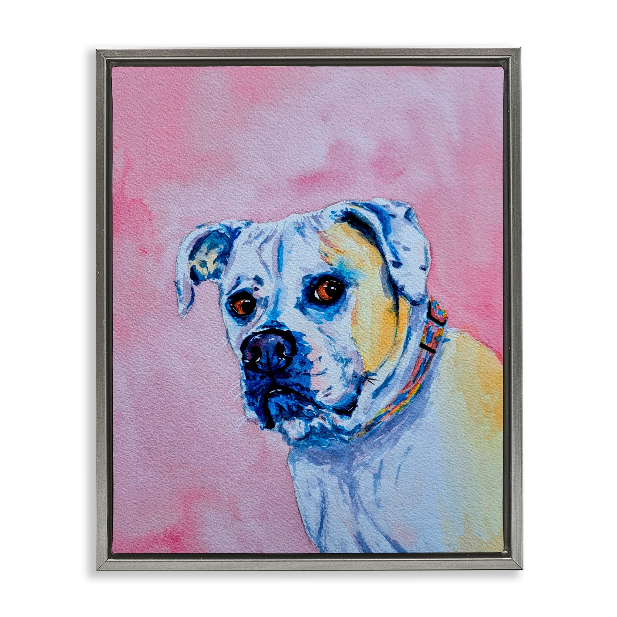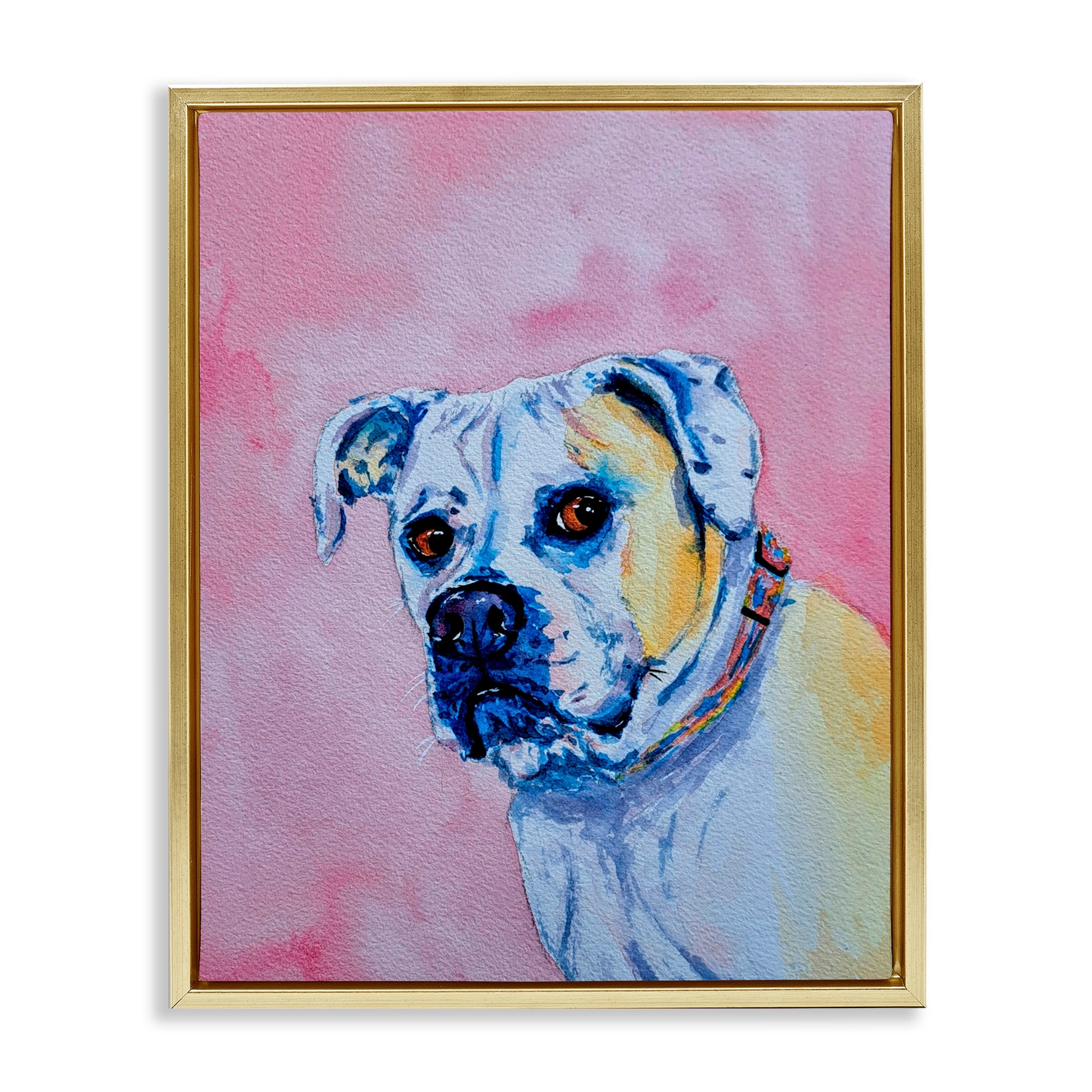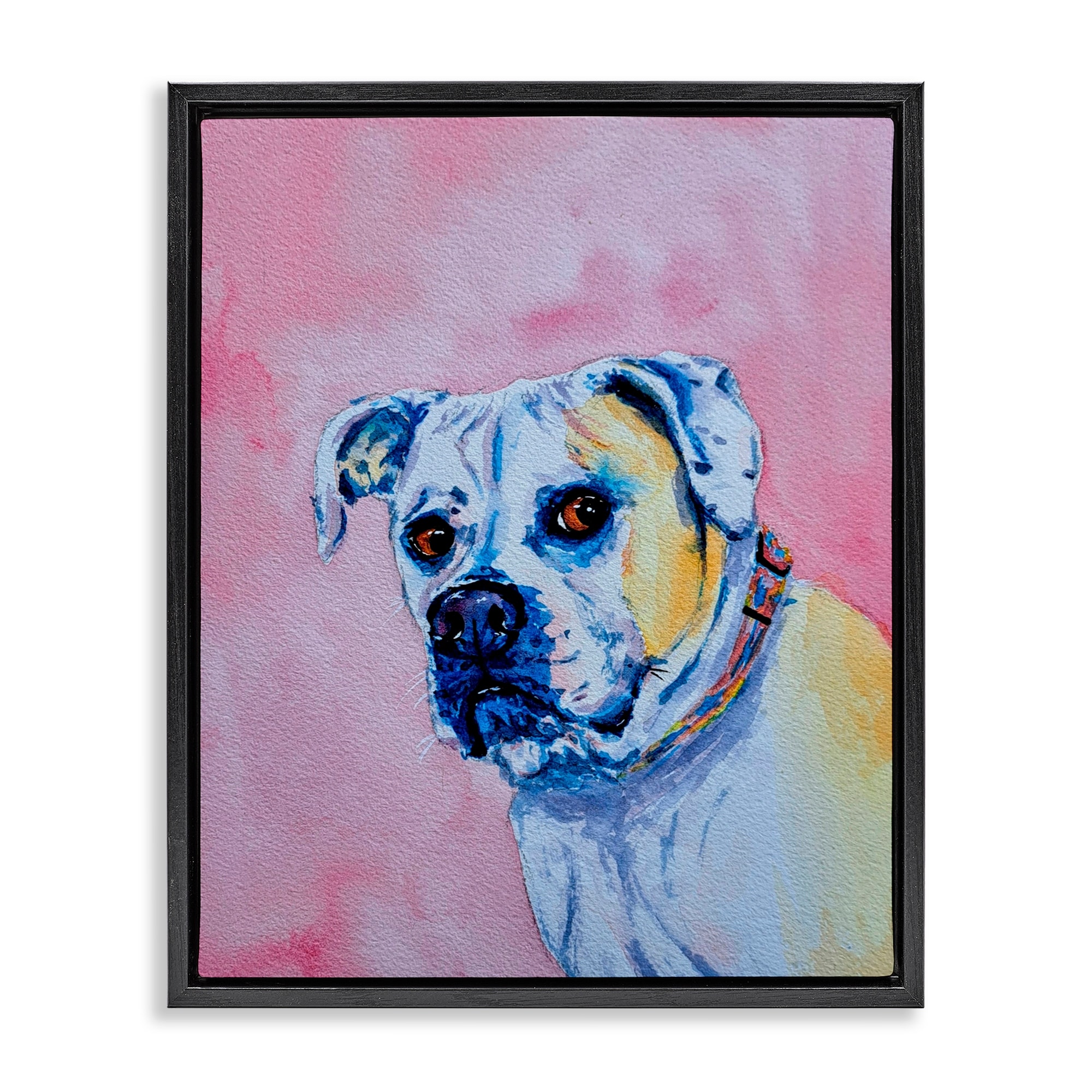 Stupell Gazing Dog on Pink Framed Floater Canvas Wall Art Design By Tatiana Roberts