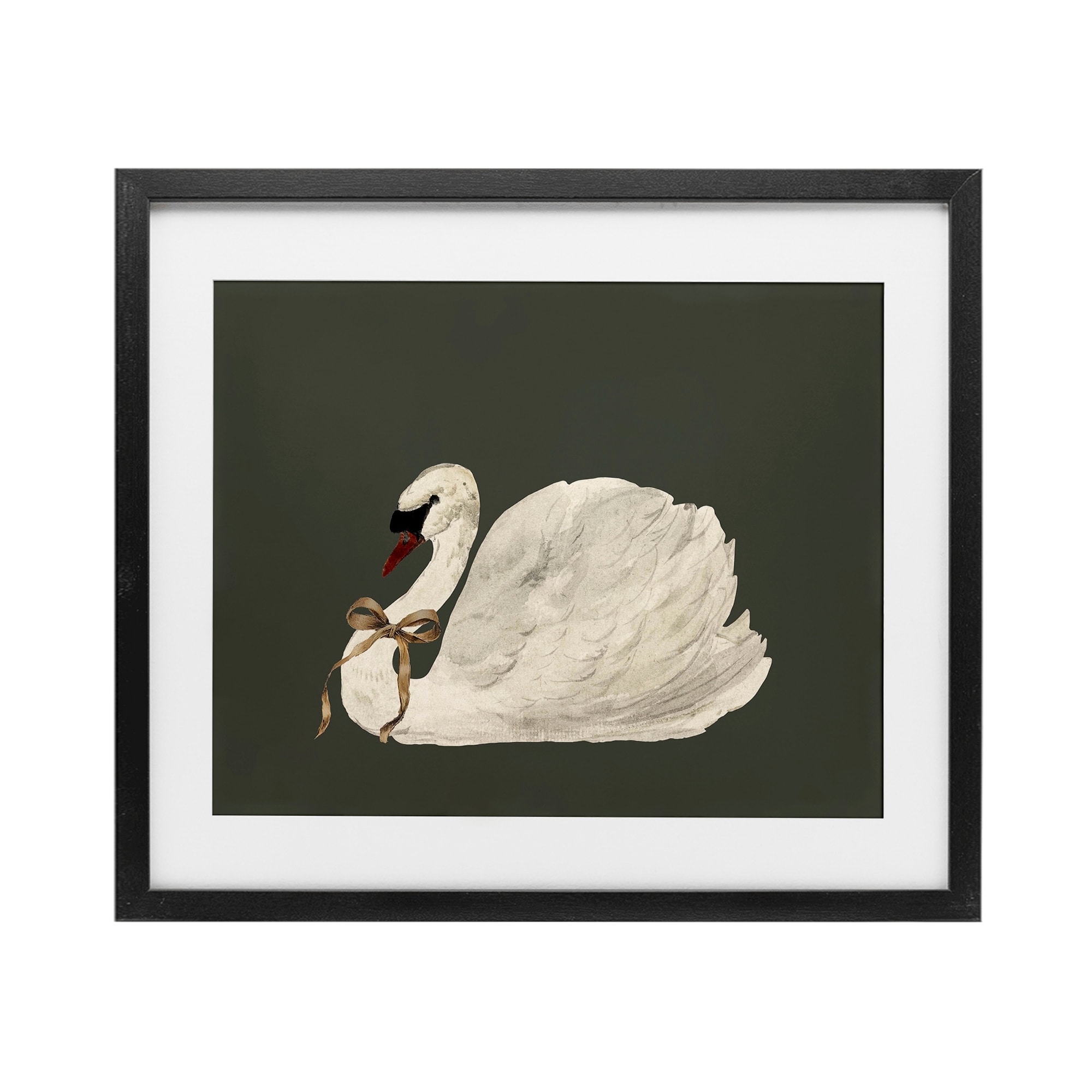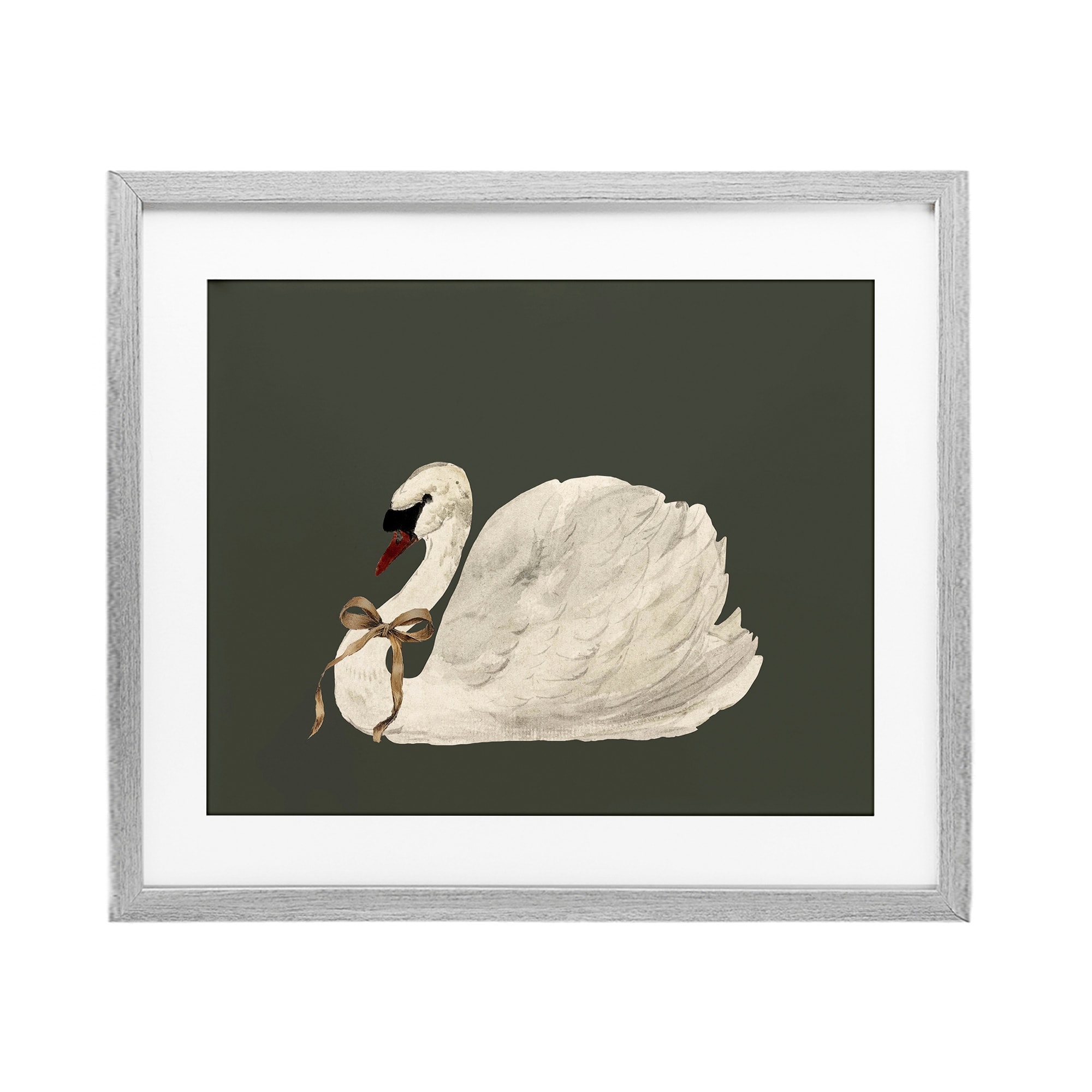 Stupell Holiday Swan with Ribbon Under Glass Framed Design By Lettered and Lined