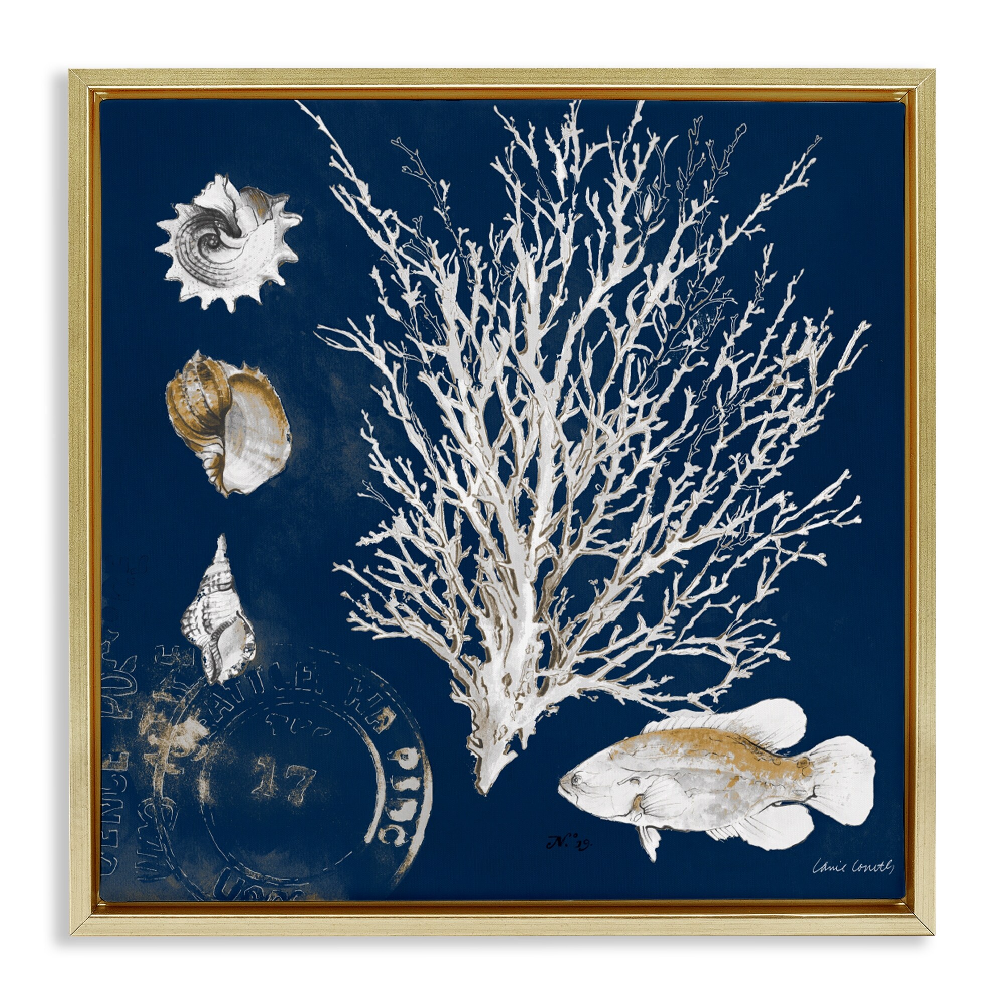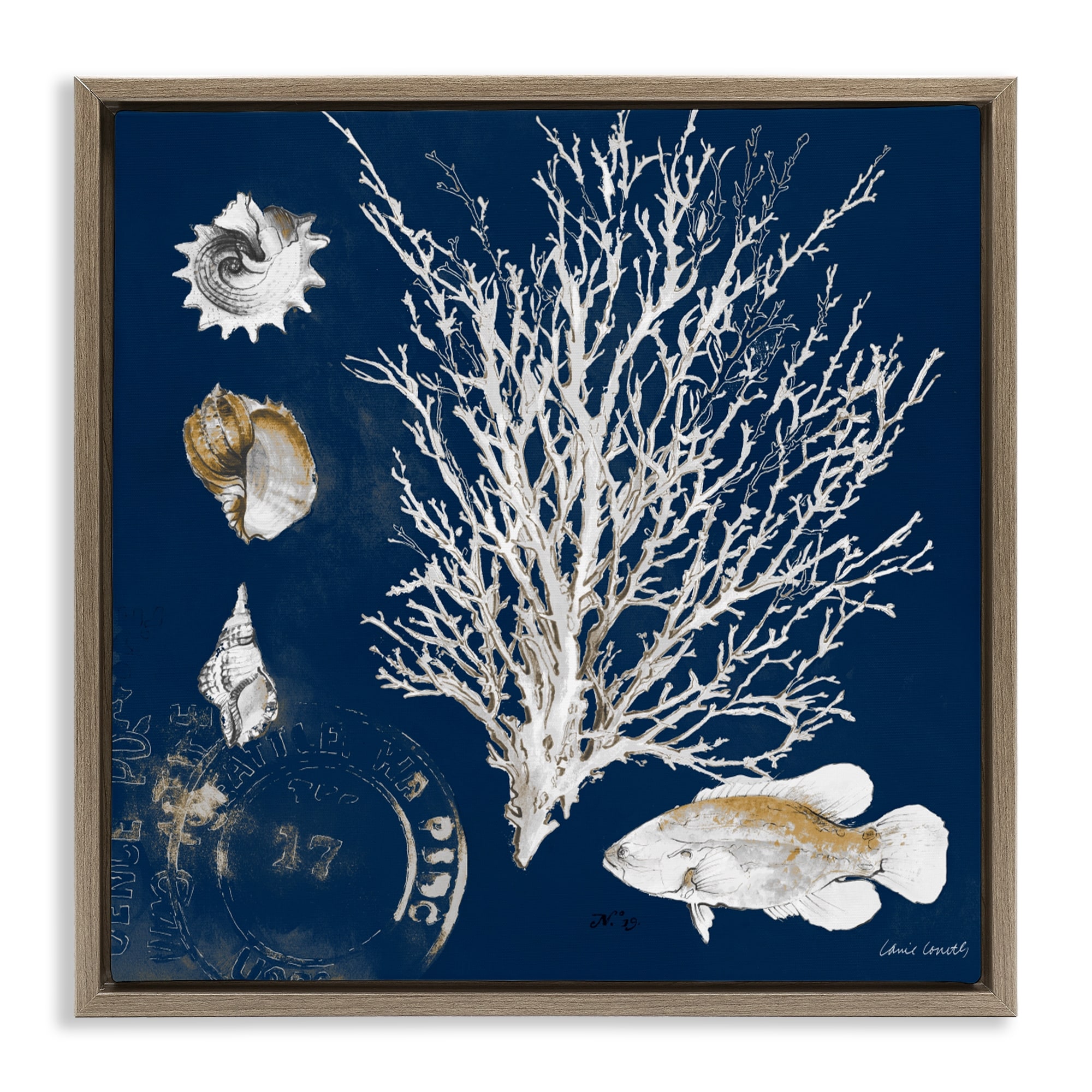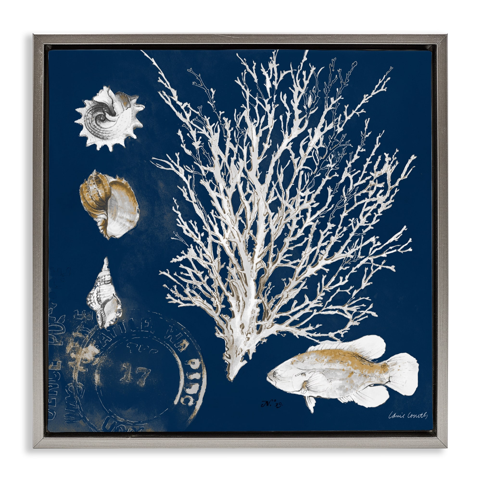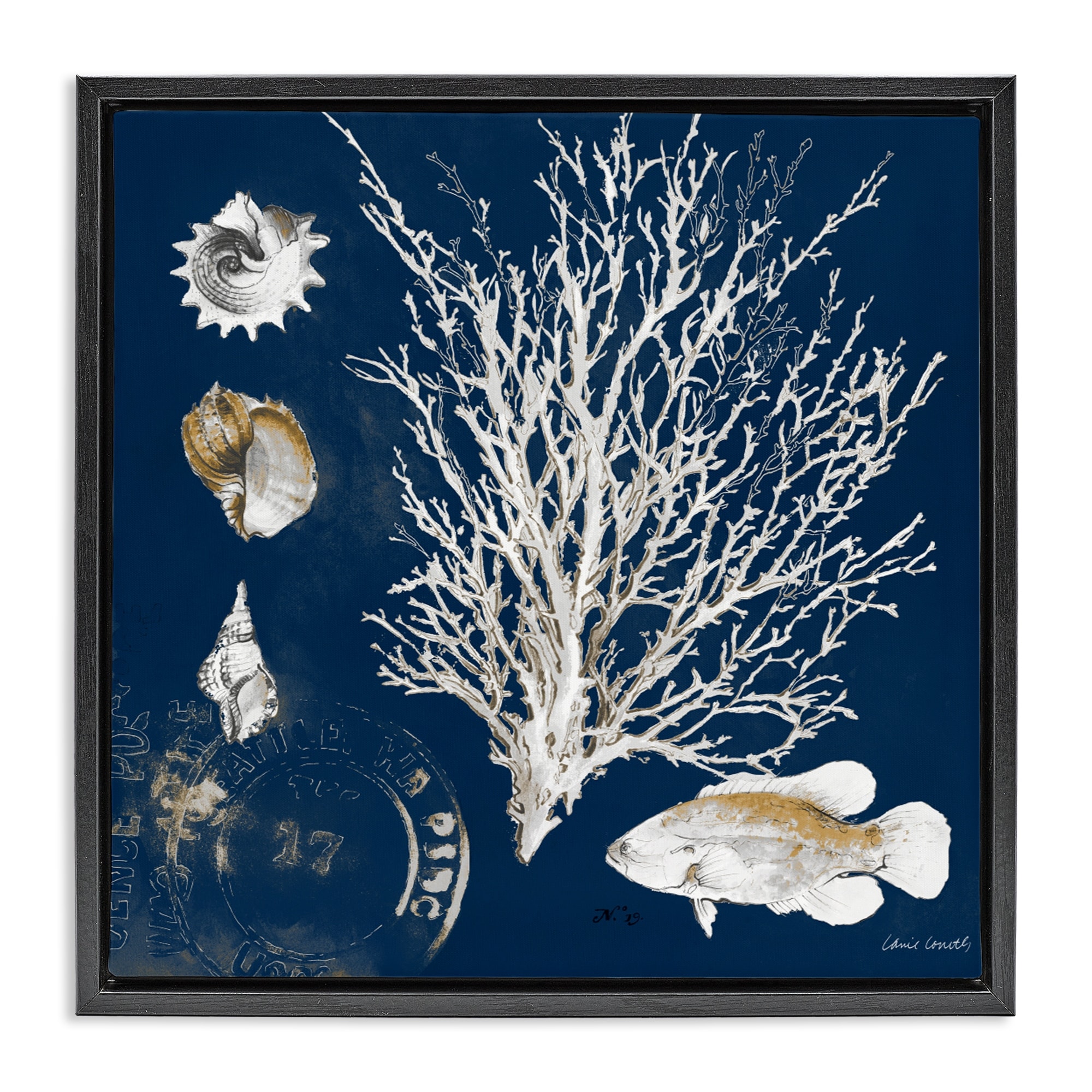 Stupell Coral Medley on Navy Framed Floater Canvas Wall Art Design By Lanie Loreth