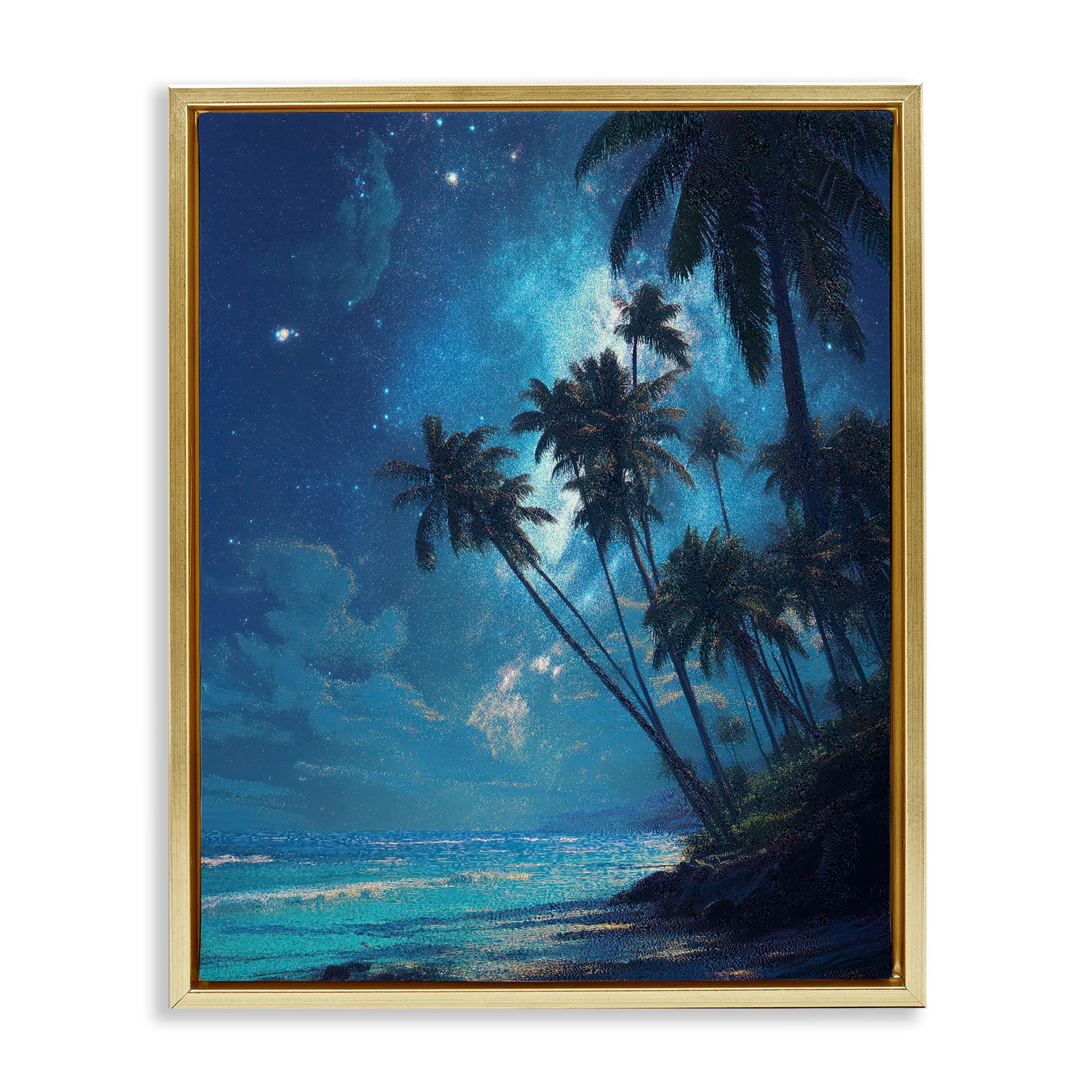 Stupell Moonlit Beach Palm Trees Framed Floater Canvas Wall Art Design By Ziwei Li