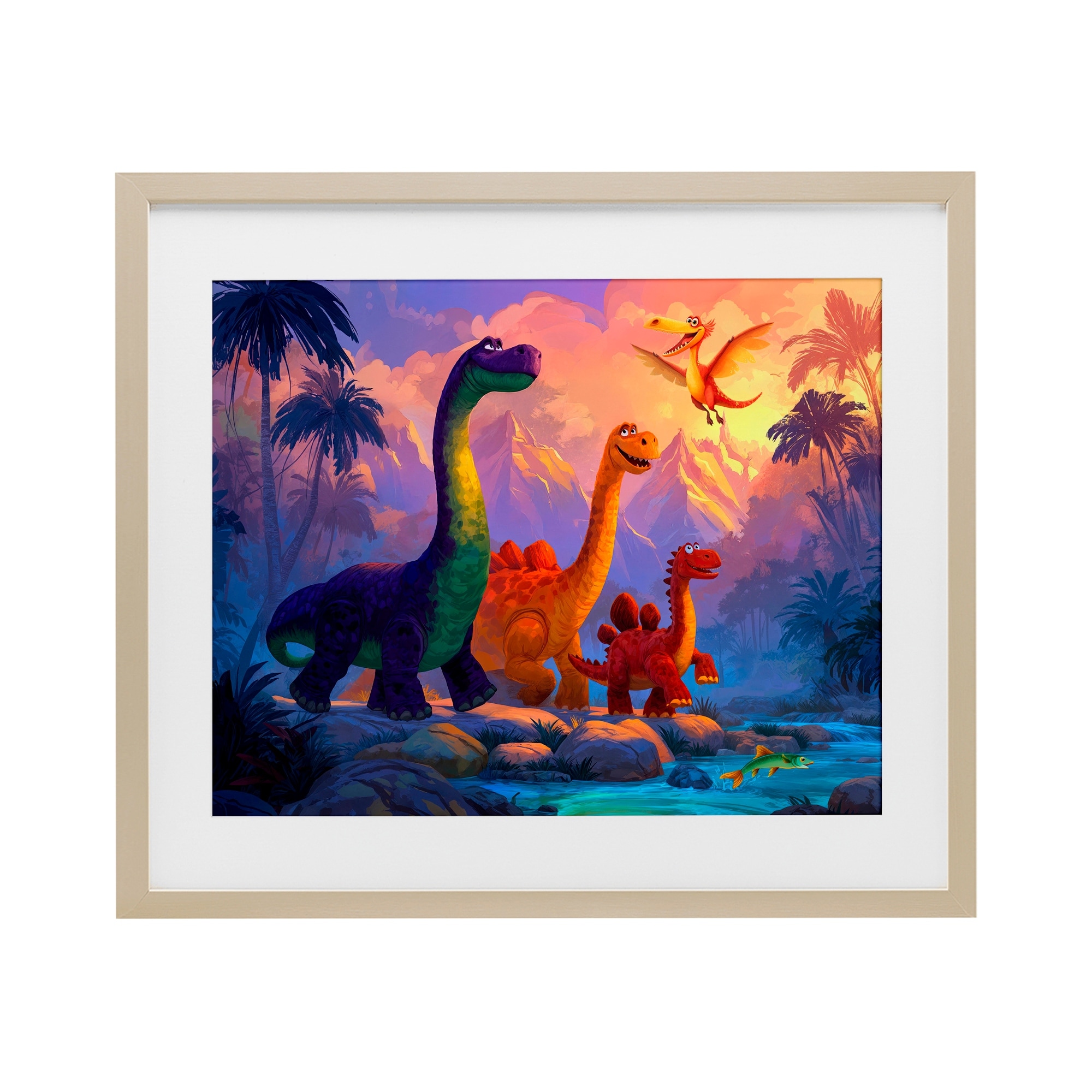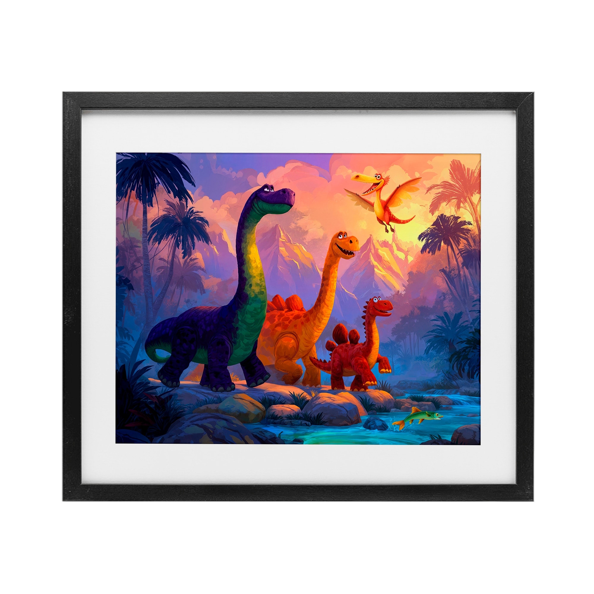 Stupell Dinosaur Friends In The Jungle Under Glass Framed Design By Wumples