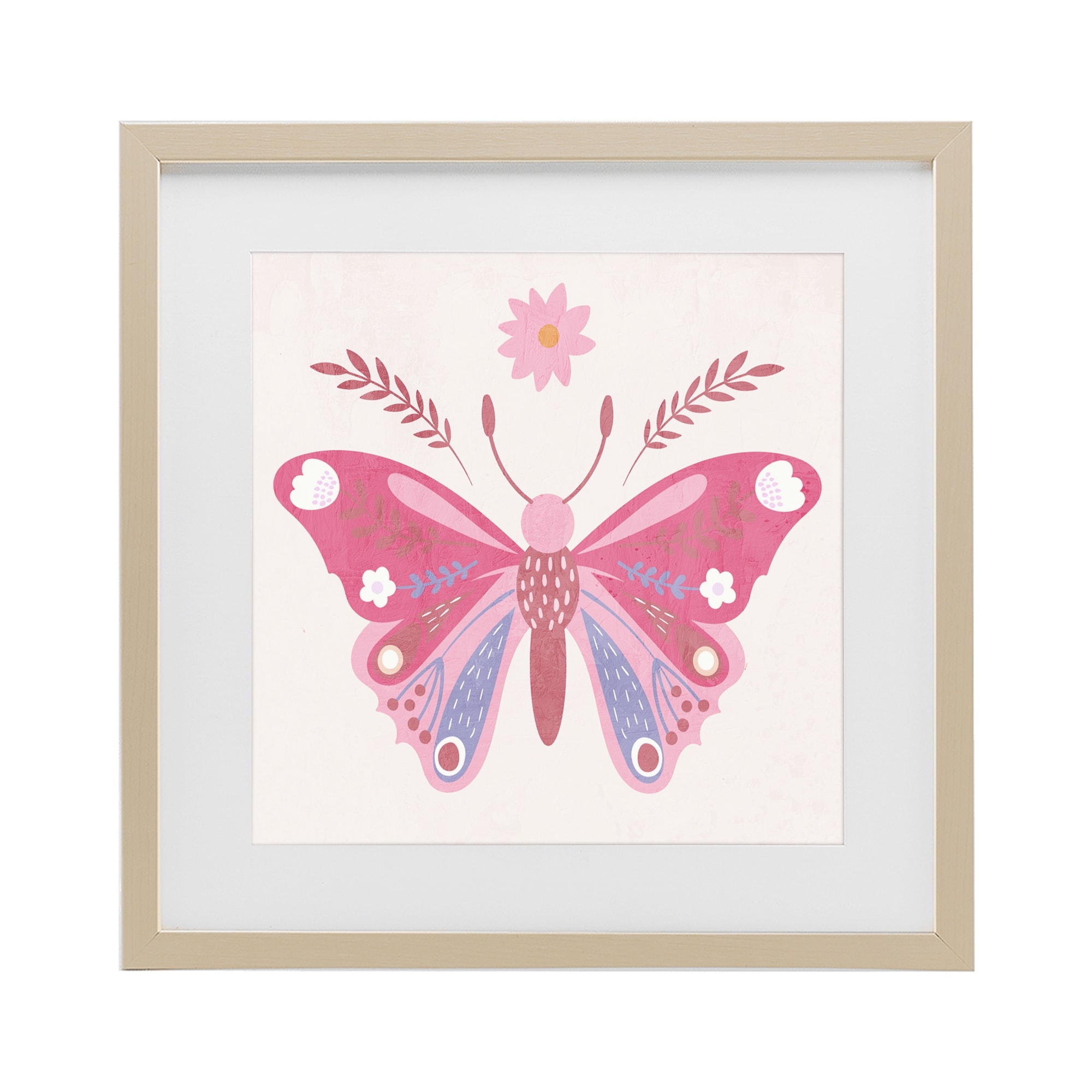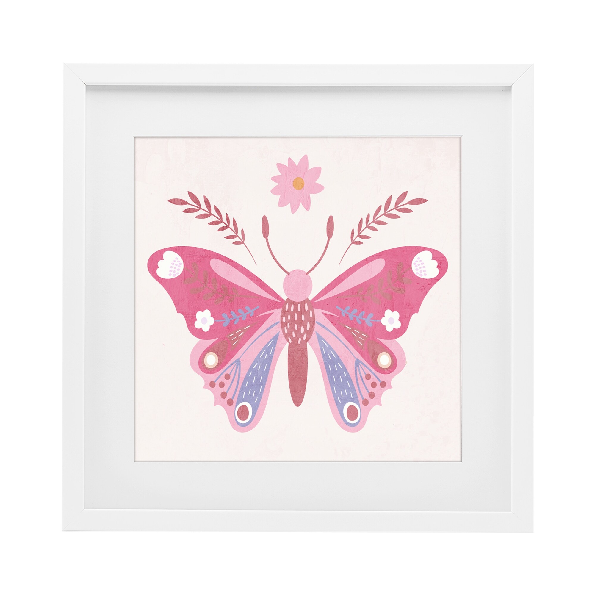 Stupell Folk Butterfly in Pink Under Glass Framed Design By Kim Allen