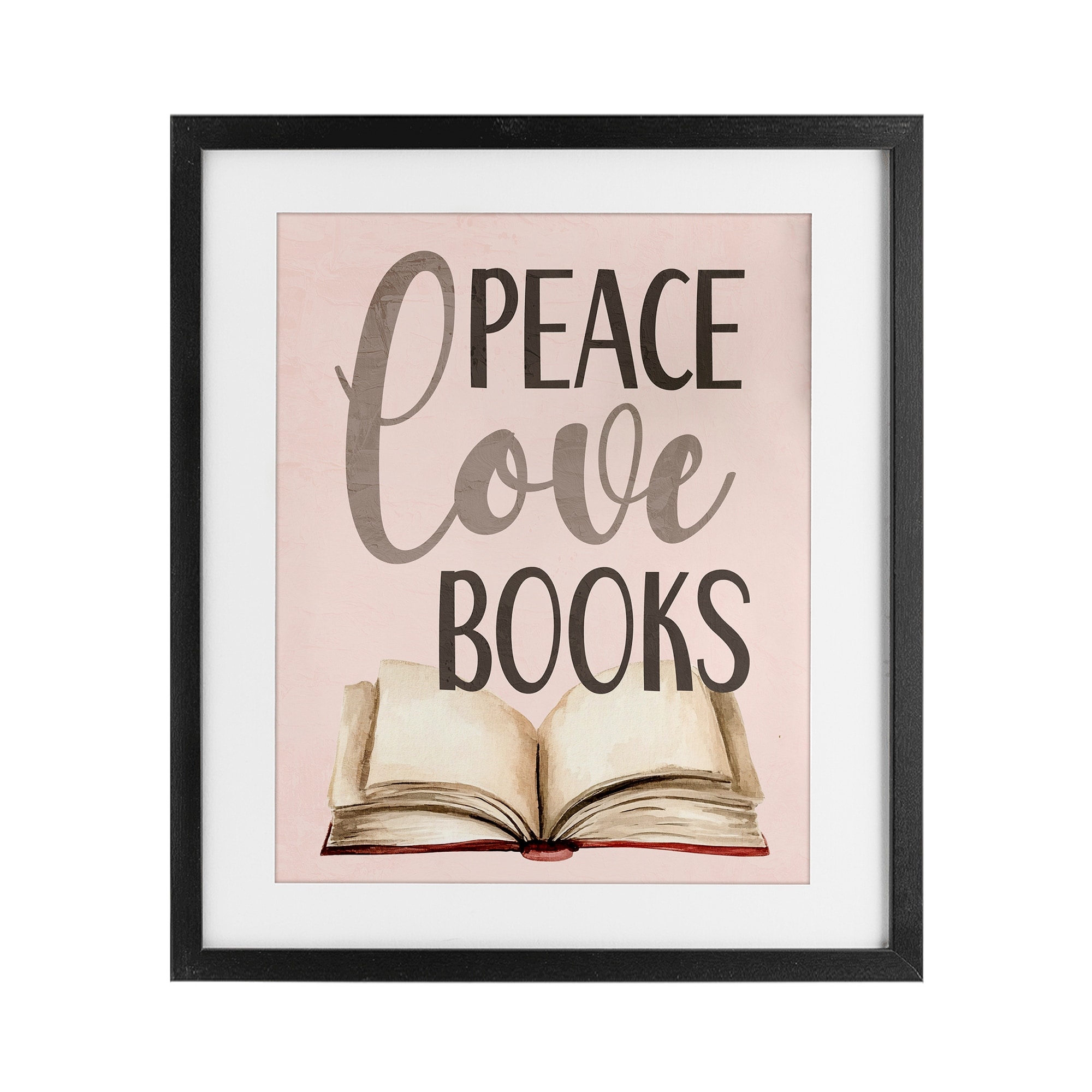 Stupell Peace Love Books Under Glass Framed Design By Kim Allen