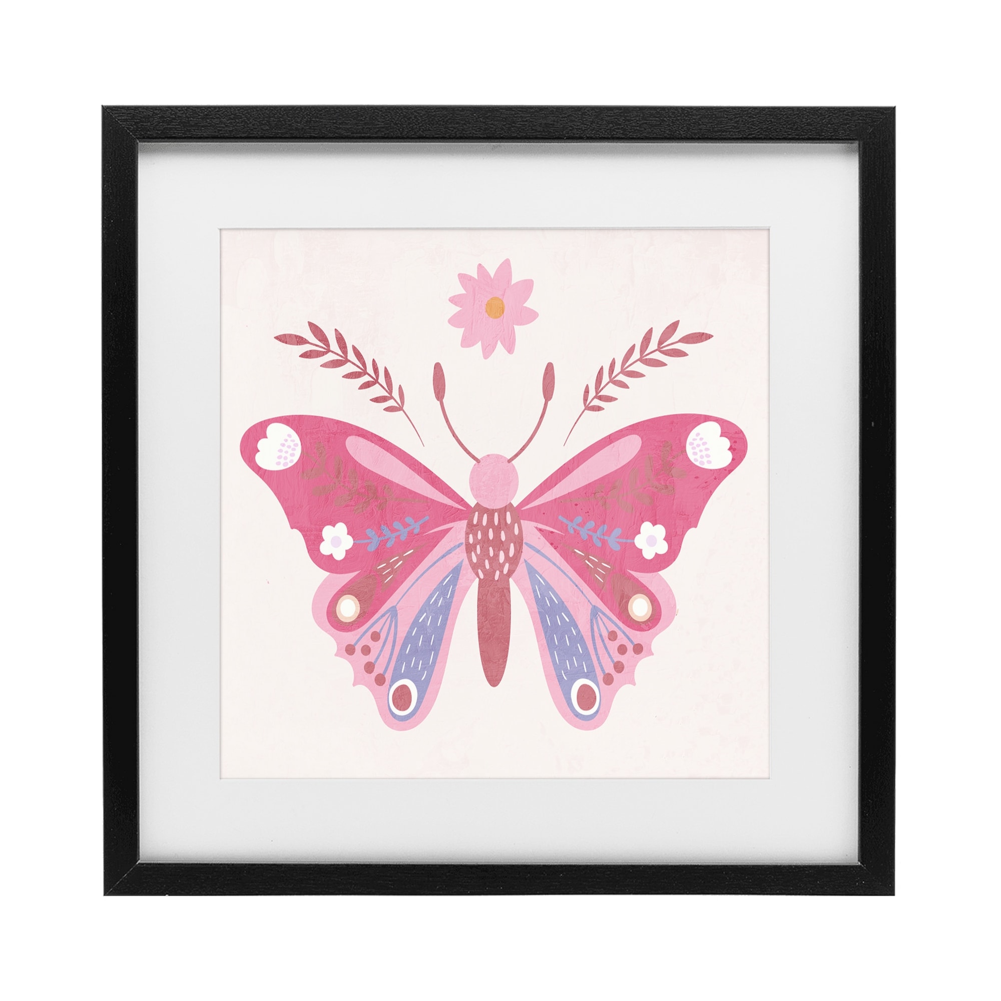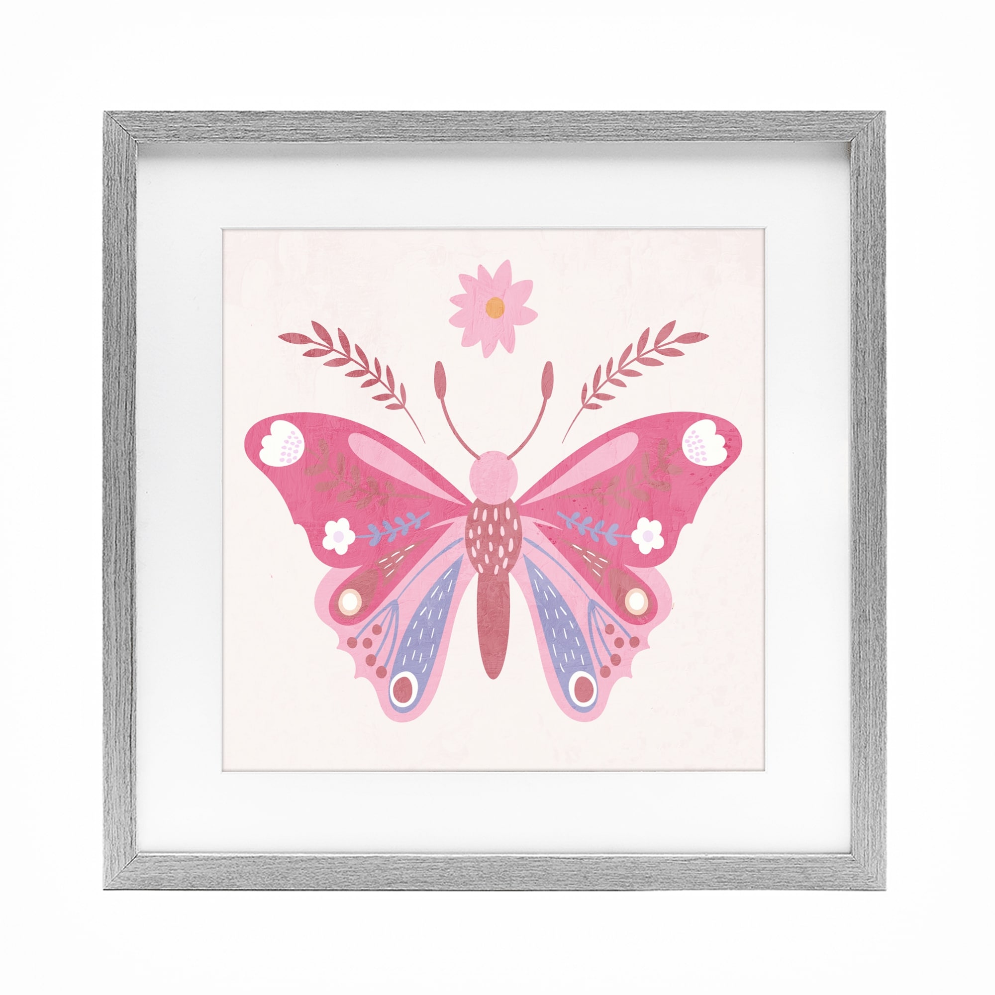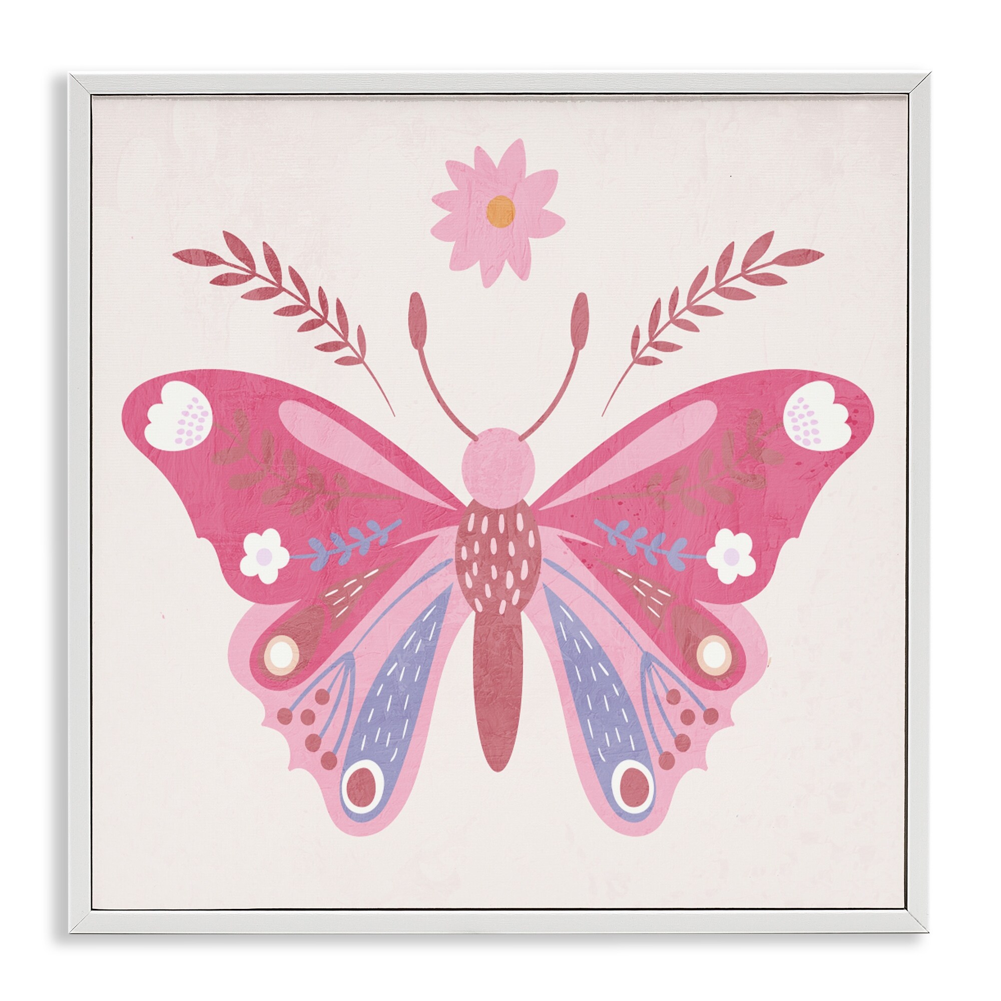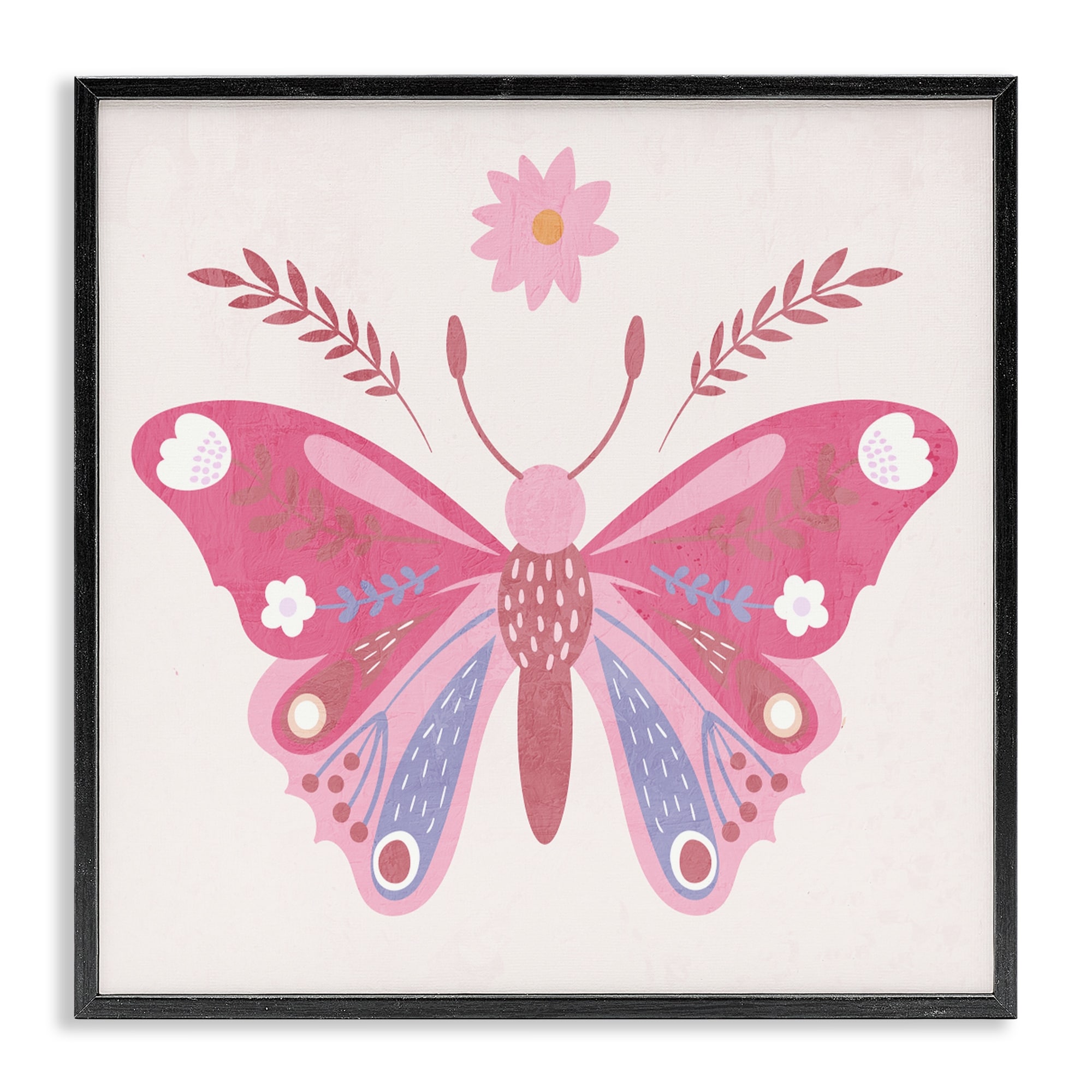 Stupell Folk Butterfly in Pink Framed Giclee Art Design By Kim Allen