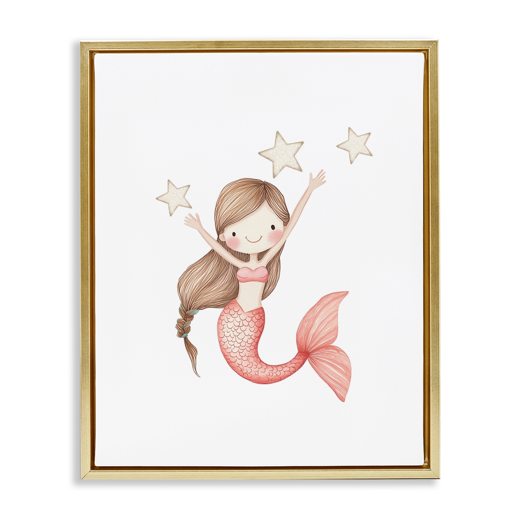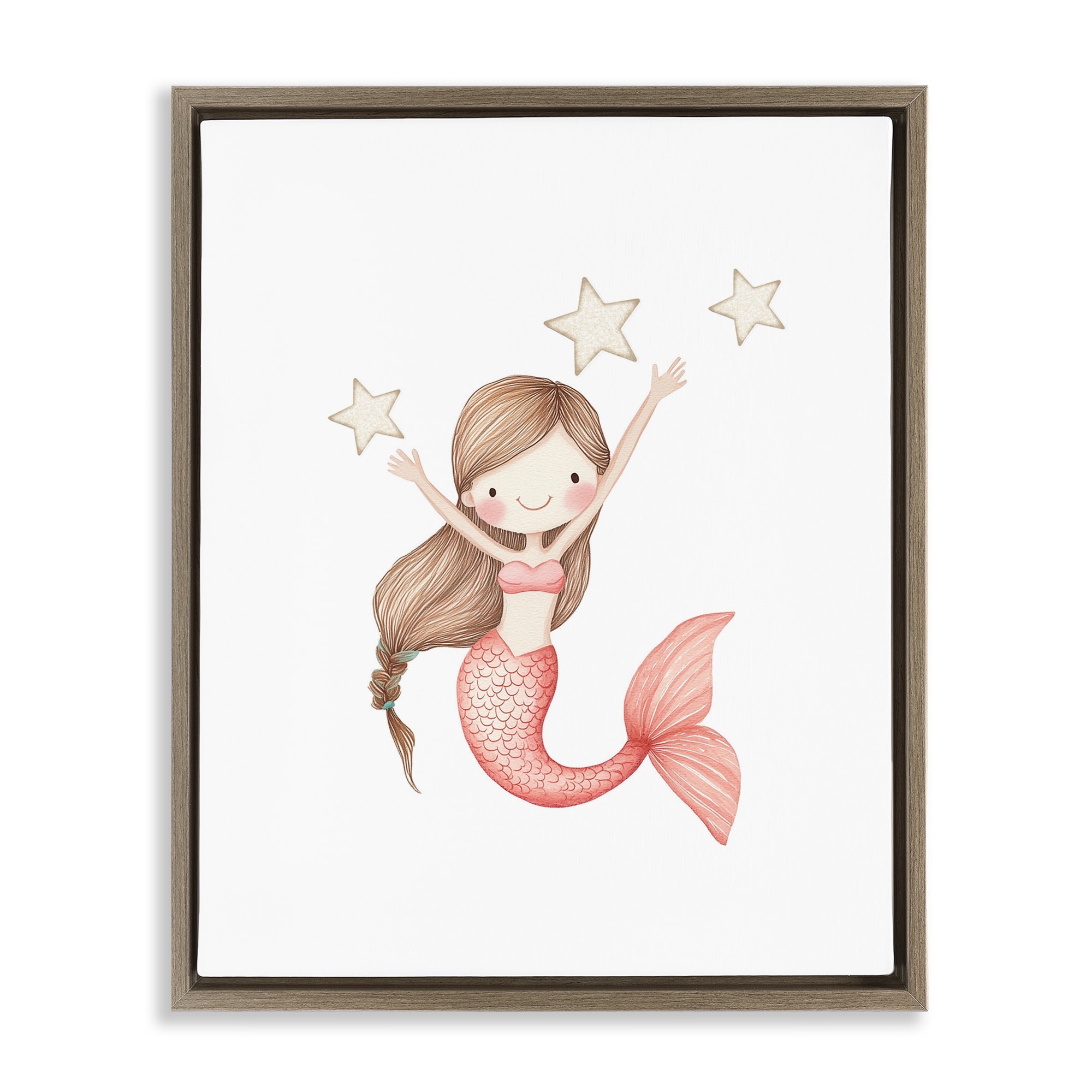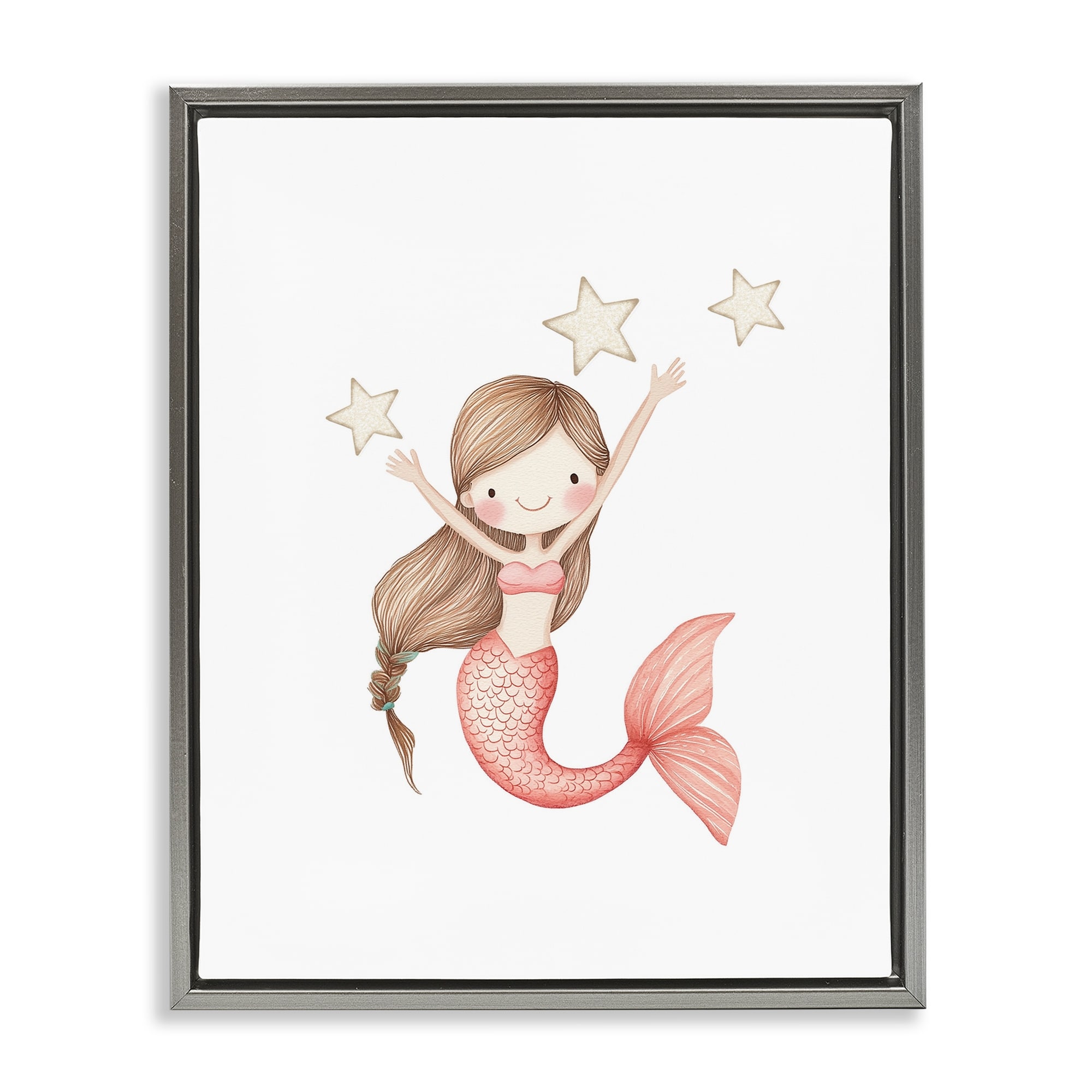 Stupell Pink Mermaid and Stars Framed Floater Canvas Wall Art Design By Christine Simpson Art