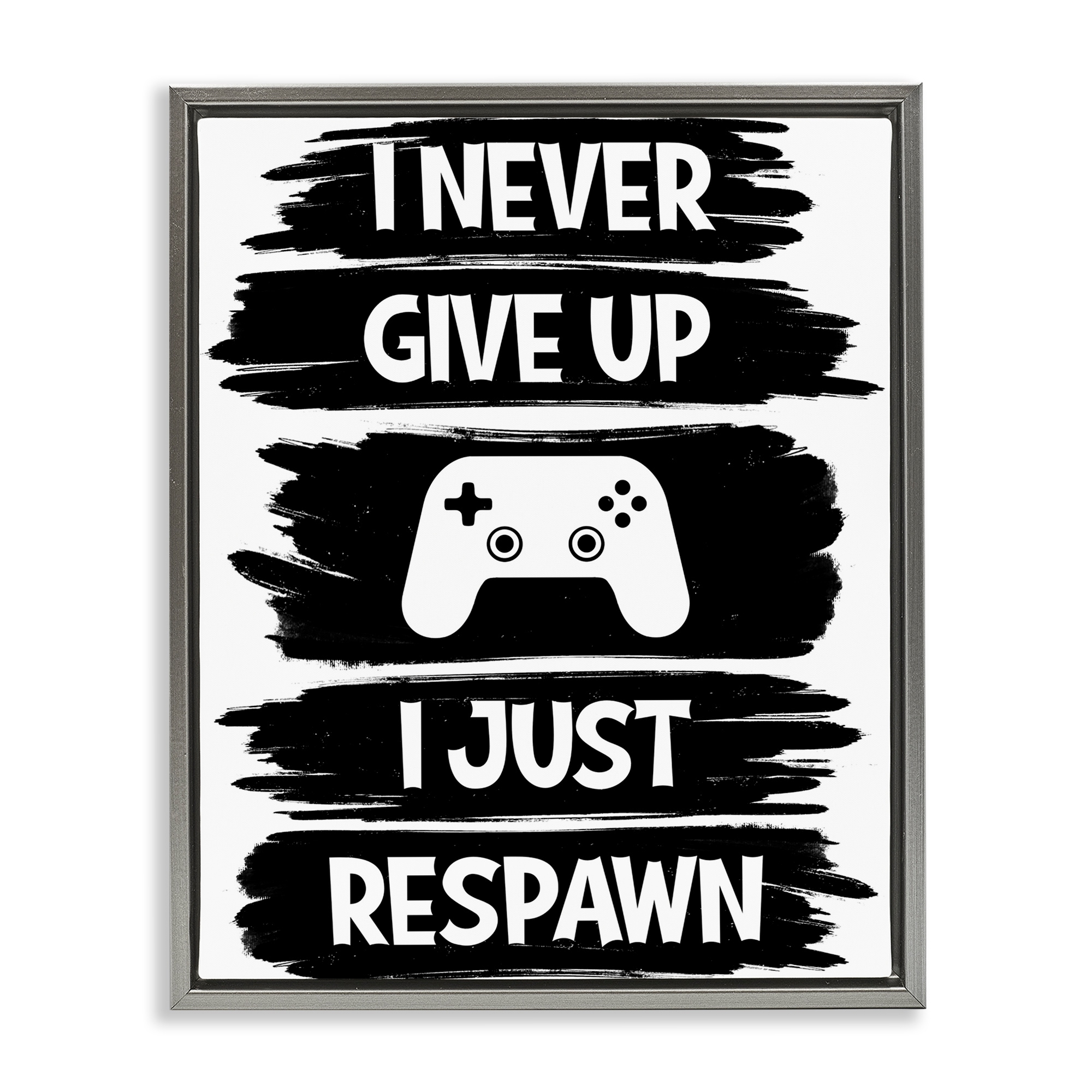 Stupell Never Give Up Just Respawn Framed Floater Canvas Wall Art Design By Marcus Prime
