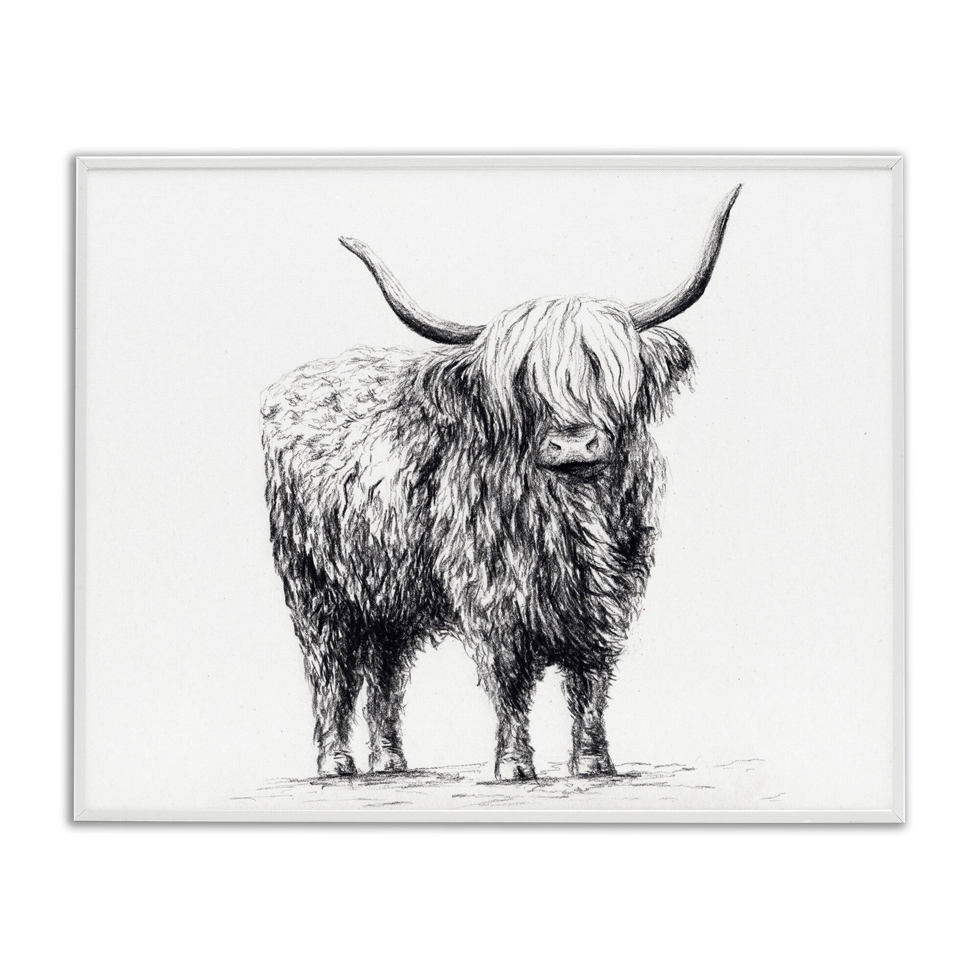 Stupell Highland Cow in Charcoal Framed Giclee Art Design By Leah Noel Art