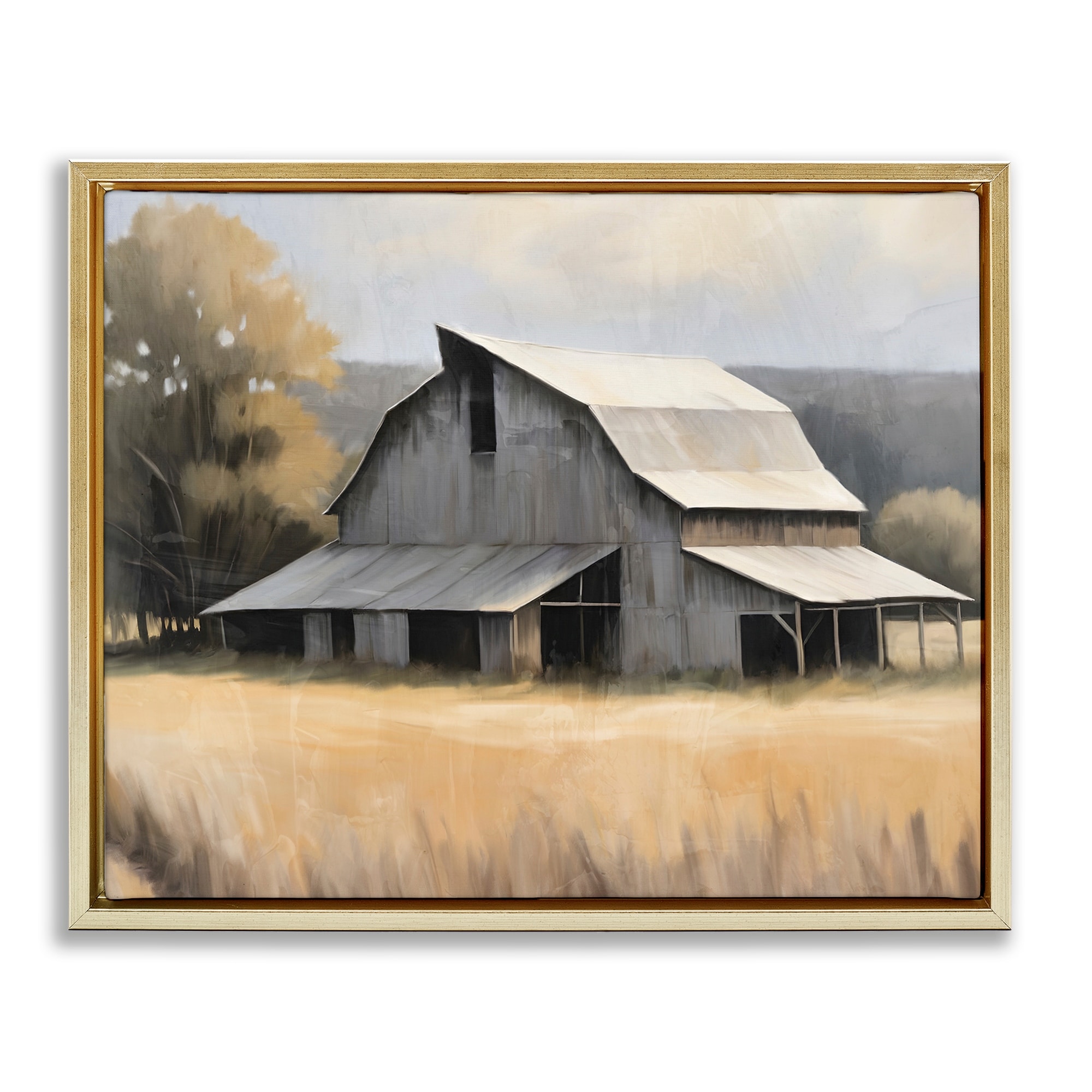 Stupell In The Field Farm Structure Framed Floater Canvas Wall Art Design By Kim Allen