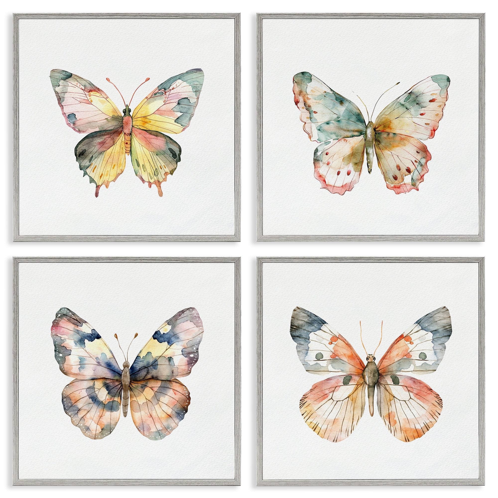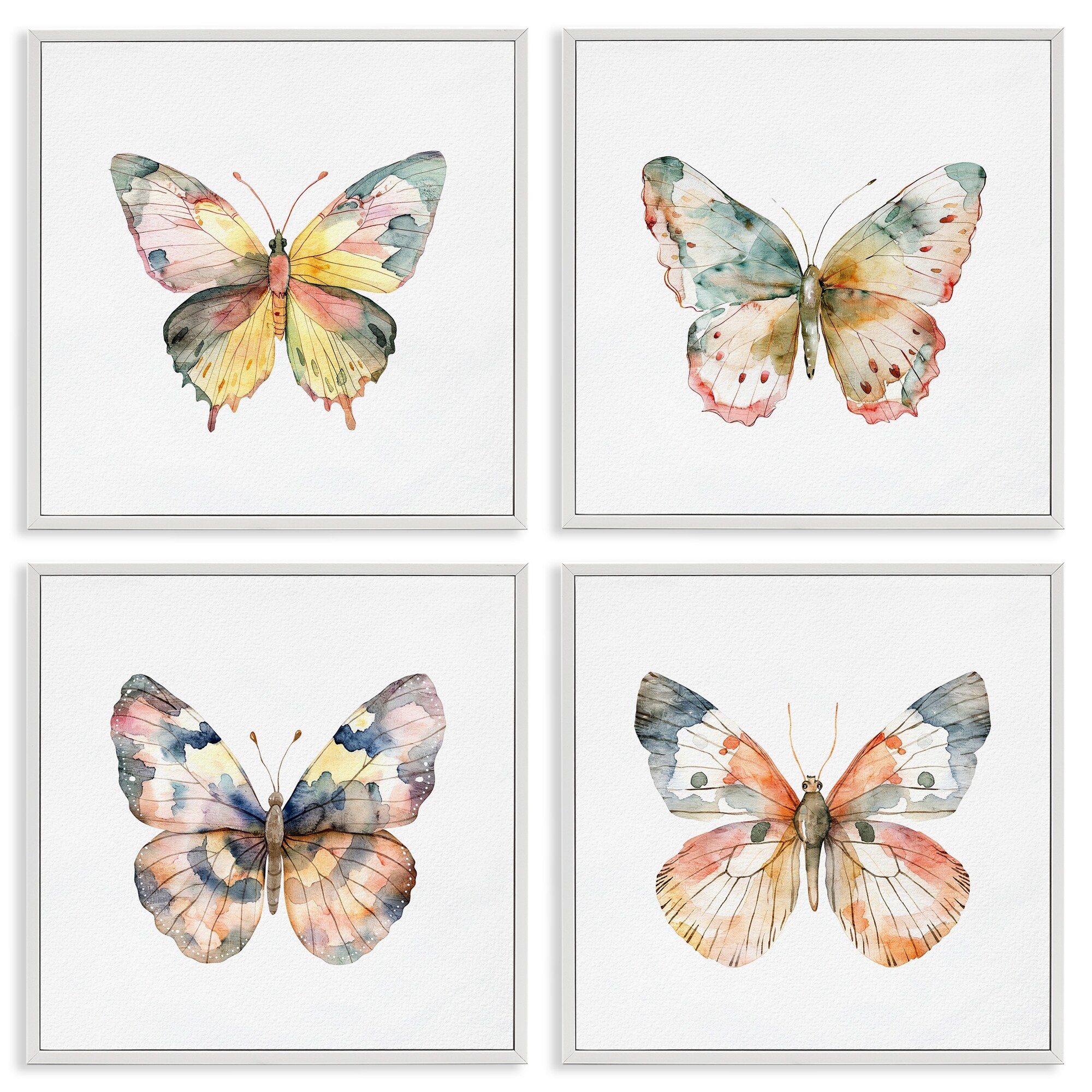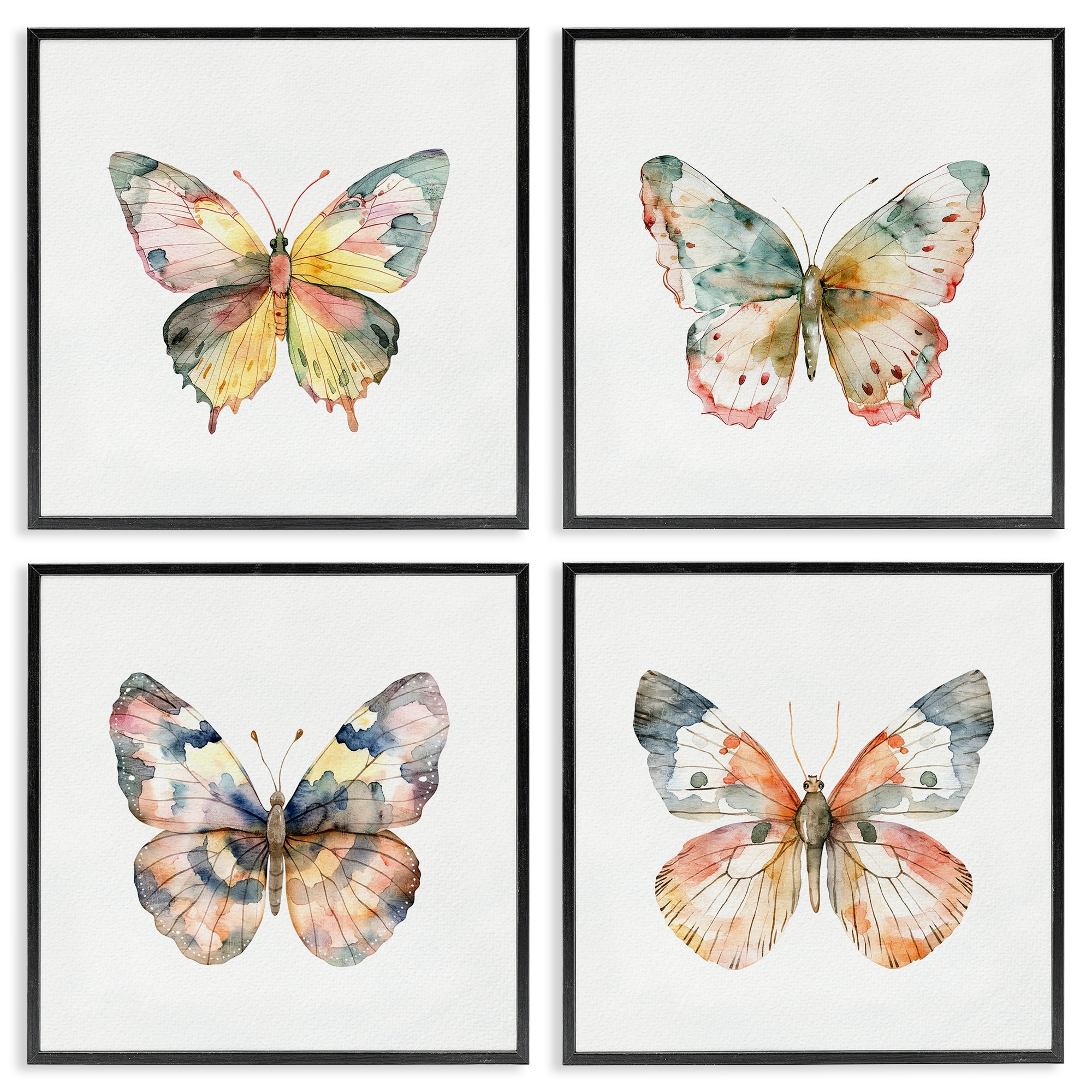 Stupell Watercolor Butterfly Forms Framed Giclee Art Design By Kim Allen (Set of 4)