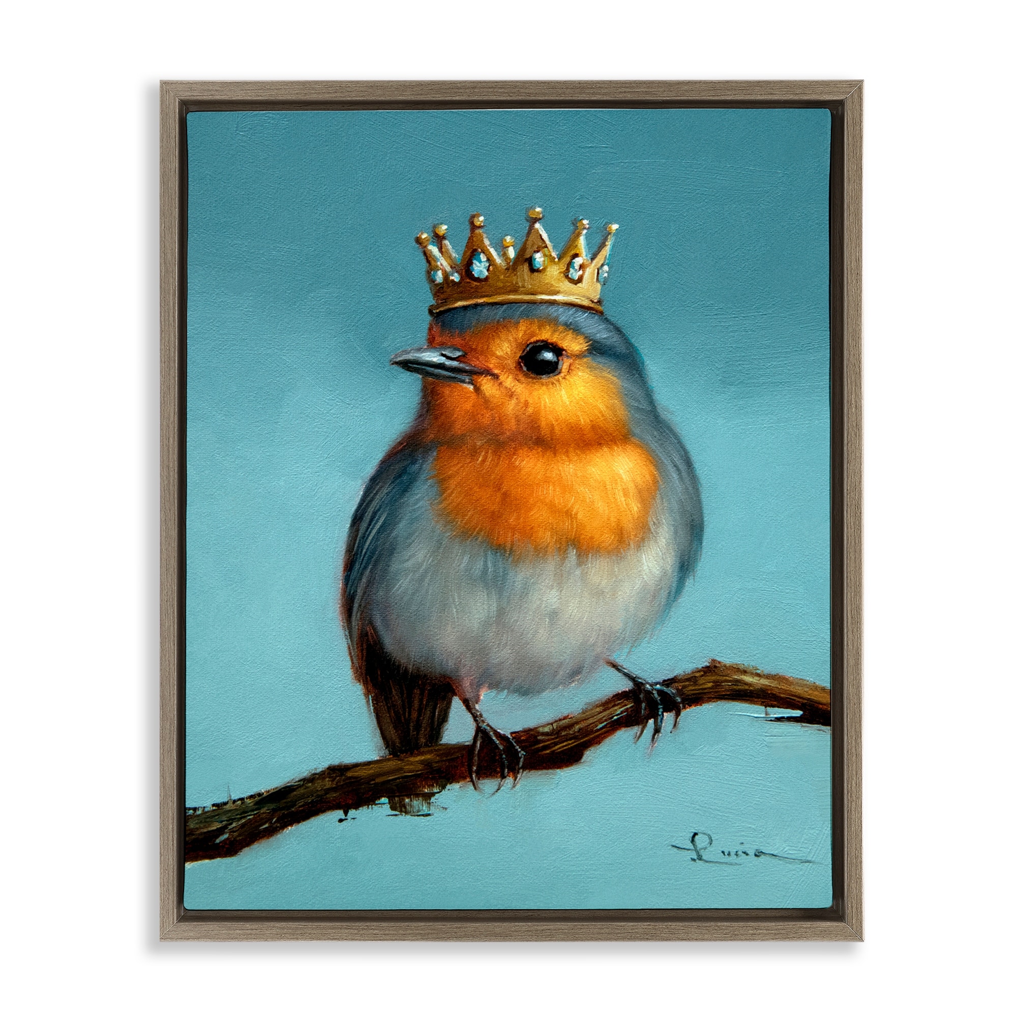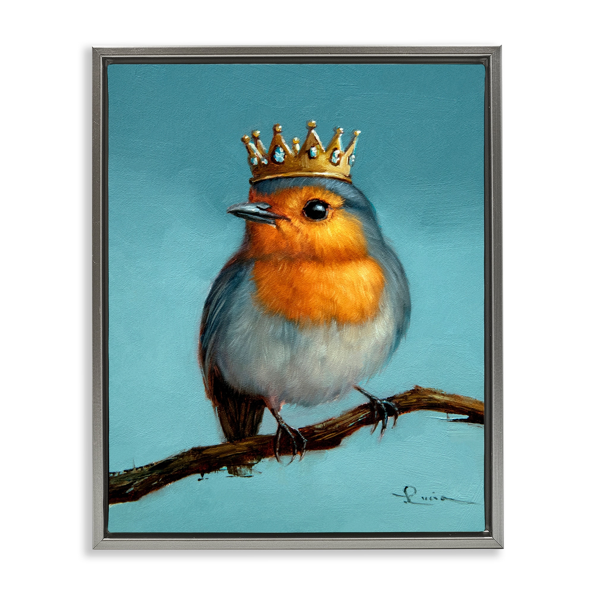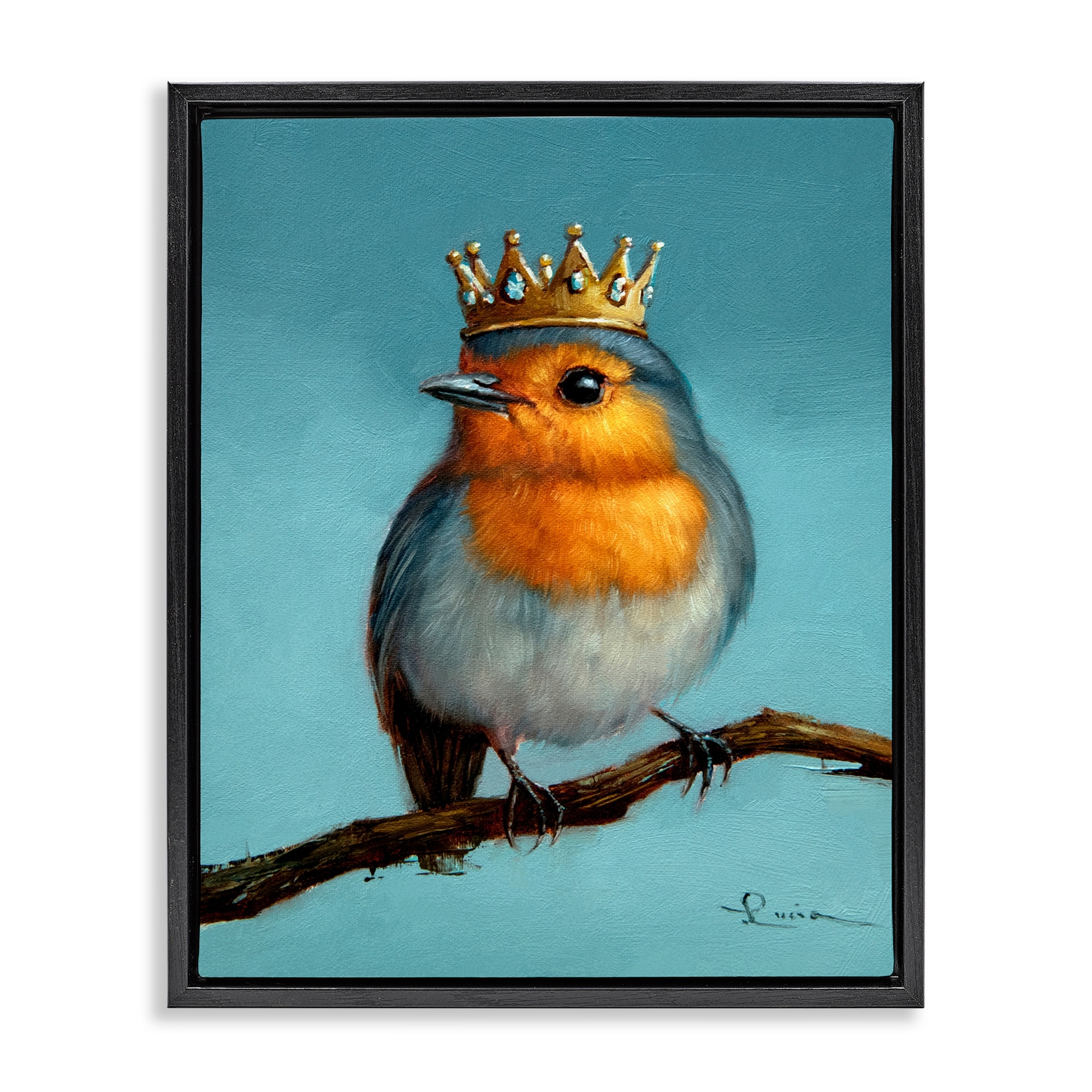 Stupell Royal Robin Perched Framed Floater Canvas Wall Art Design By Lucia Heffernan