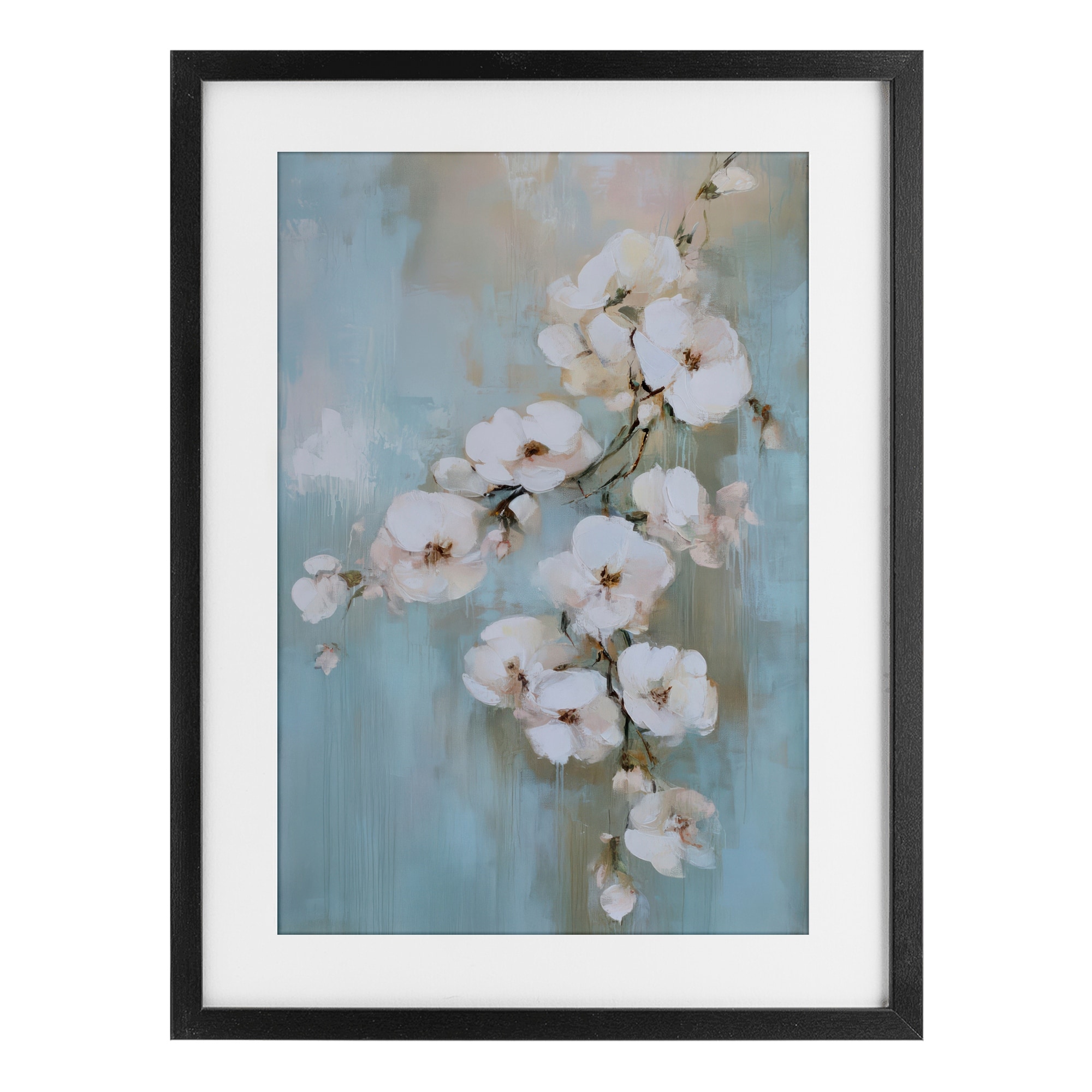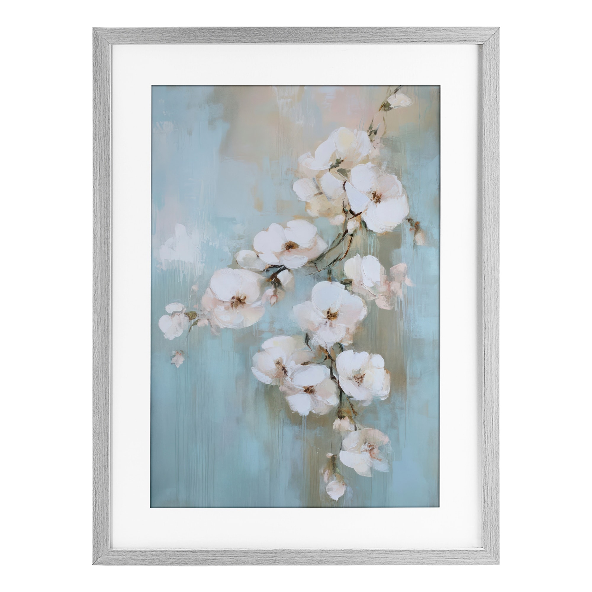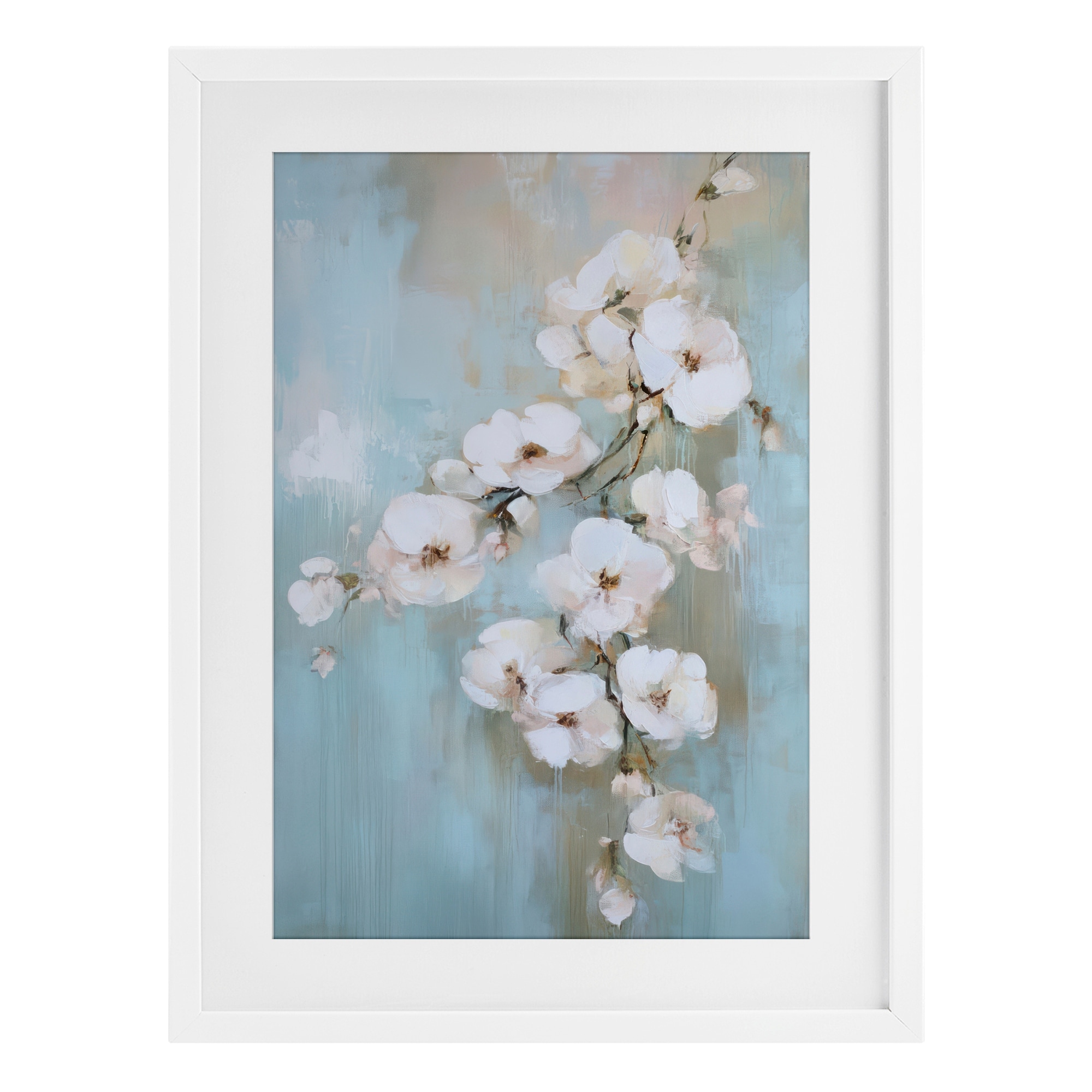 Stupell Fading White Flowers on Blue Under Glass Framed Design By Gina Kelly