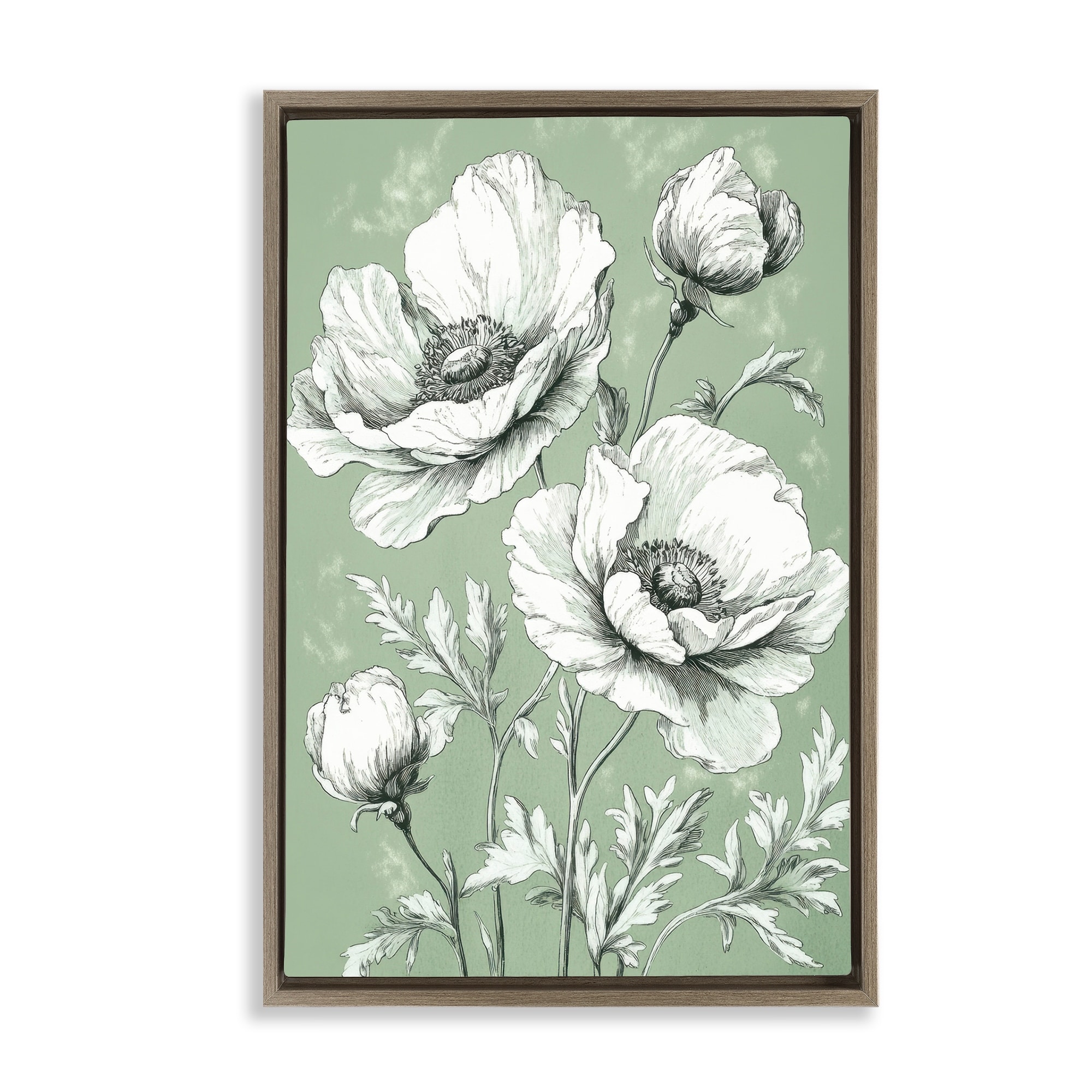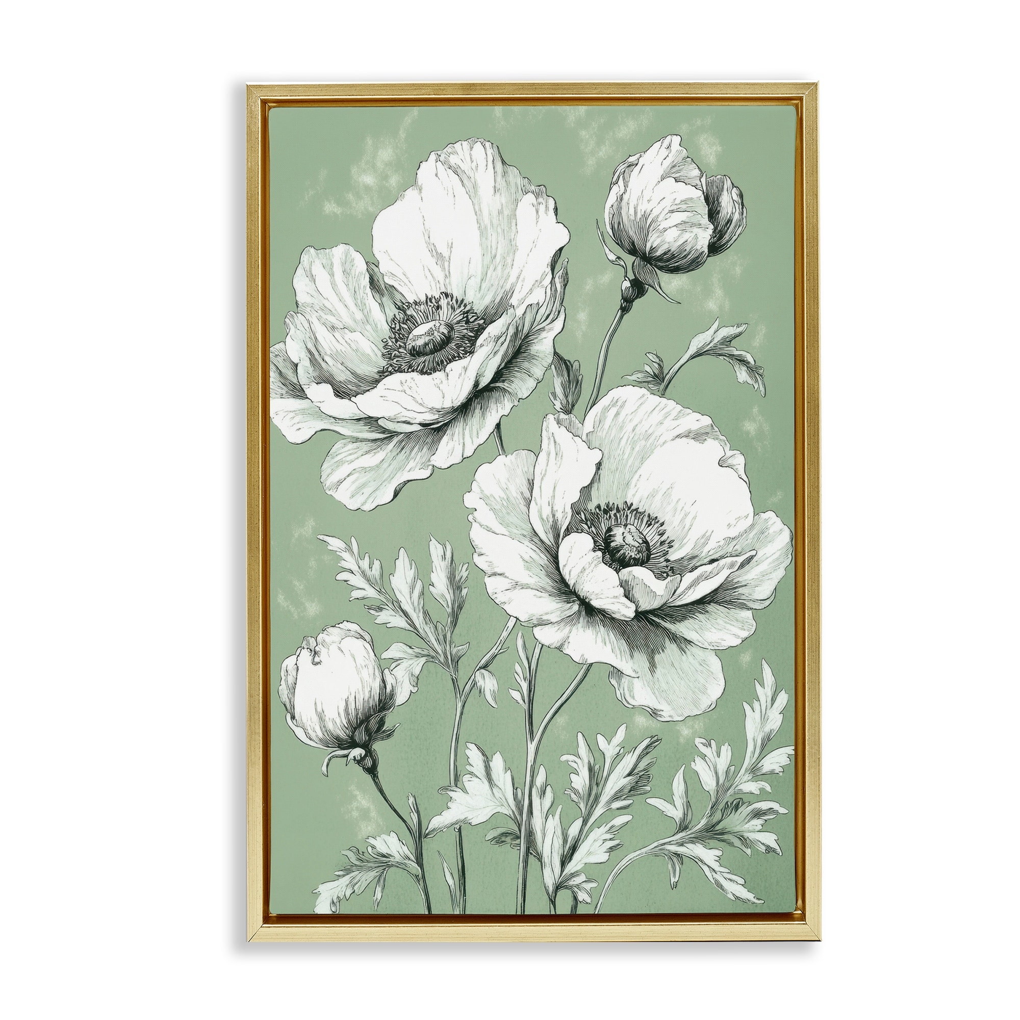 Stupell Soft Green Poppy Floral Framed Floater Canvas Wall Art Design By Petal Prints Design