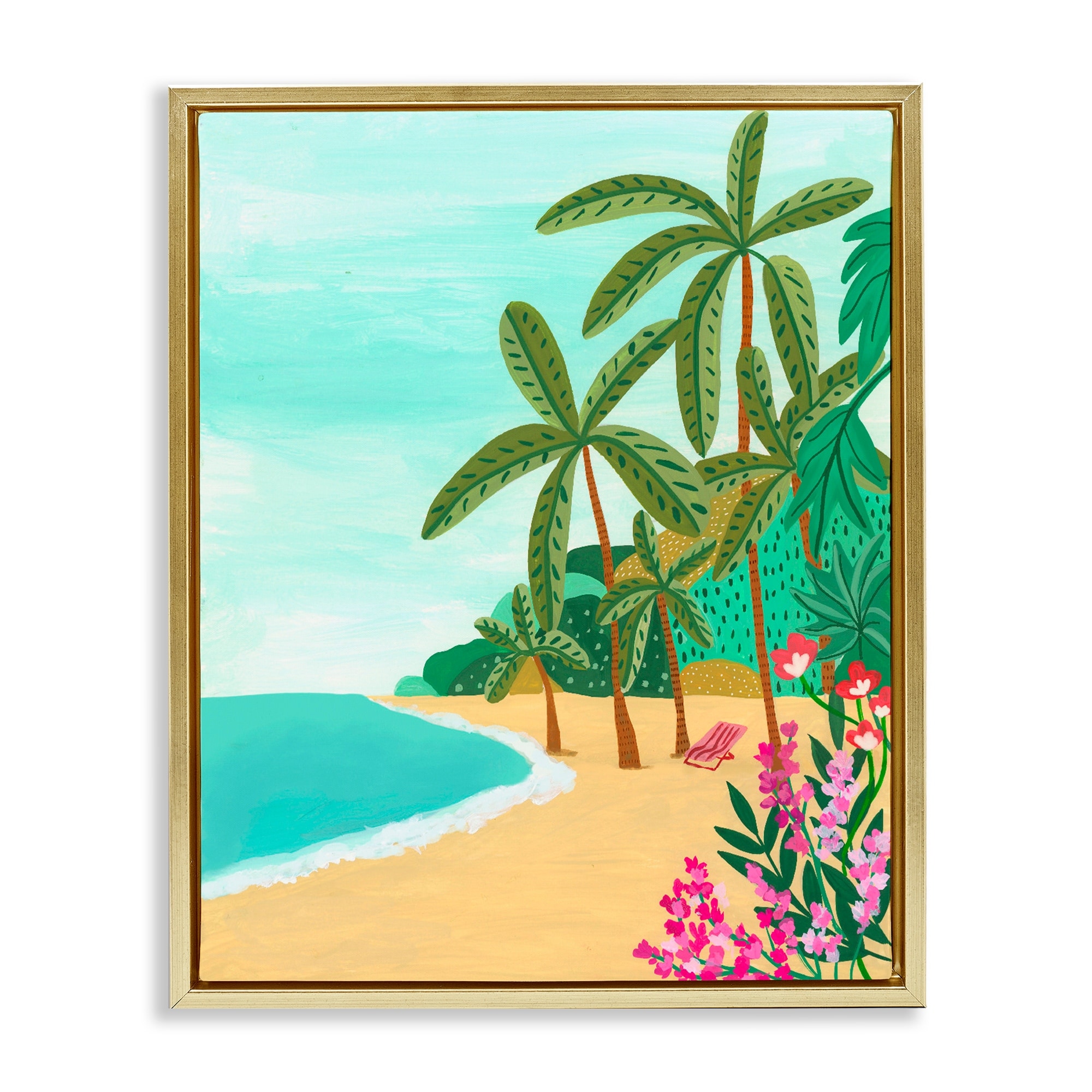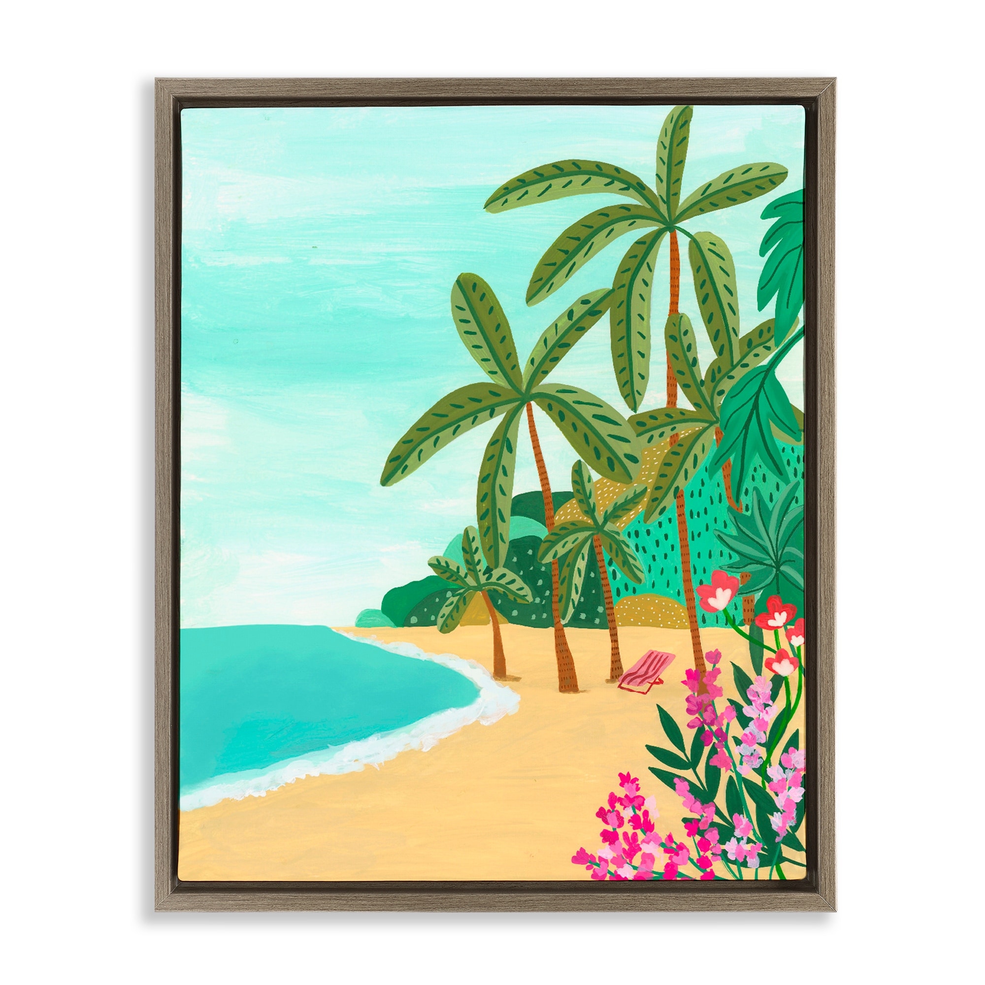 Stupell Palm Filled Shoreline Framed Floater Canvas Wall Art Design By Nabeela Rumi