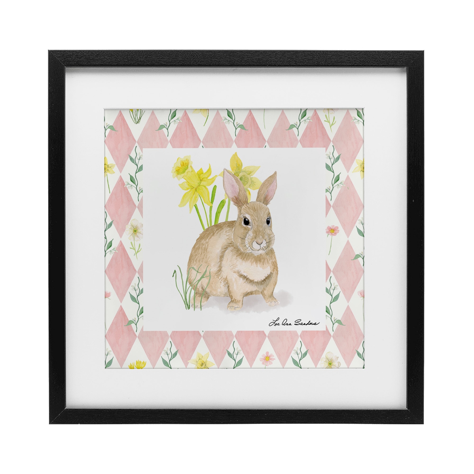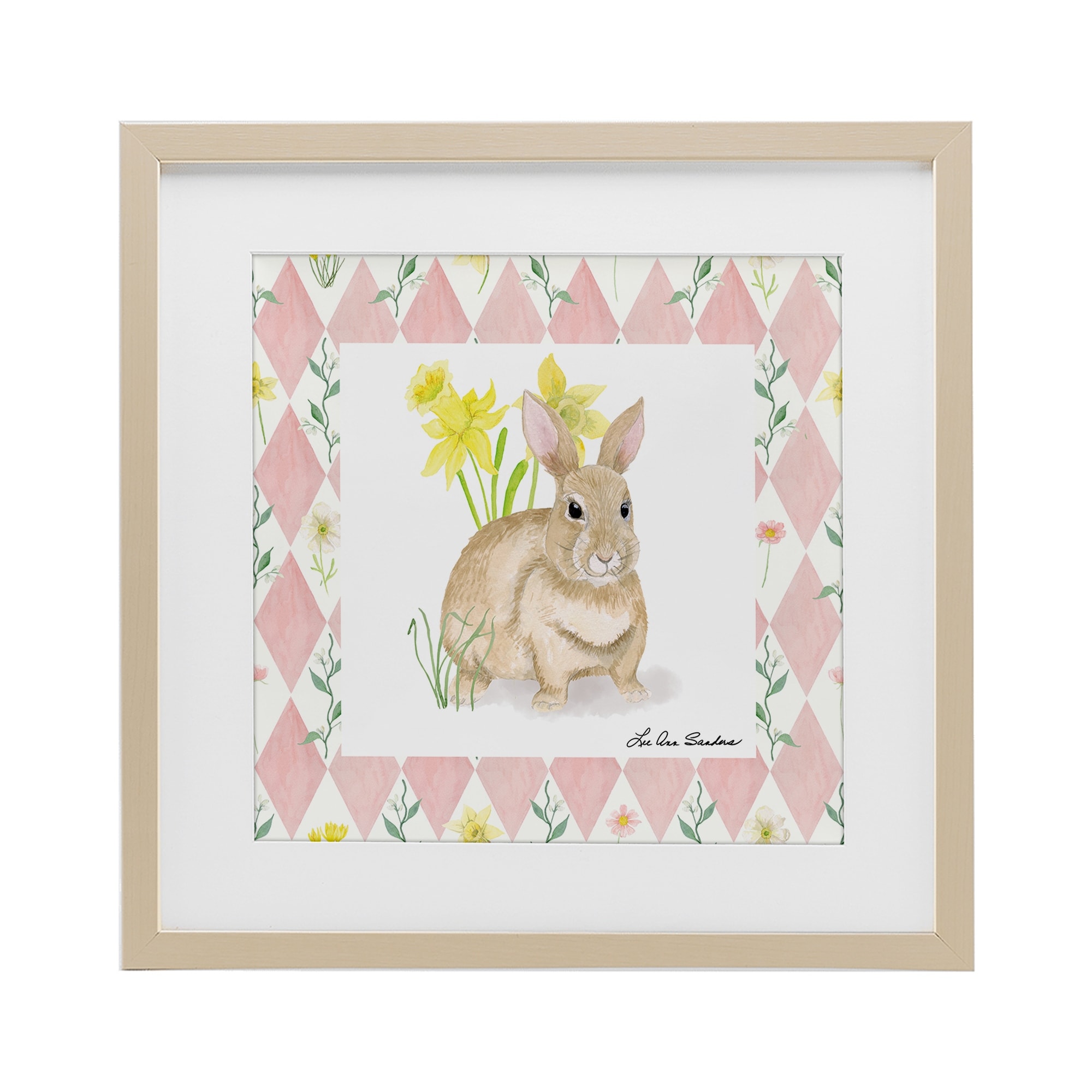 Stupell Bunny on Pink Argyle Under Glass Framed Design By Lee Ann Sanders
