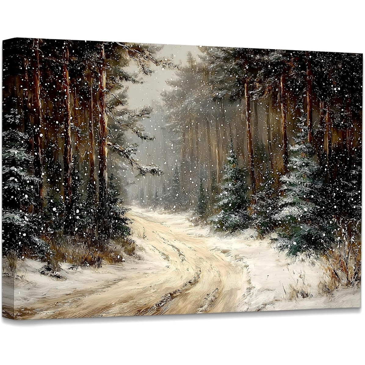 Vintage Christmas Winter Forest Wall Decorations Framed Canvas Art