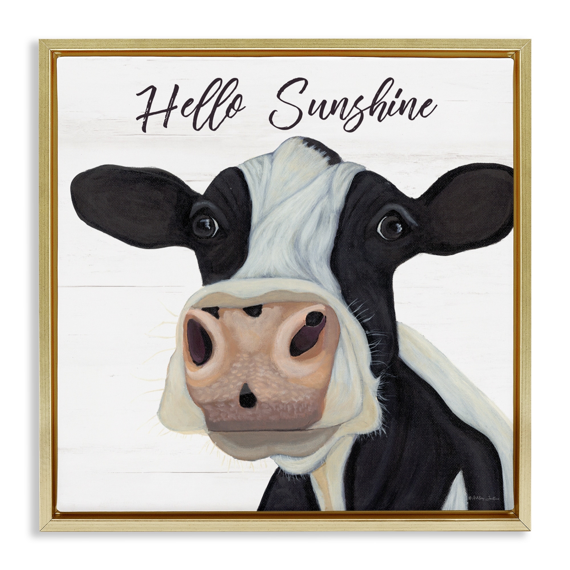 Stupell Hello Sunshine Country Cow Framed Floater Canvas Wall Art Design By Ashley Justice